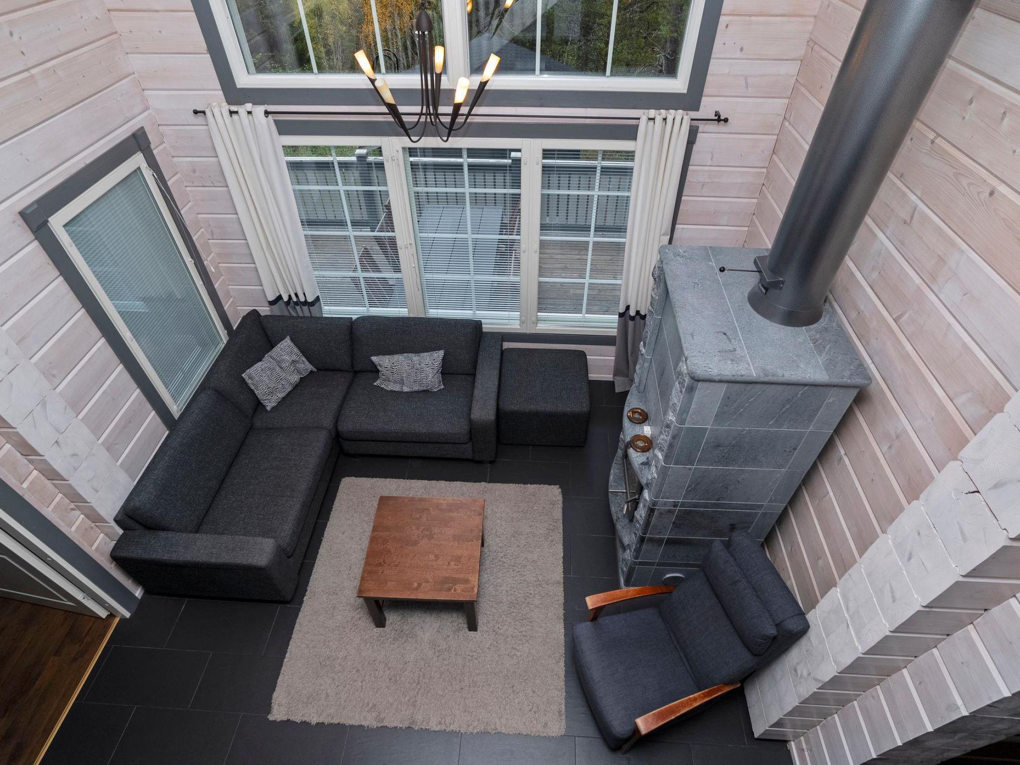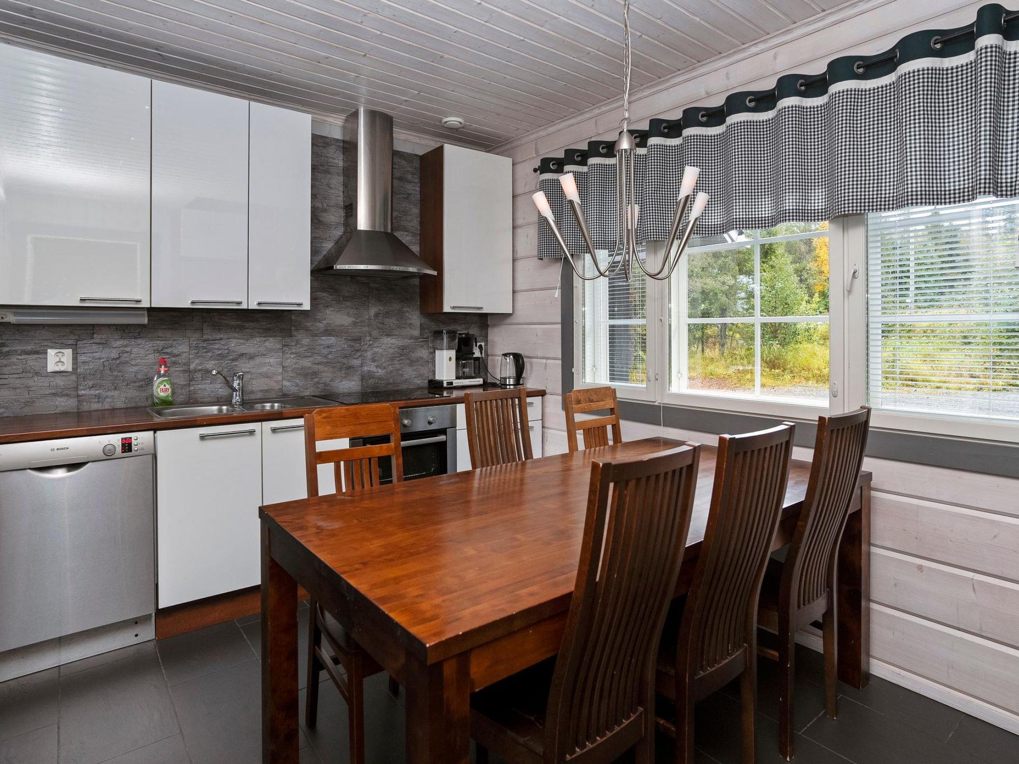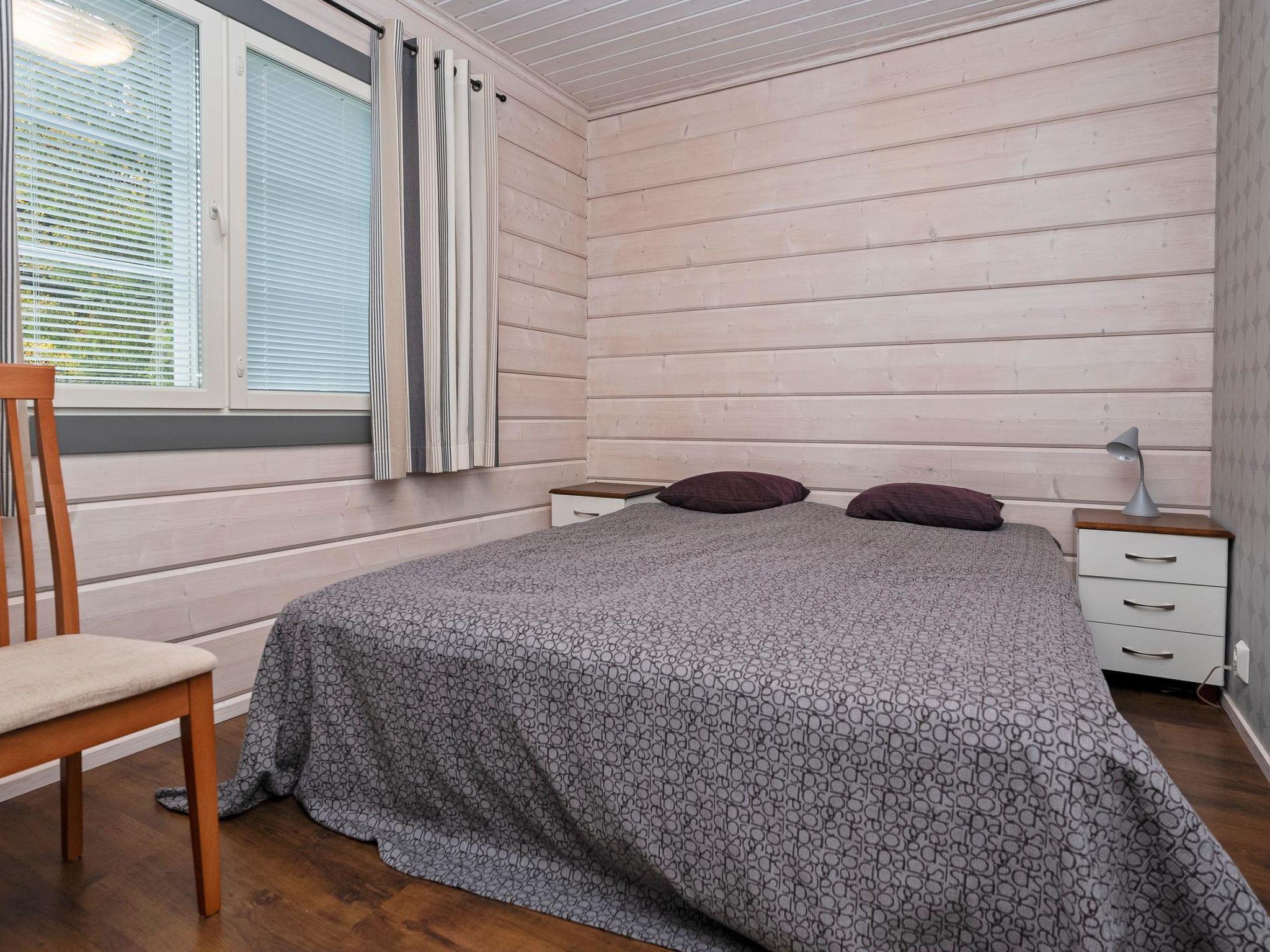 27 km to the north from Kuusamo, view to the lake Vuosselijärvi (200m to the lake, no swimming beach). Half of the semi-detached log cottage, built in 2011, kitchen, living room, fireplace, bedroom 1: two beds, bedroom 2: two beds, loft: in both ends two beds, shower room, sauna (electric stove), two toilets, terrace. Also separate sauna (heating with wood) in the yard.