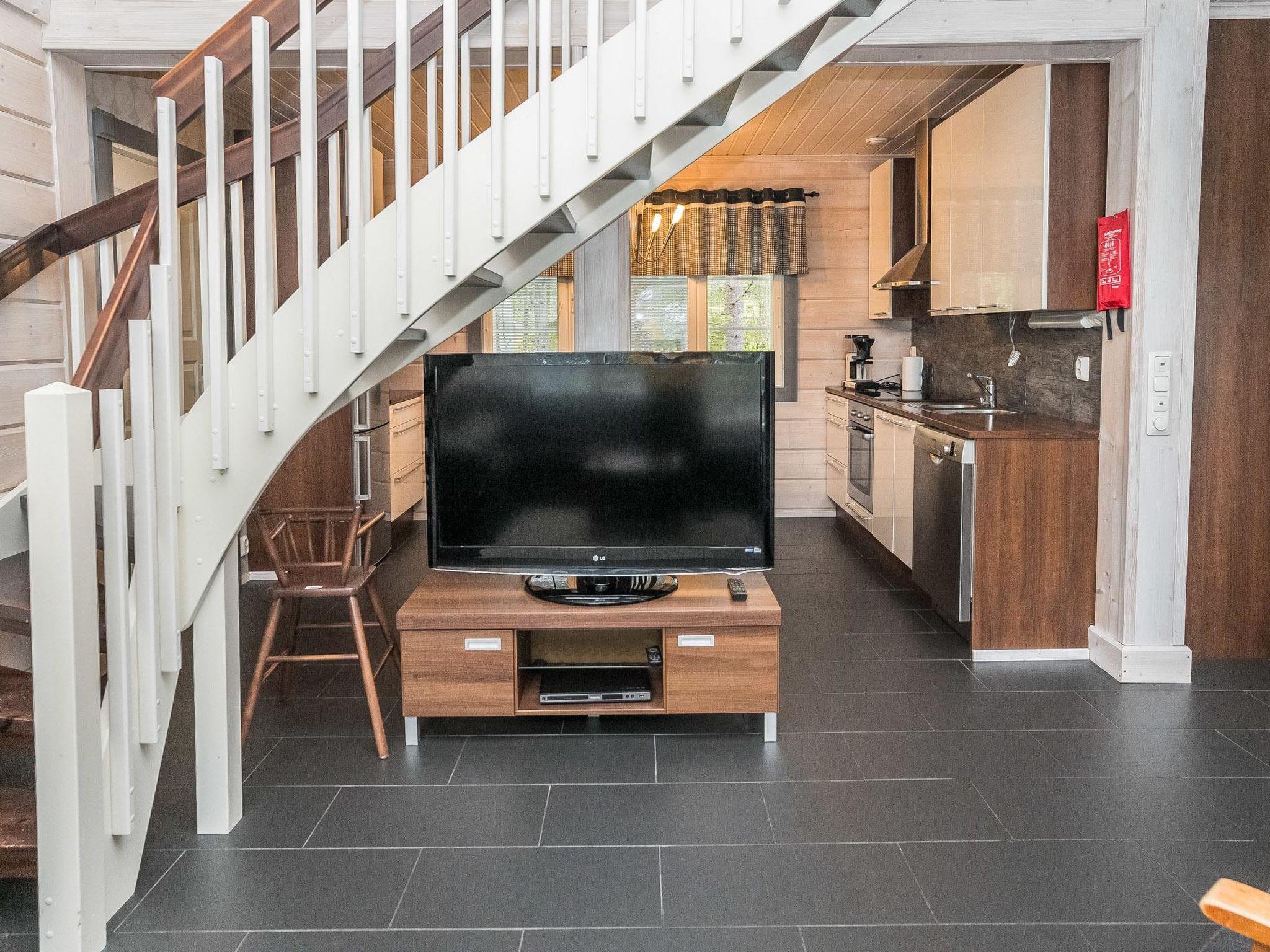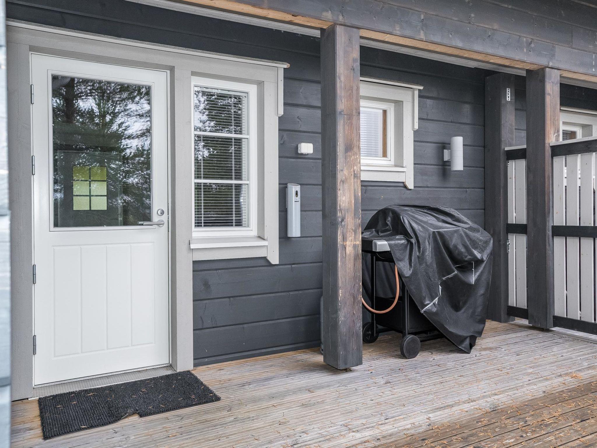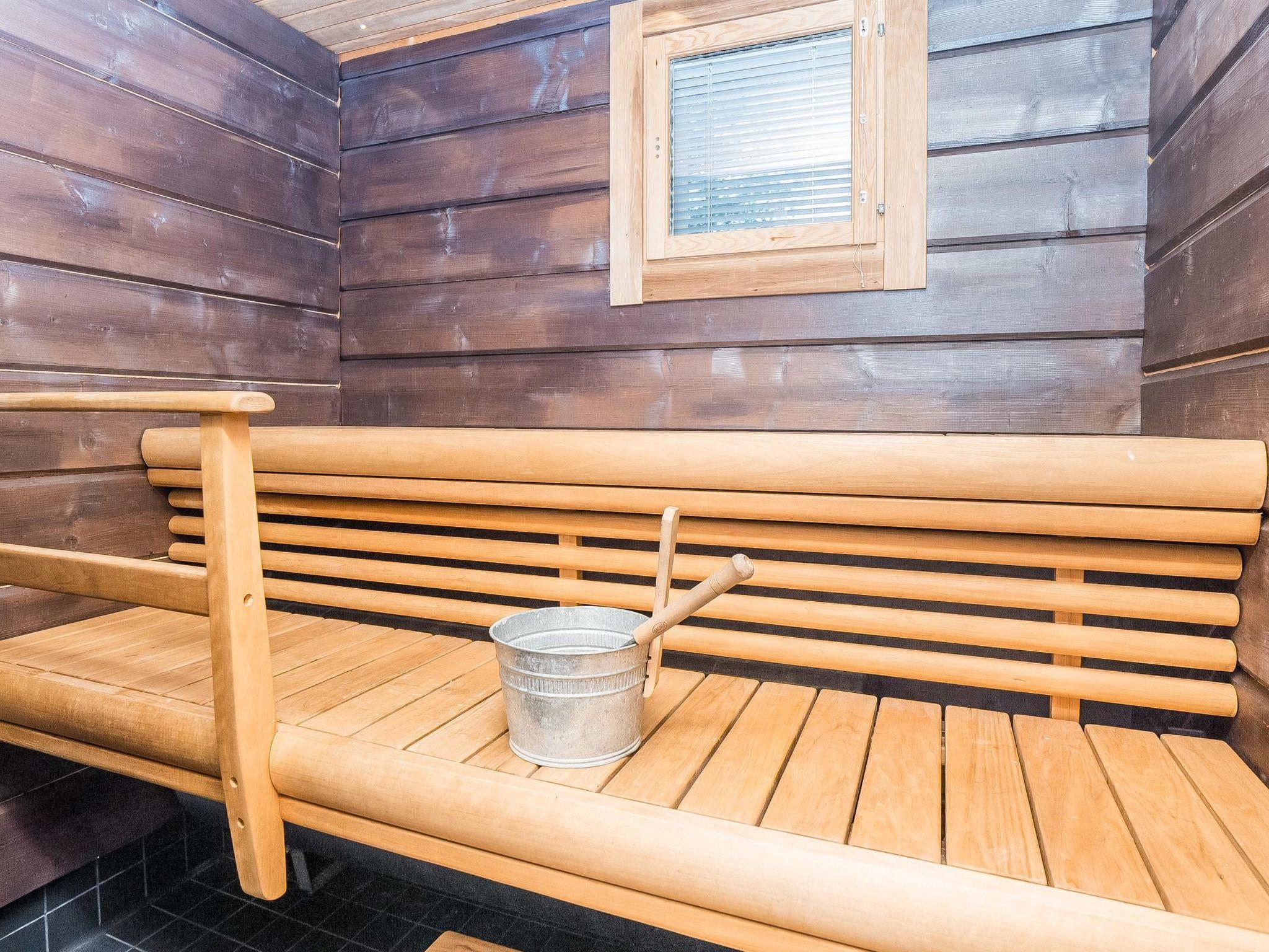 27 km to the north from Kuusamo, Vuosseli (Eastern Ruka) 1,5 km, Ruka village (Western Ruka, Central Square) 5,7 km. View to the lake Vuosselijärvi (200m to the lake, no swimming beach). Half of the semi-detached log cottage, built in 2011, kitchen, living room, fireplace, bedroom 1: two beds, bedroom 2: two beds, loft: in both ends two beds, shower room, sauna (electric stove), two toilets, terrace. Also separate sauna (heating with wood) in the yard.
