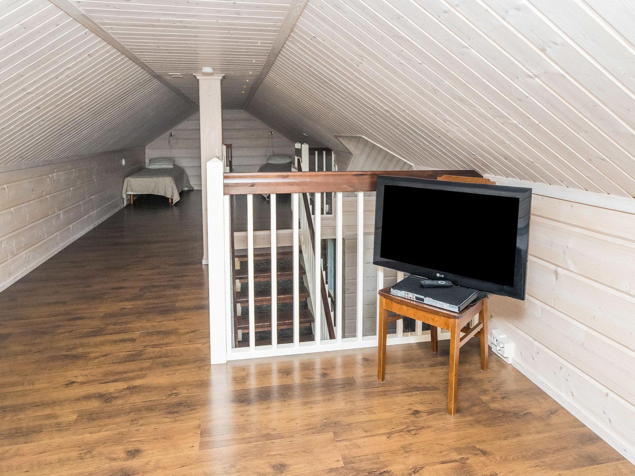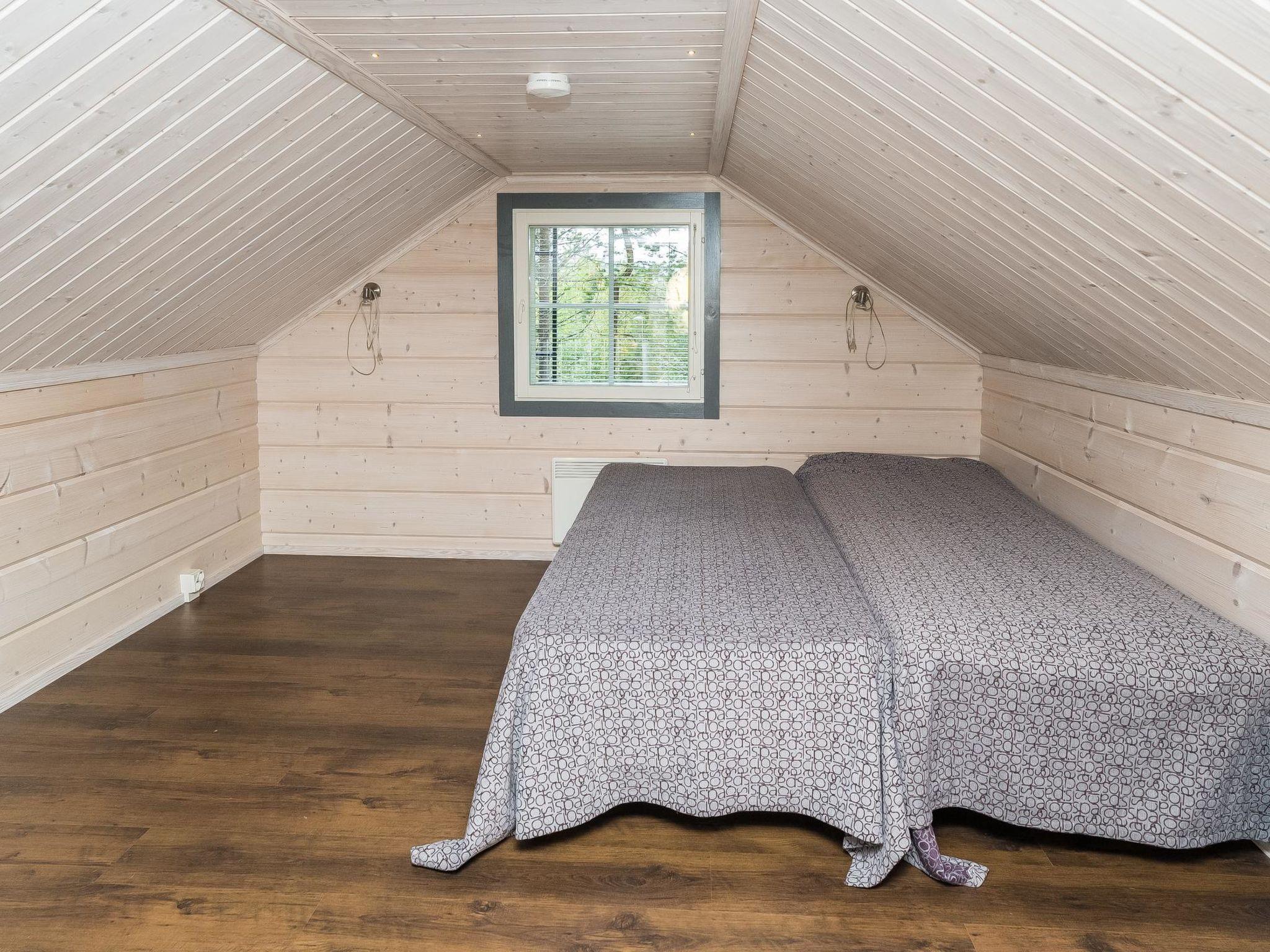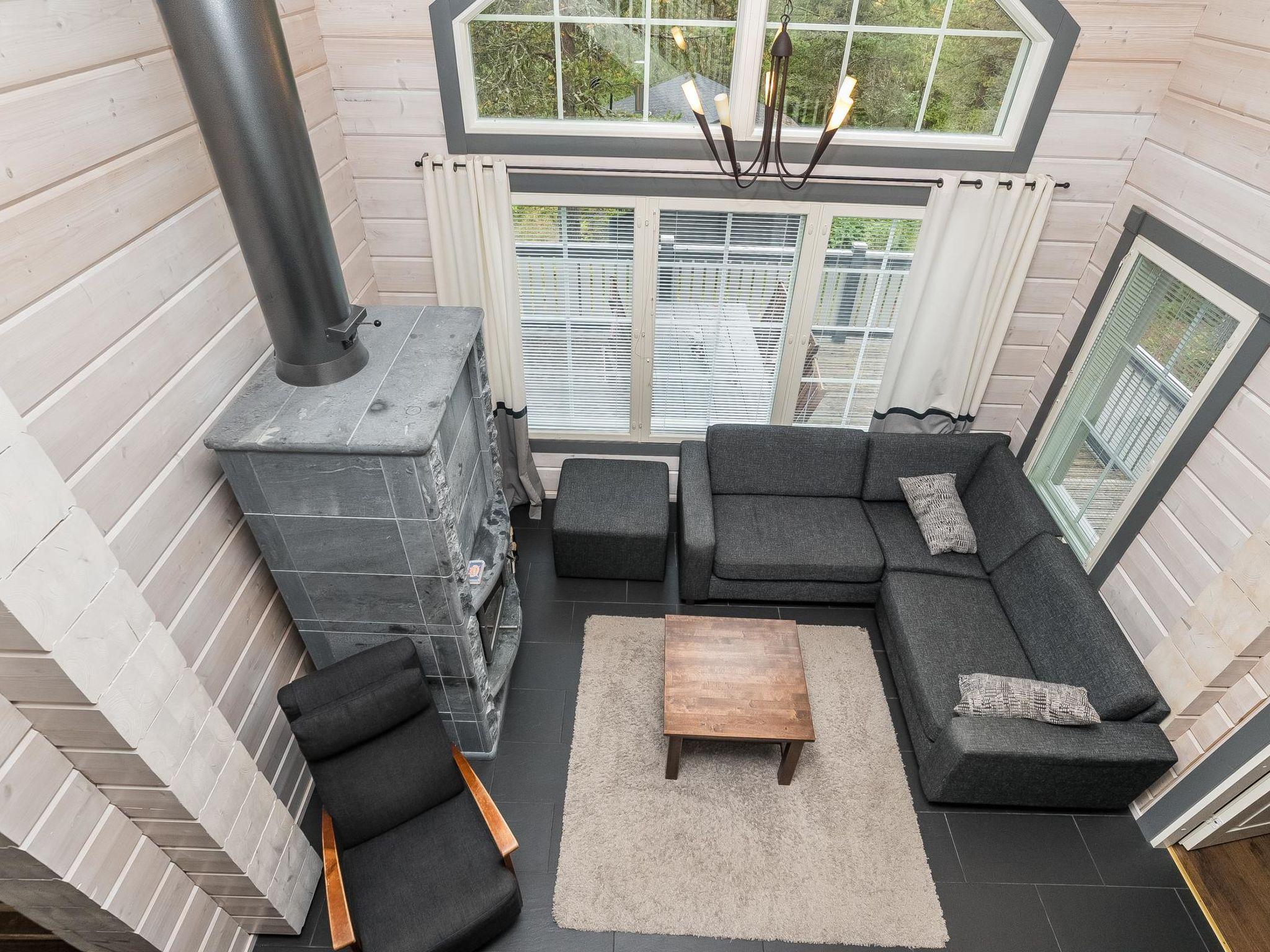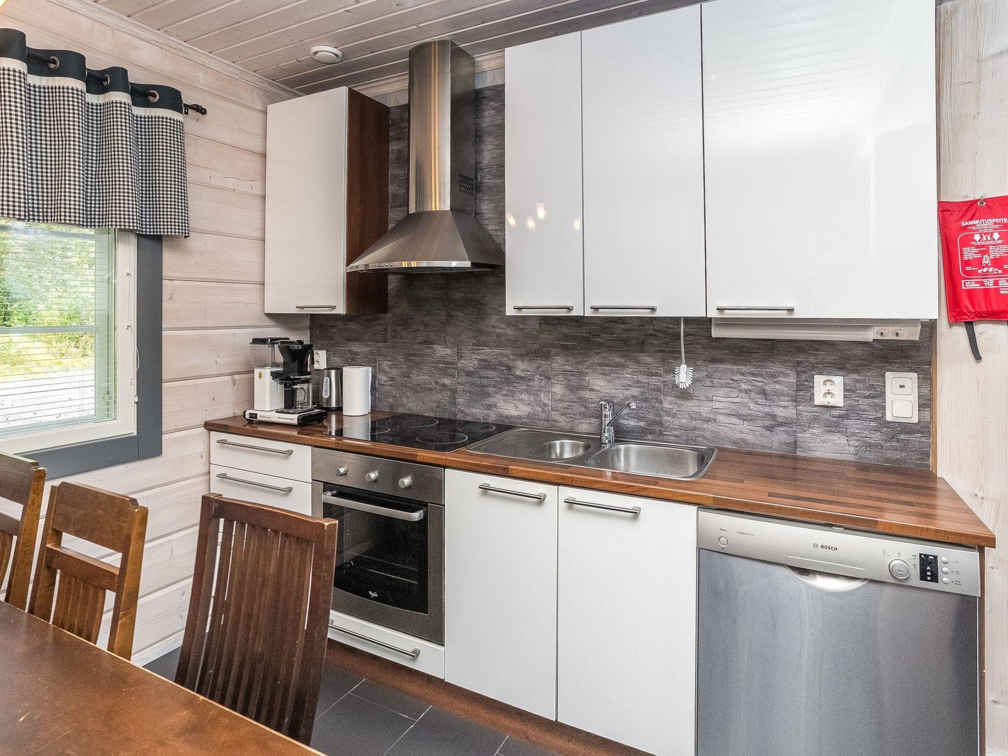 27 km to the north from Kuusamo, Vuosseli (Eastern Ruka) 1,5 km, Ruka village (Western Ruka, Central Square) 5,7 km. View to the lake Vuosselijärvi (200m to the lake, no swimming beach). Half of the semi-detached log cottage, built in 2011, kitchen, living room, fireplace, bedroom 1: two beds, bedroom 2: two beds, loft: in both ends two beds, shower room, sauna (electric stove), two toilets, terrace. Also separate sauna (heating with wood) in the yard.