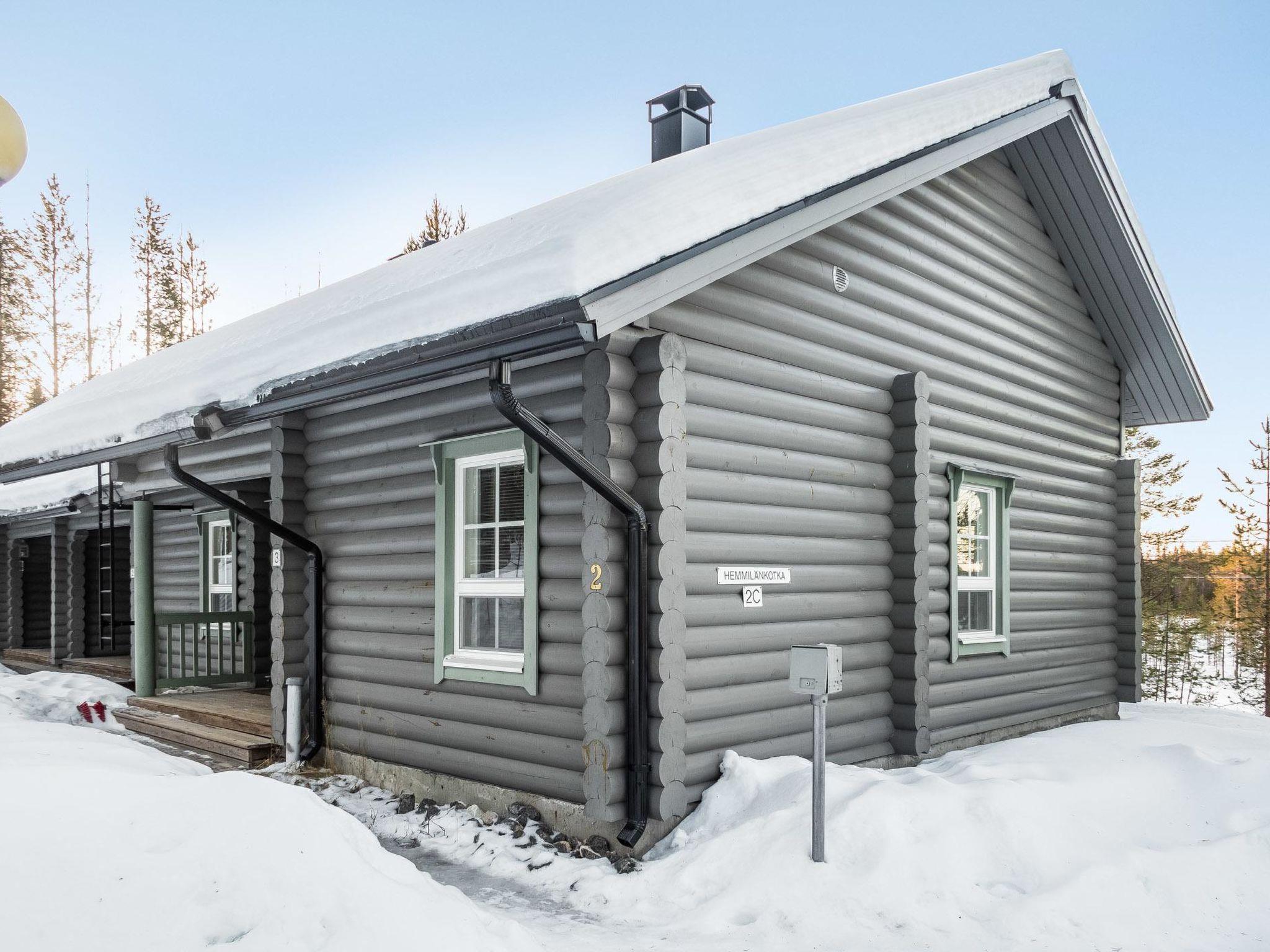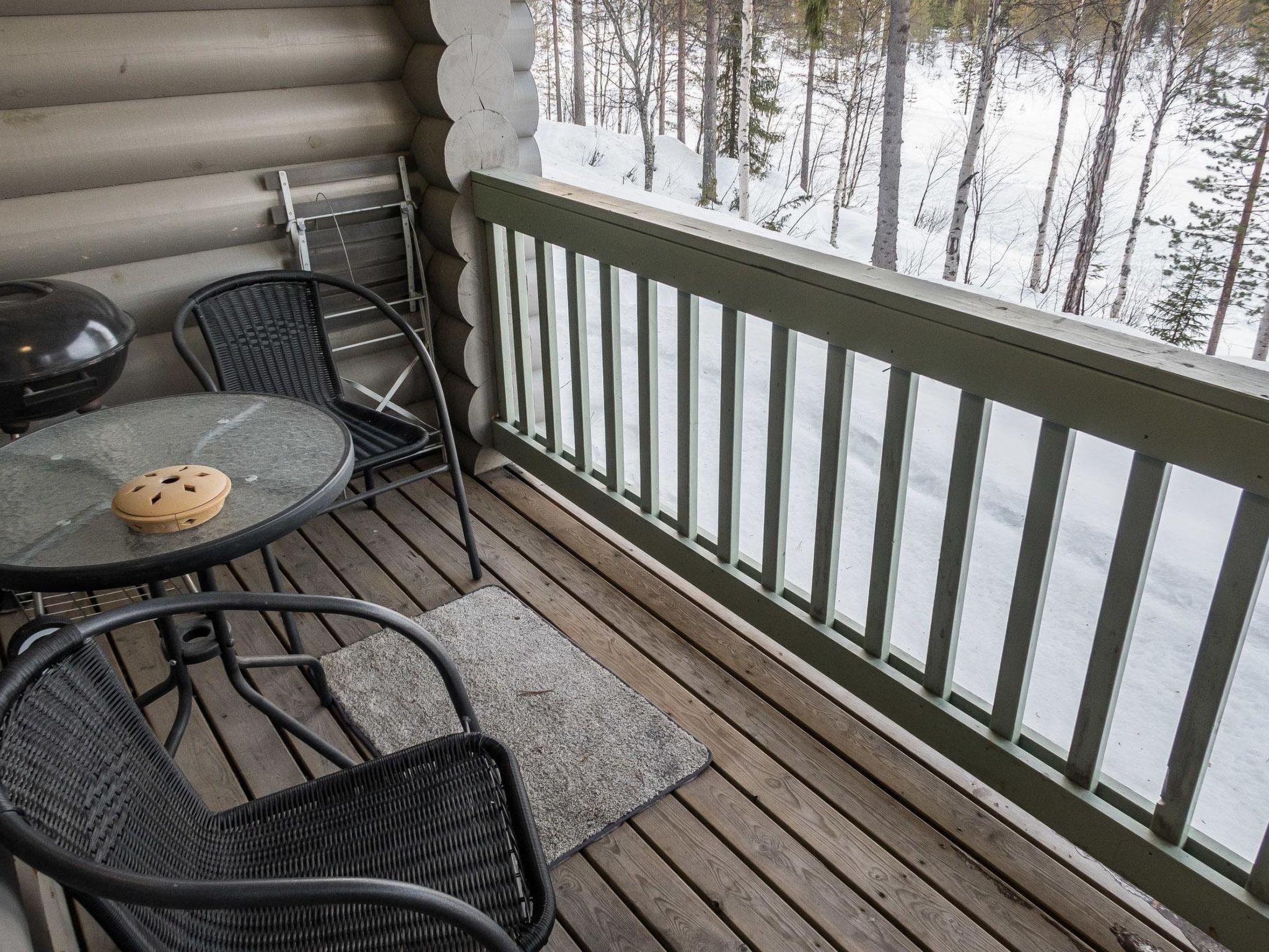 25 km north from Kuusamo, 400 m to the lake Talvijärvi. Apartment in terraced log cottage, built in 2006.