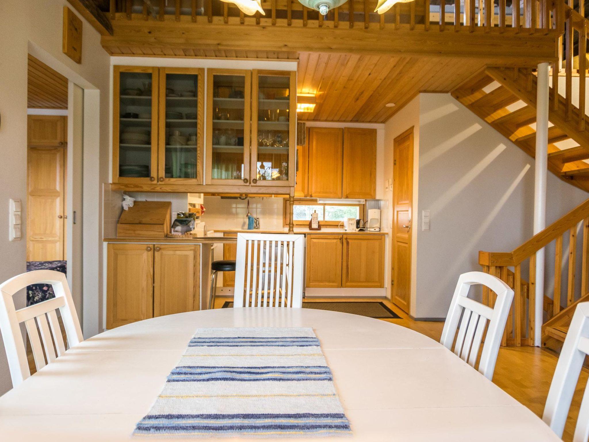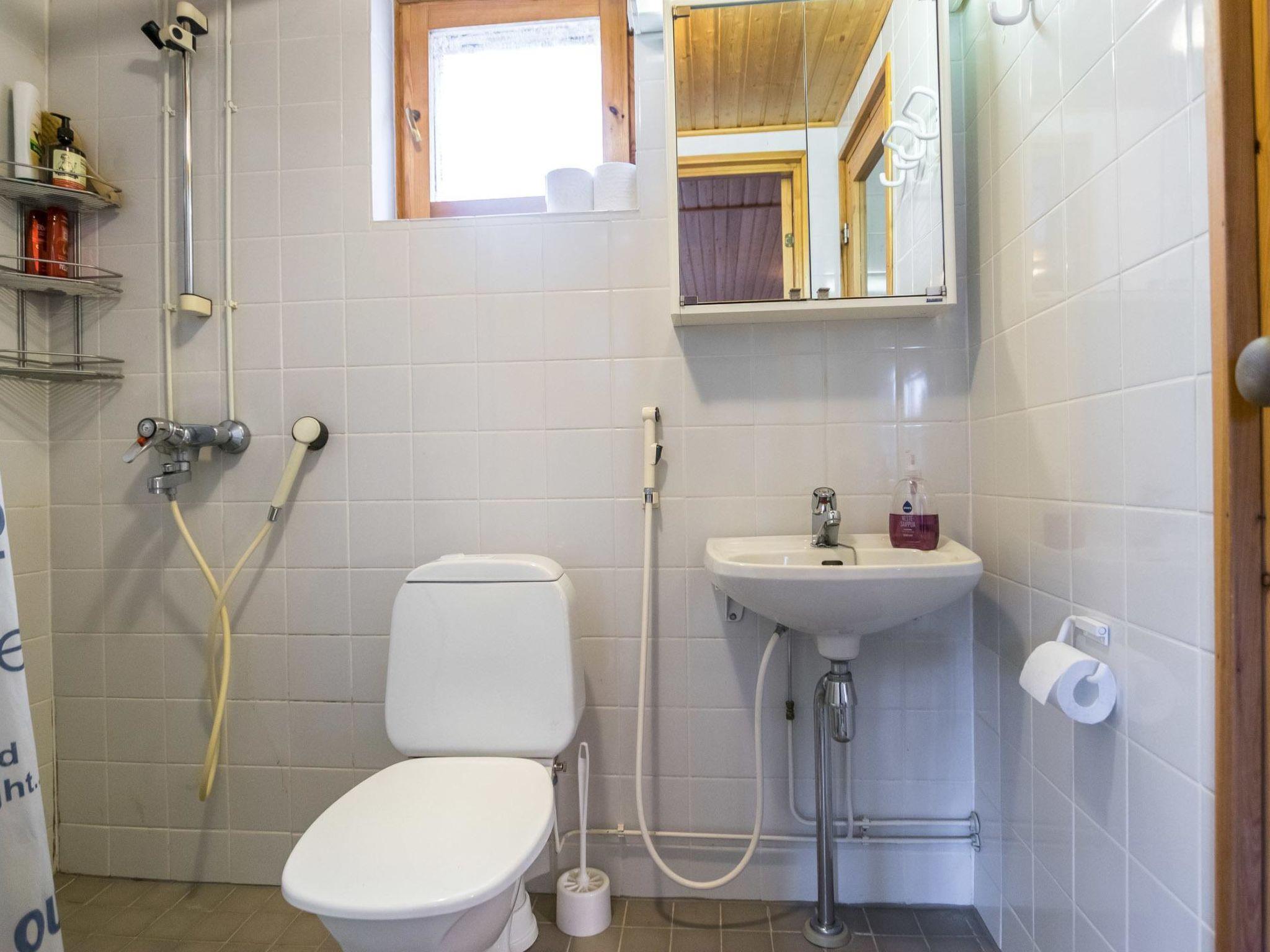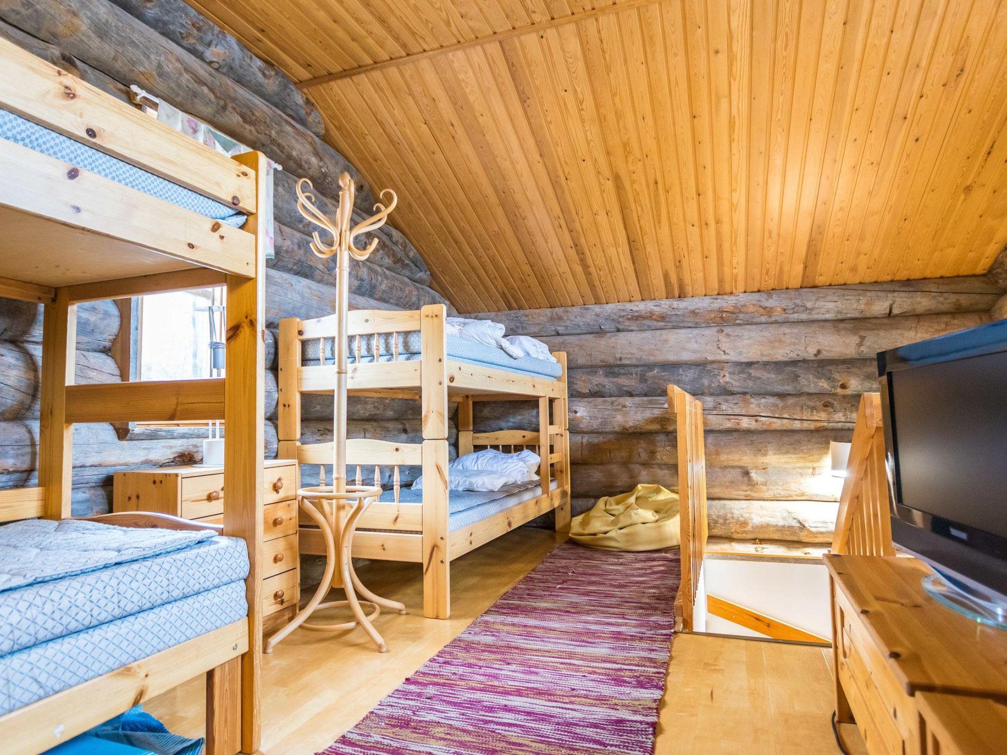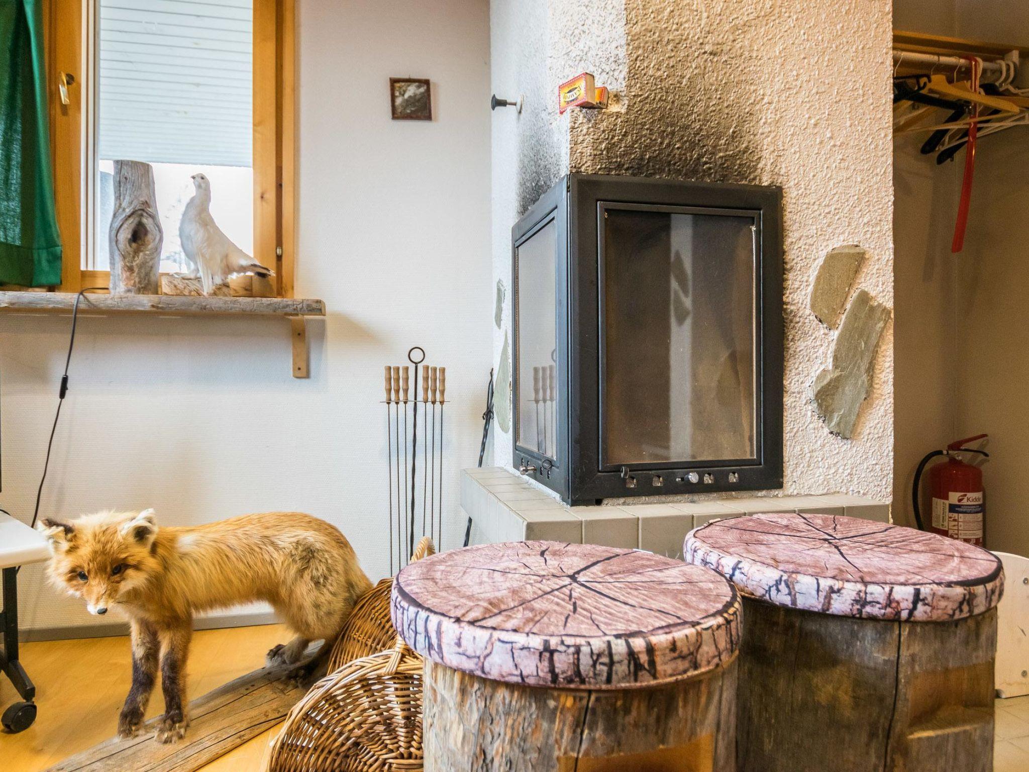 Downstairs: sofabed for 1 and TV in living room, fireplace, sauna (electric stove) and bathroom.