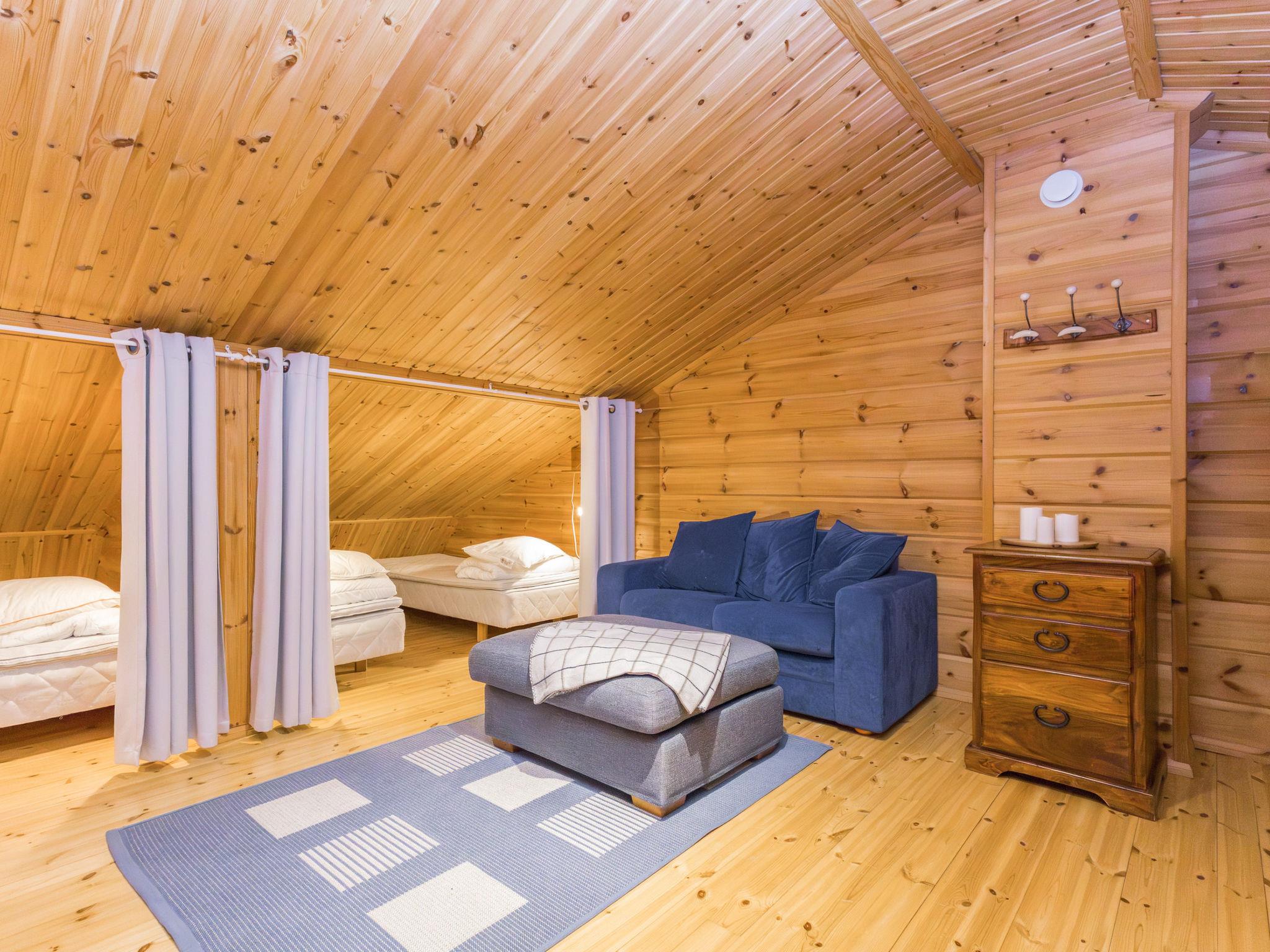 Kitchen and living room, bedroom with double bed, sauna/washroom/toilet, separate WC on the ground floor. Spacious loft with 8 beds and another TV. Storage with e.g. ski waxing table.