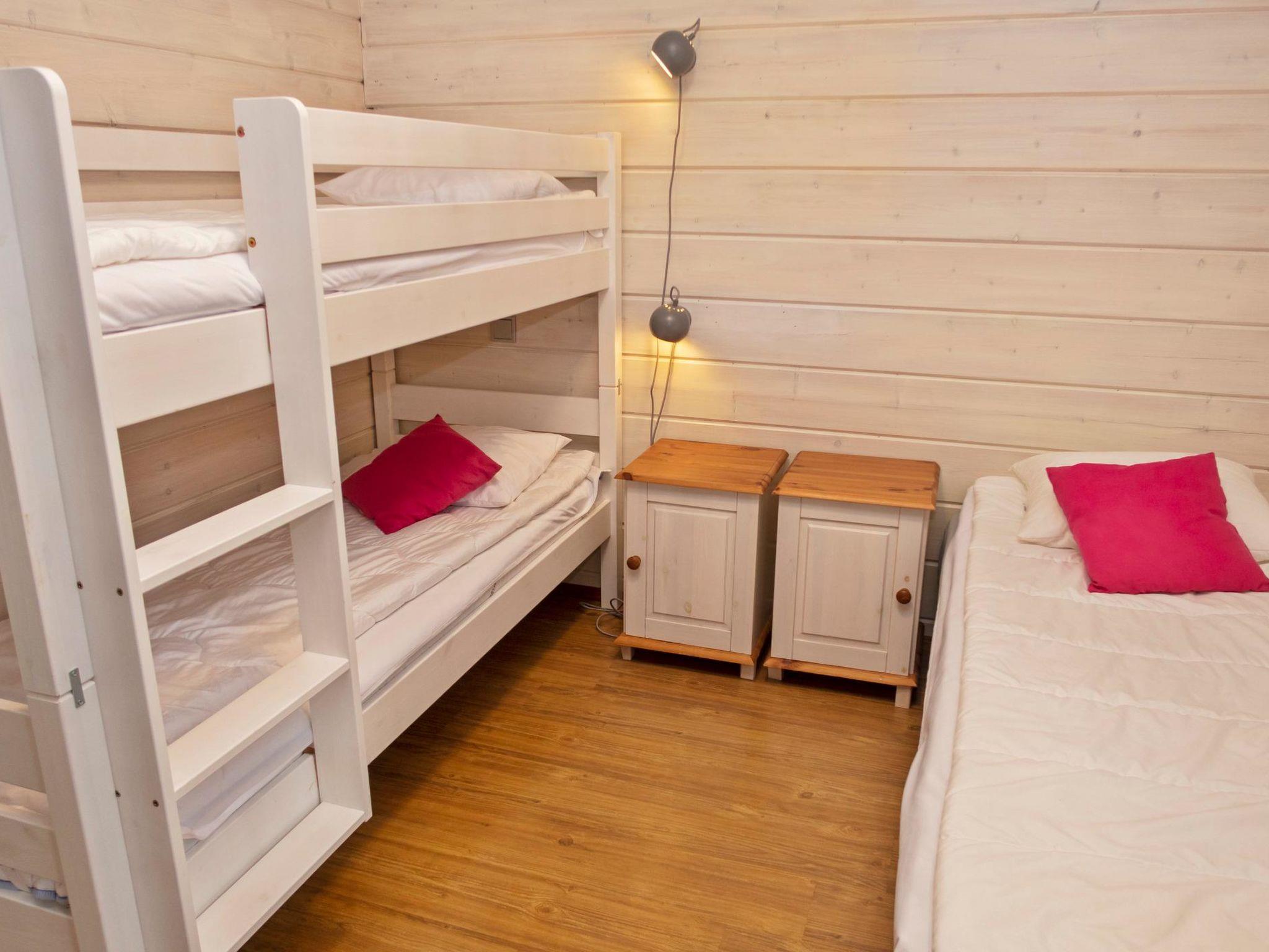 Log villa 2007, living room/kitchen, bedroom 1: double bed, bedroom 2: 2 beds, bedroom 3: bunk bed + 1 bed. Sauna (electric sauna stove). At extra fee a separate lakeside sauna, with washroom and dressing room, open veranda.