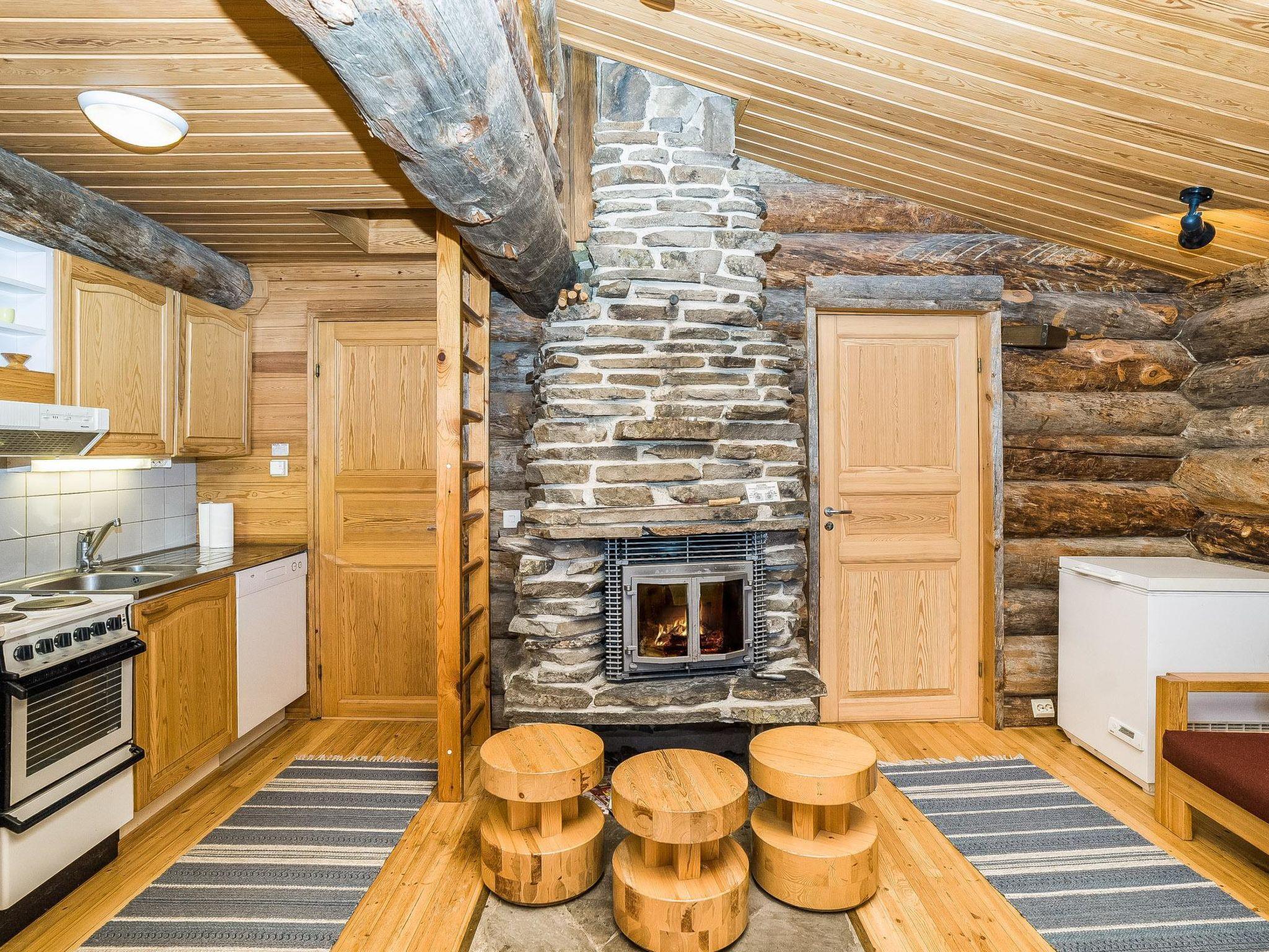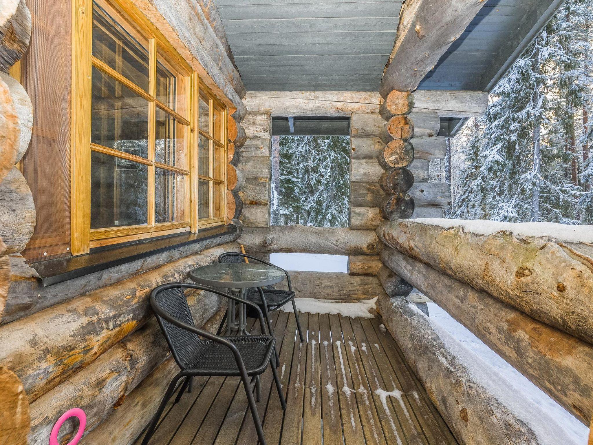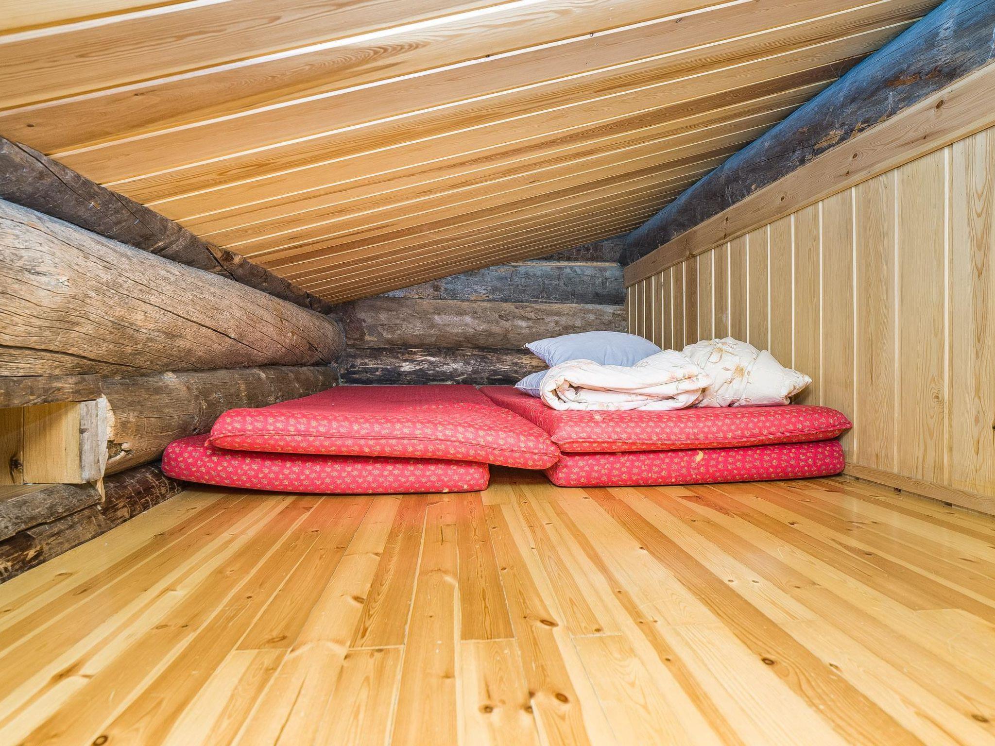 27 km to the north from Kuusamo, 9 km to Ruka, 30 m to lake Kuontijärvi, hard bottom. Half of the semi-detached log cottage, built in 1988. Bedroom with double bed, loft with 4 mattresses, kitchen/living room, shower room+toilet, sauna with electric stove.