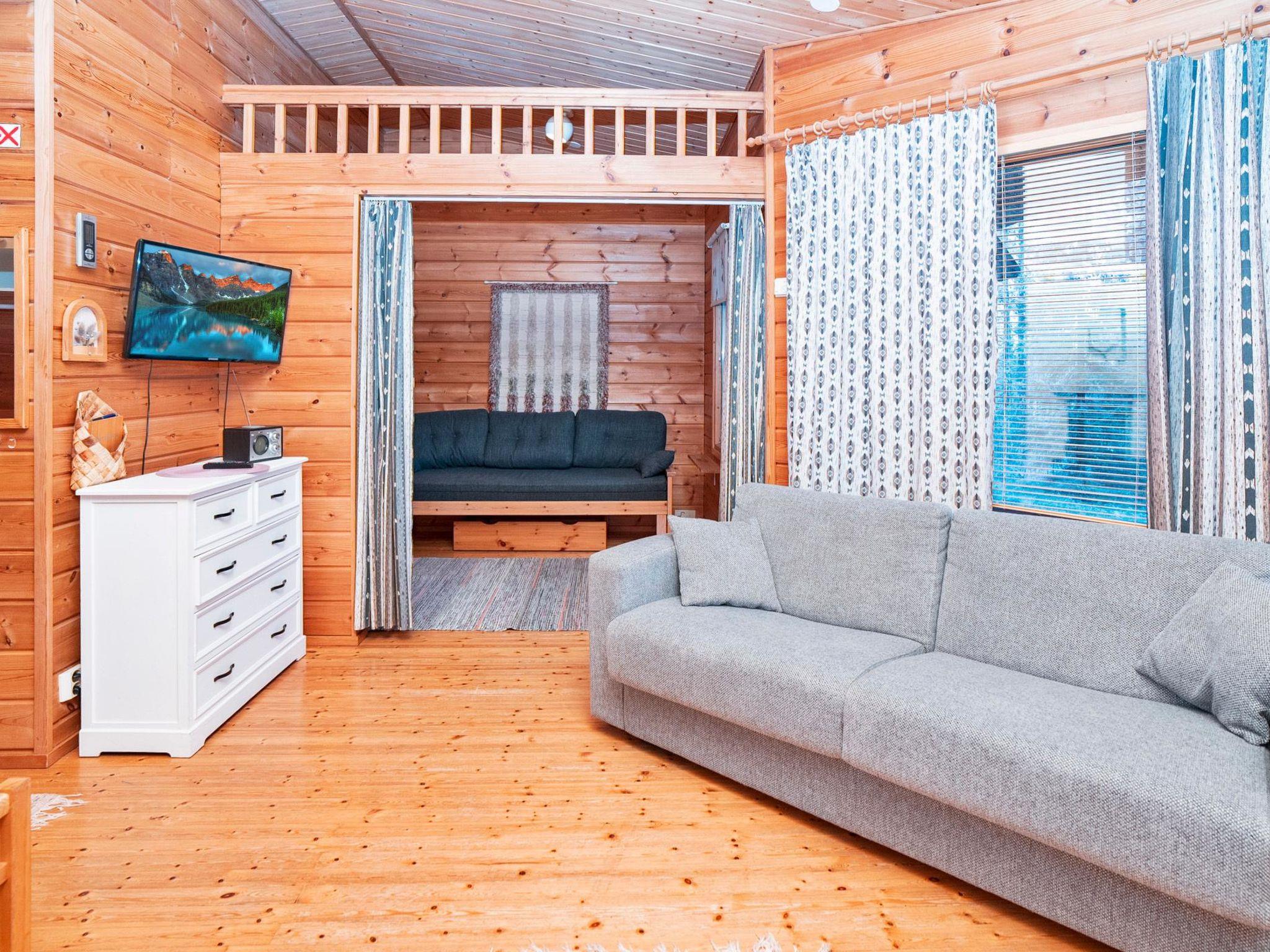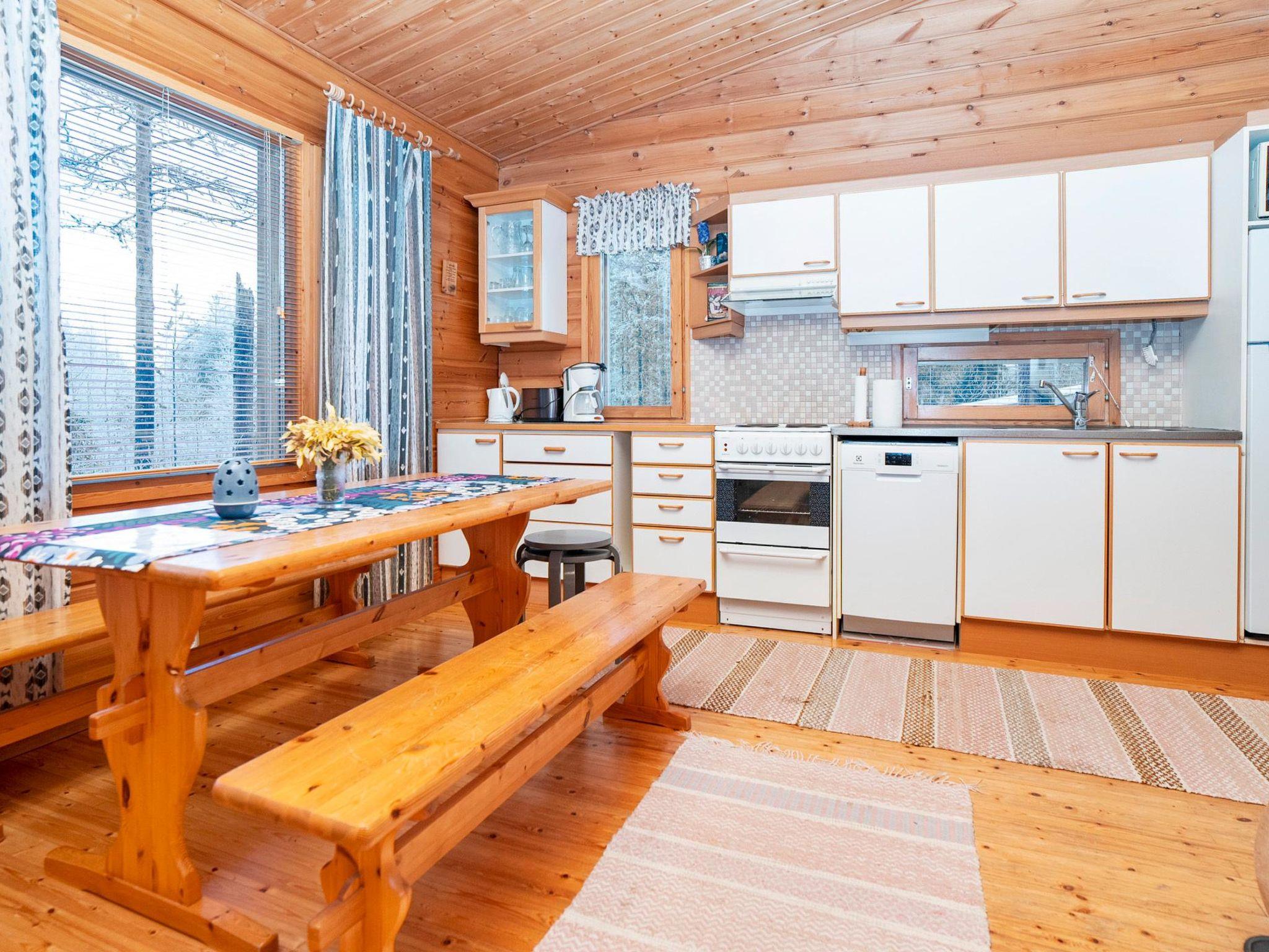 20 km north of Kuusamo, Ruka 9 km. Semidetached apartment built in 1994, living room with convertible bed , fireplace, kitchen, toilet, shower room, electric sauna, bedroom with double bed, sleeping alcove with convertible bed. Carport for one car. Roofed back terrace.