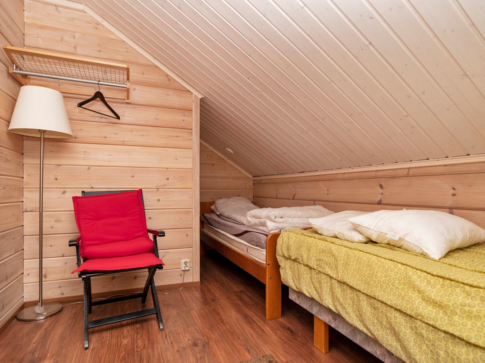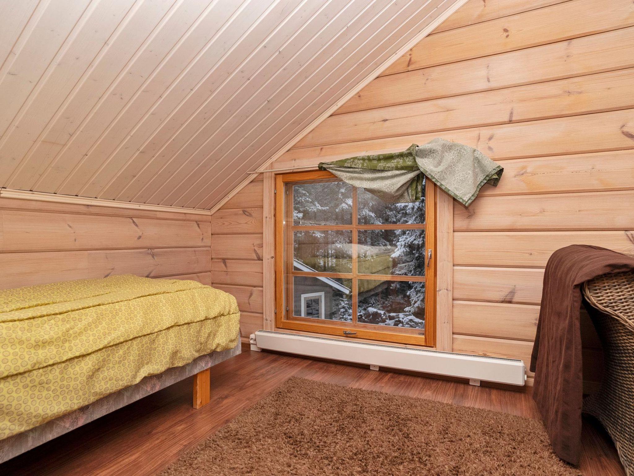 Log cottage 79 m² built in 2010, has sleeping spaces for 7 persons. There are 2 bed rooms downstairs, one with a180 cm double bed and the other with 2 x 80 cm beds. There are 3 x 80 cm beds on the open loft. The living room-kitchen has a dining table for 4 persons. Living room has large windows and a fireplace. There is free WiFi (5G) and Smart TV. The electrically heated sauna has good steam baths. There are also a washroom, utility room and separate toilet.
