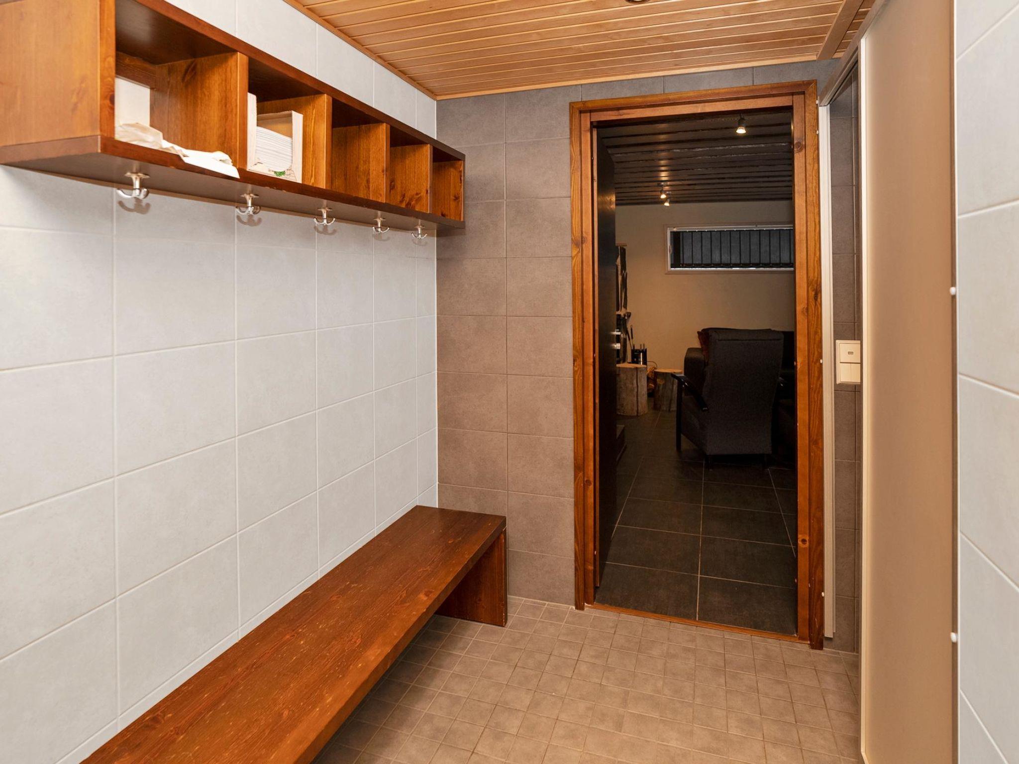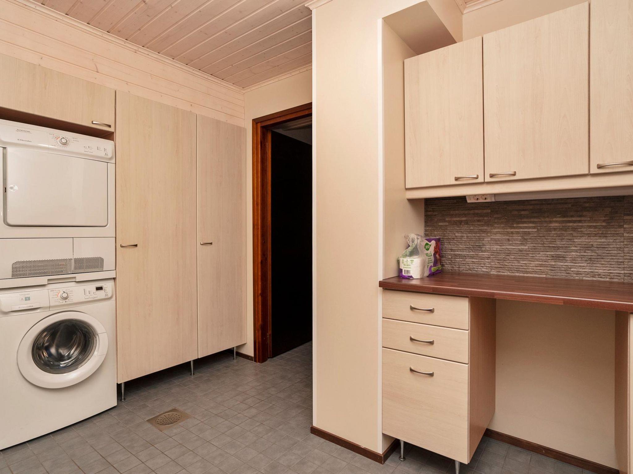 Downstairs fireplace room with convertible sofa for 2 persons and karaoke equipment, utility room, shower room, electric sauna, terrace, second fridge / freezer, 2 drying cupboards for clothes, dryer for clothes and WC.