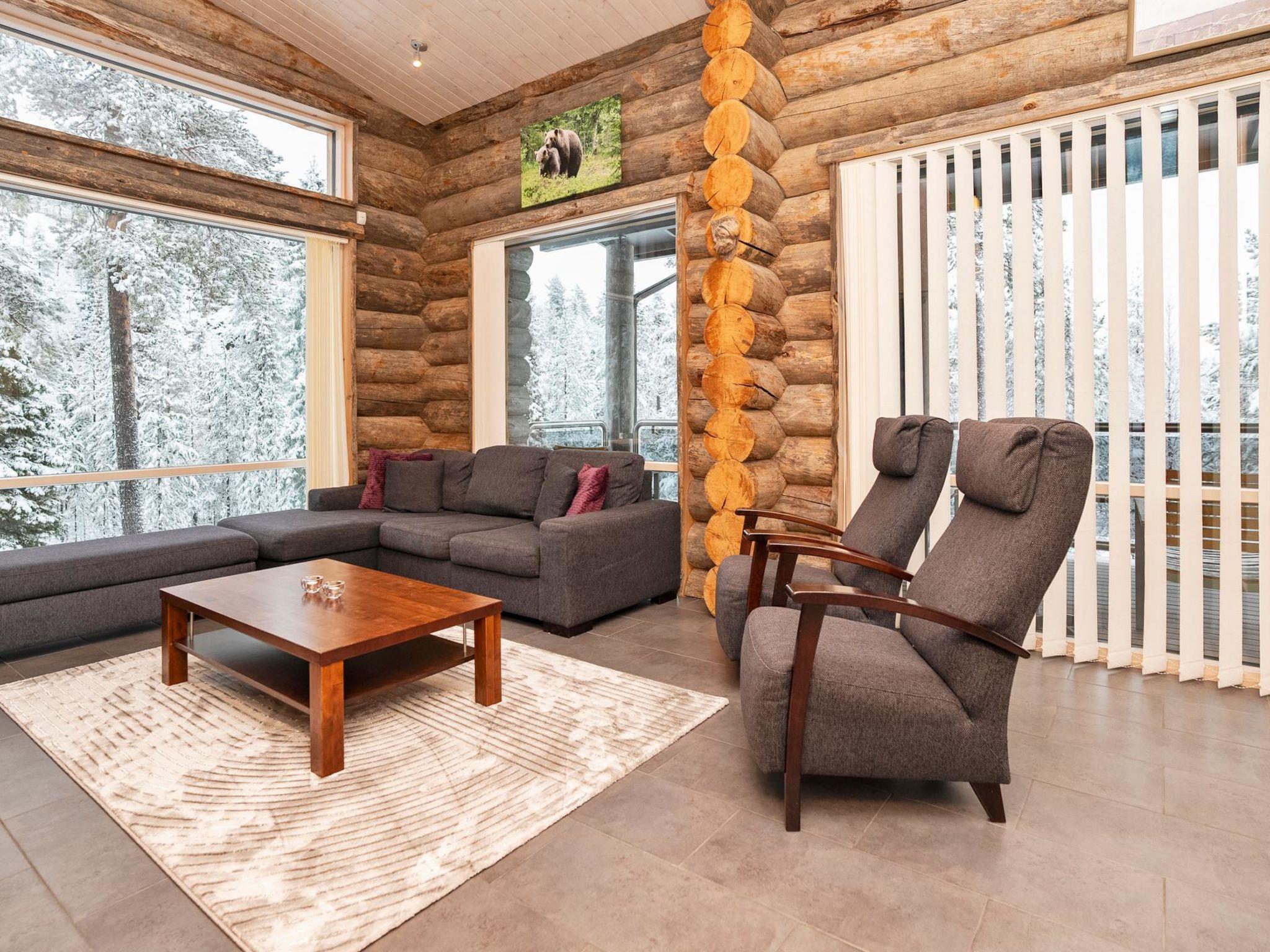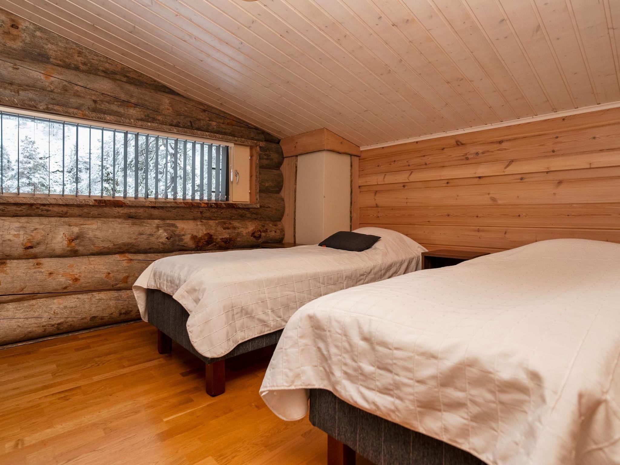 28 km north of Kuusamo, Ruka 6 km. Separate three layers log cottage, built in 2012. On the middle floor living room convertible sofa for 2 person, kitchen, 2 bedrooms both with two beds, WC and large balcony.