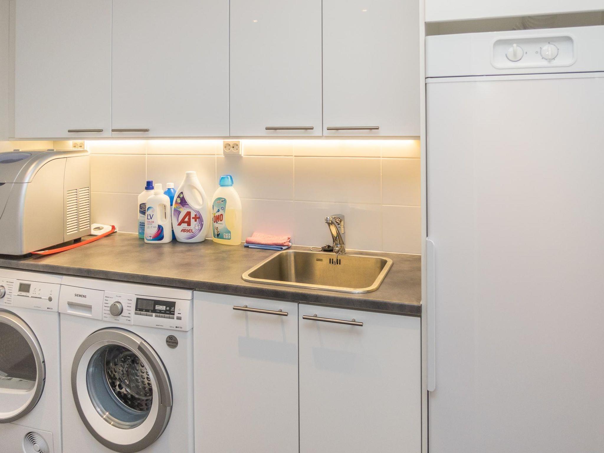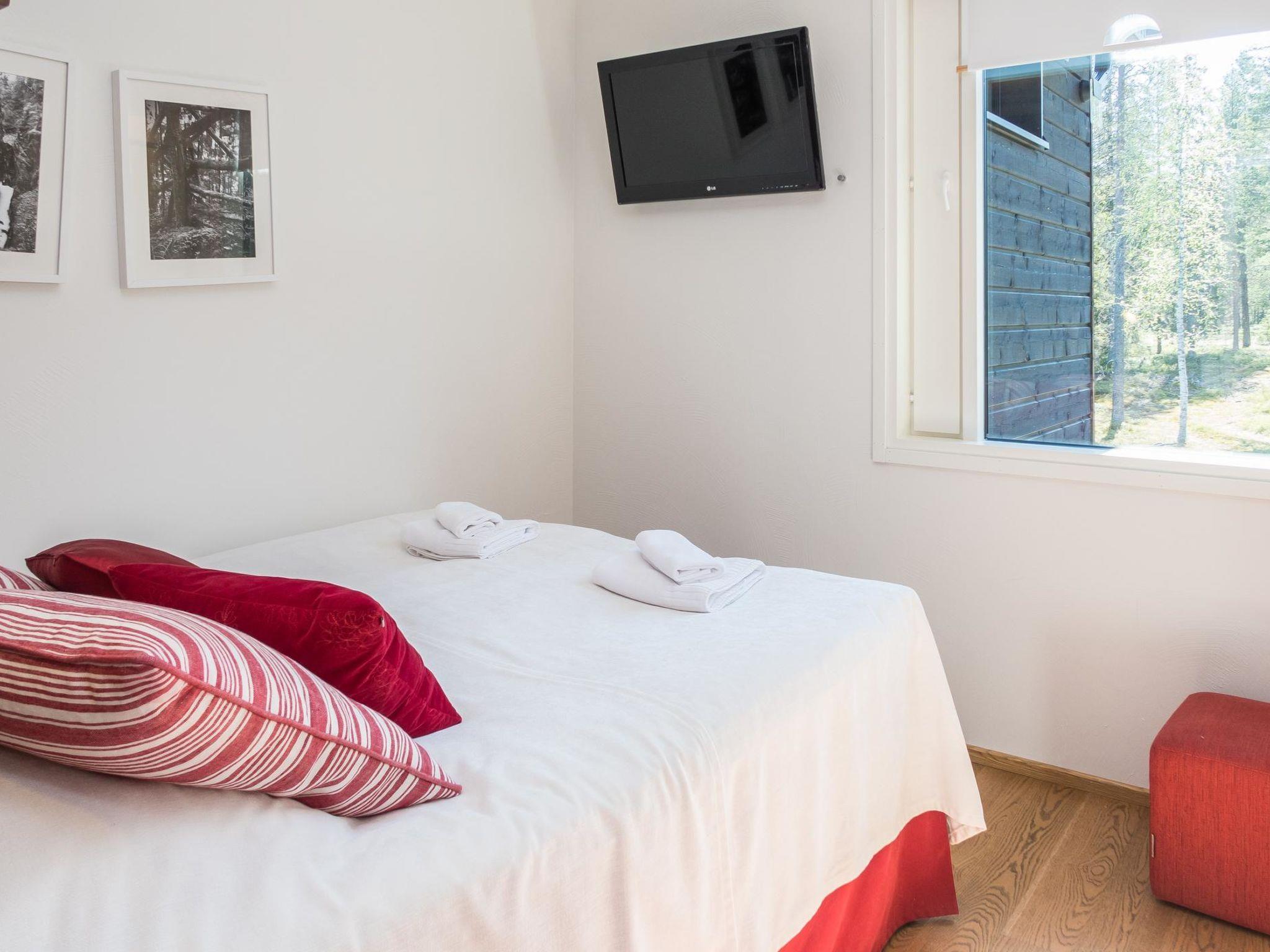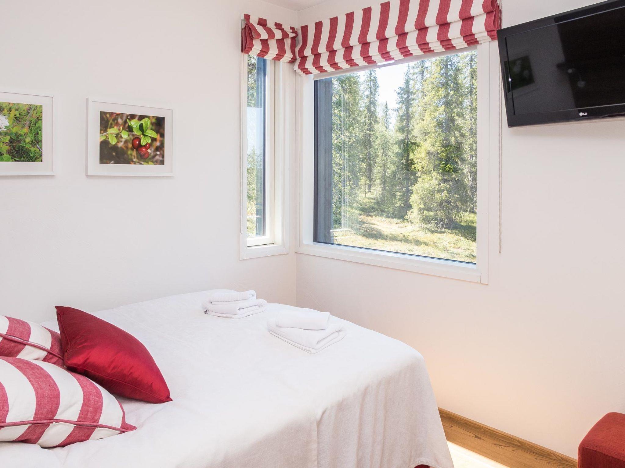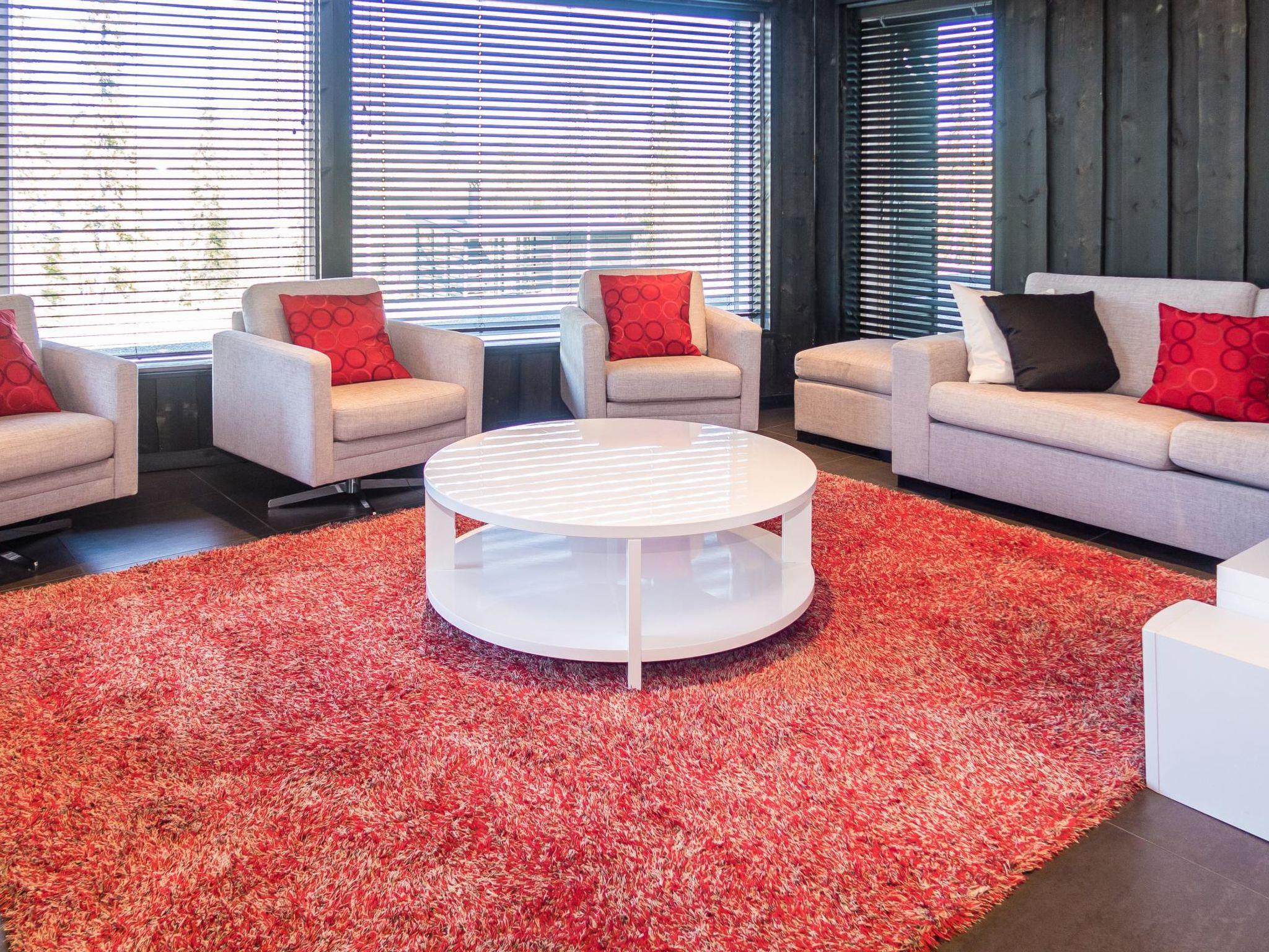22 km north from Kuusamo, Ruka Village (Western Ruka) 7.0 km. Apartment in a luxus semi-detached house in a fantastic location by the Lake Pyhäjärvi, built in 2014. Upstairs: Bedroom 1(master bedroom): double bed, toilet, shower/bathtub. Bedroom 2: double bed, toilet, shower. Bedroom 3: double bed, toilet, shower. Downstairs: Bedroom 1: double bed, toilet, shower. Note: The double beds in all bedrooms can be converted into separate beds if necessary. Office room: sofa bed for two. Combined living room/kitchen, electric sauna. Totally 6 toilets and 6 showers.