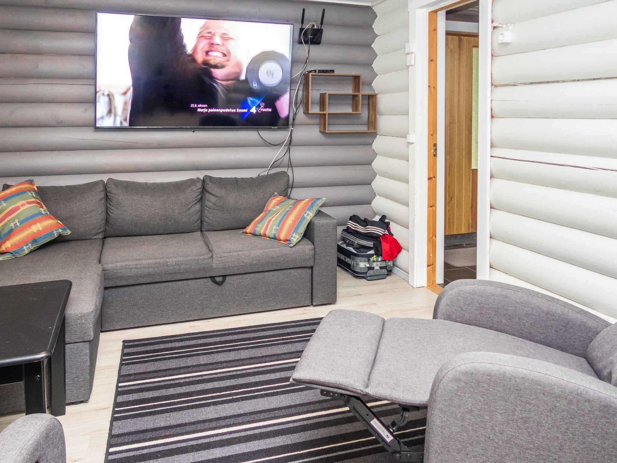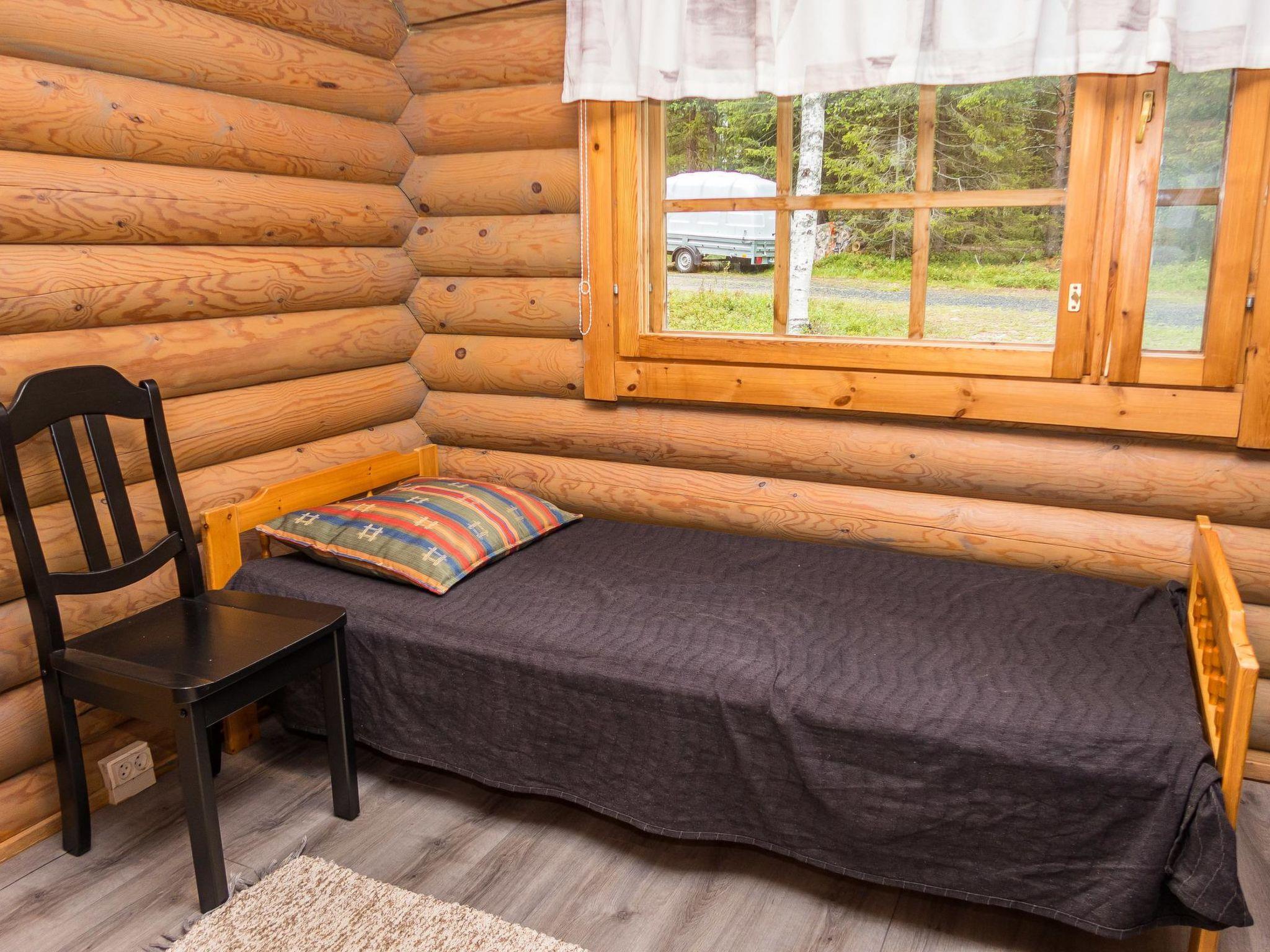 Log cottage, built in 1989, bedroom 1: double bed, bedroom 2: 120 cm bed 2, bedroom 3: 3 beds, living room sofa bed for 2, bedroom 4: double bed. Combined kitchen/living room, wood heated sauna (entrance through the terrace).