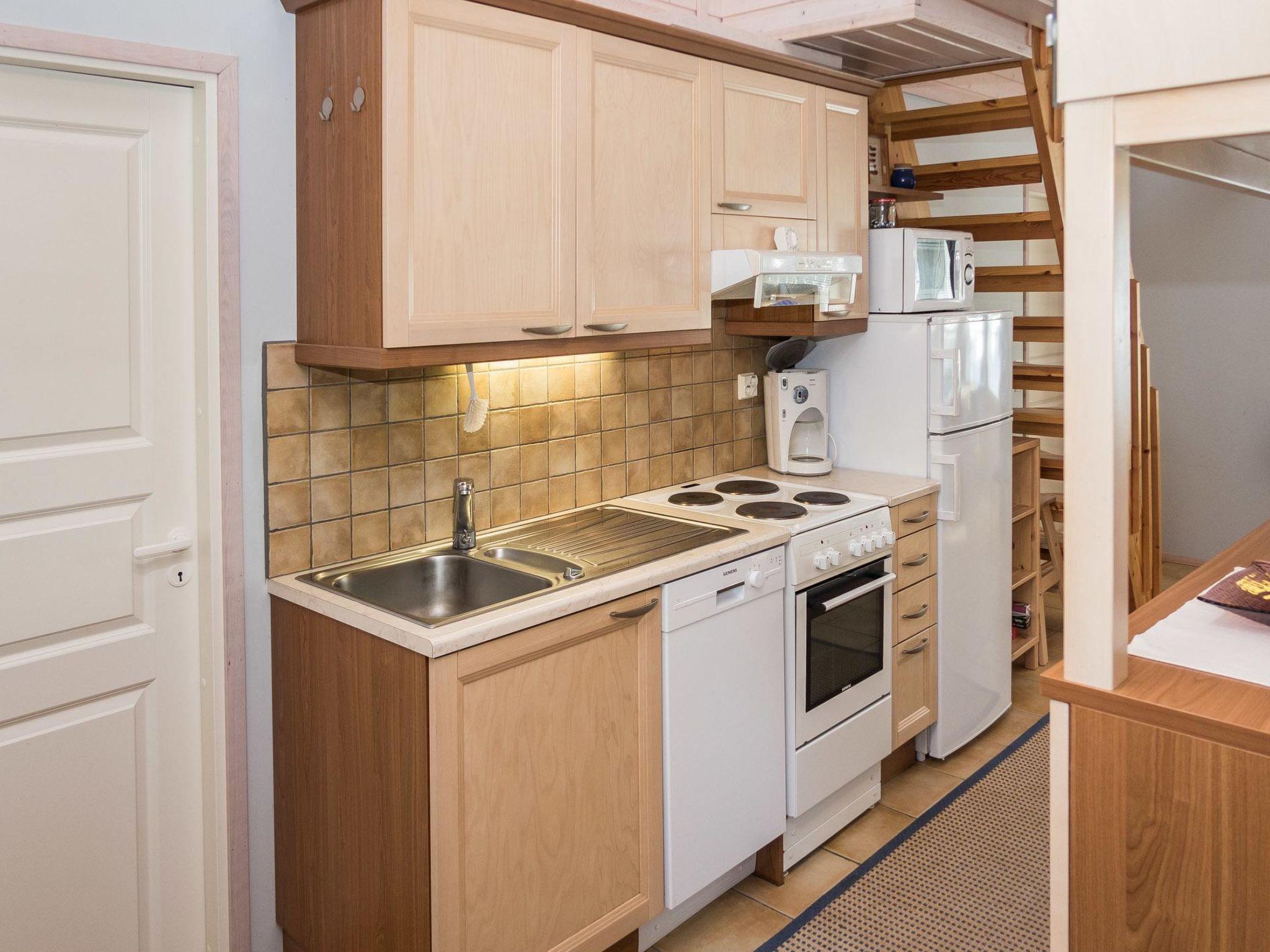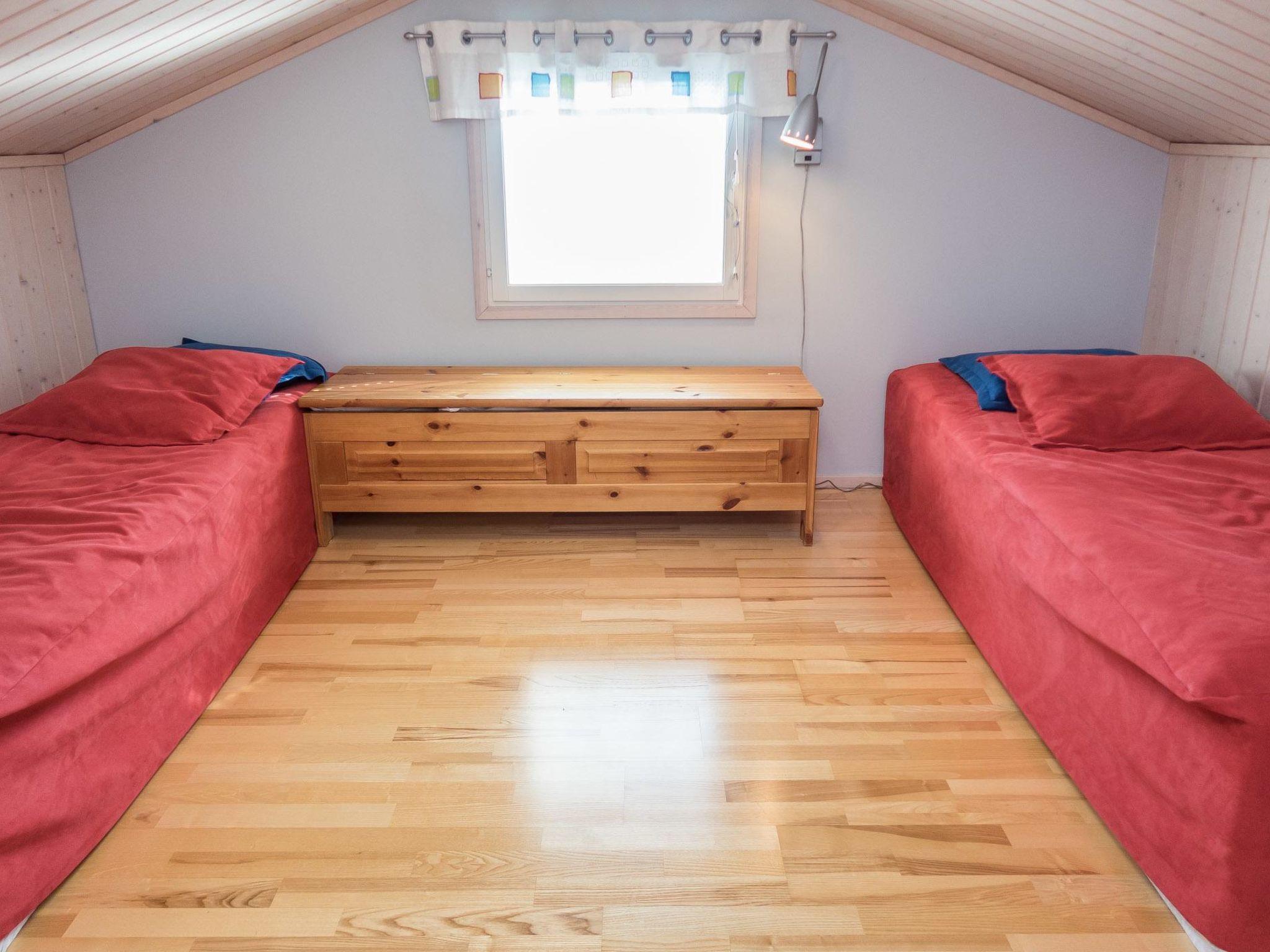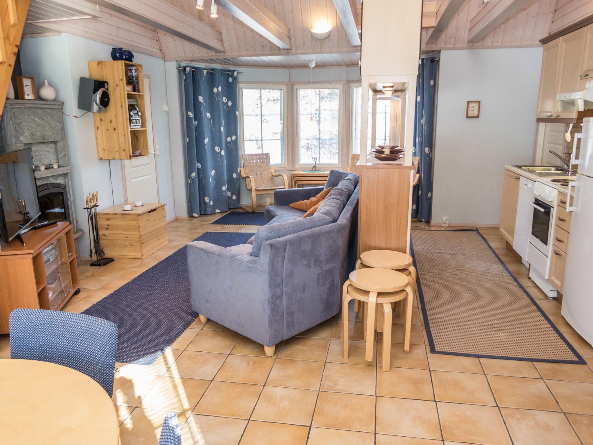 26 km to the north from Kuusamo, Vuosseli (East-Ruka) 1,4 km. Nice wooden semi-detached house, built in 2004. Bedroom 1: 2 beds, bedroom 2: 2 beds, 2 sleeping sites in the loft (folding door, height of the room is lower than usual): 2 mattresses per sleeping site, steep stairs to the loft, living room/kitchen, electric sauna, dressing room. Separate WC and another WC in the washroom. In addition to a high chair and baby cot the child epuipment includes also a potty.