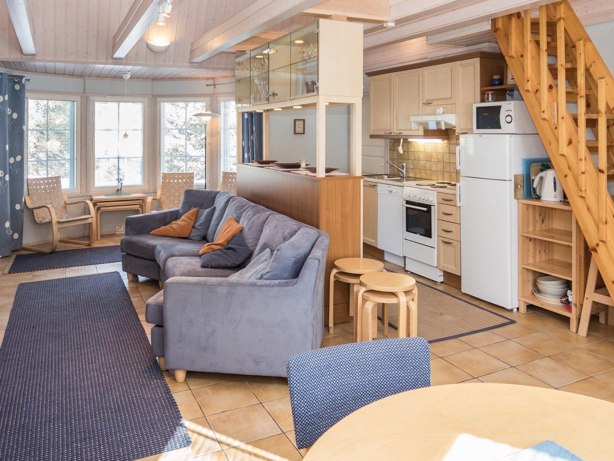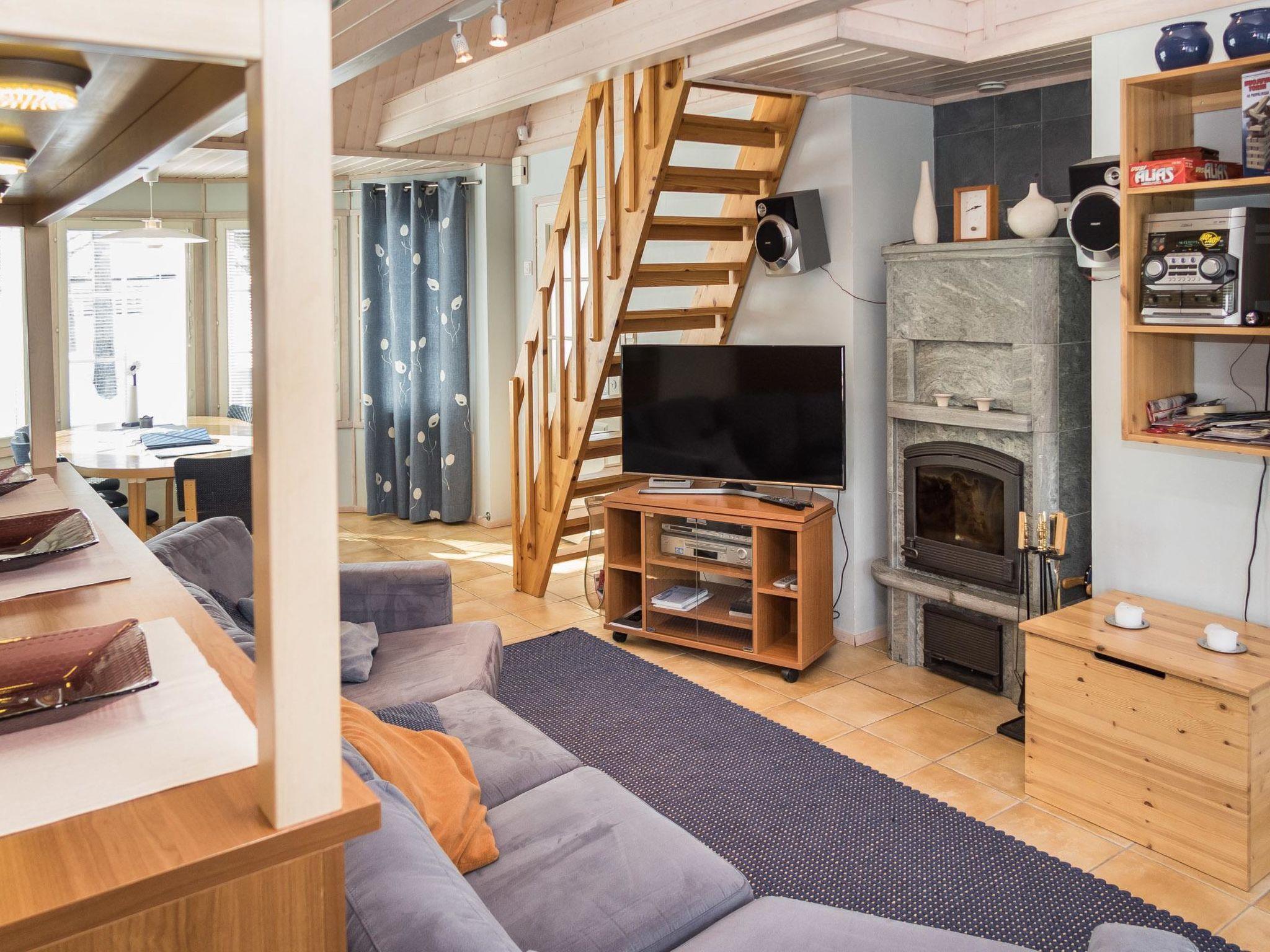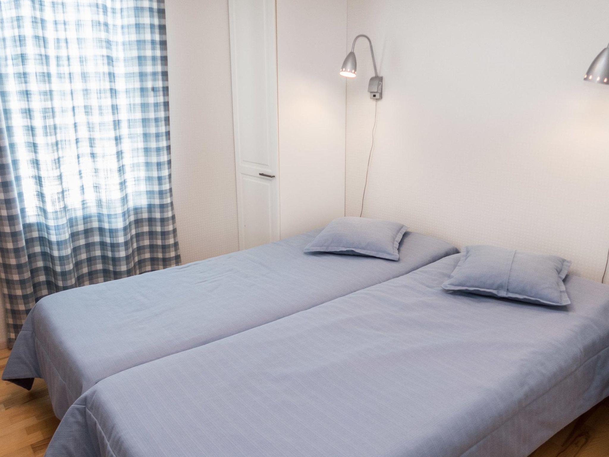 26 km to the north from Kuusamo, Vuosseli (East-Ruka) 1,4 km. Nice wooden semi-detached house, built in 2004. Bedroom 1: 2 beds, bedroom 2: 2 beds, 2 sleeping sites in the loft (folding door, height of the room is lower than usual): 2 mattresses per sleeping site, steep stairs to the loft, living room/kitchen, electric sauna, dressing room. Separate WC and another WC in the washroom. In addition to a high chair and baby cot the child epuipment includes also a potty.