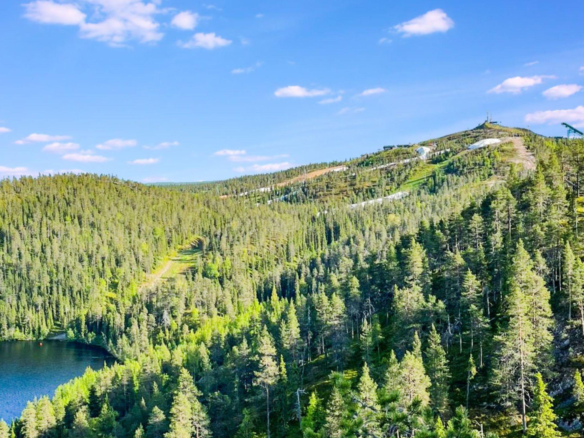 28 km north from Kuusamo, distance to Ruka ski resort is 1,5 km along a hiking trail, 6,5 km distance by a car (1,5 km along a ski trail), pond Valkeisenlampi 100 m.