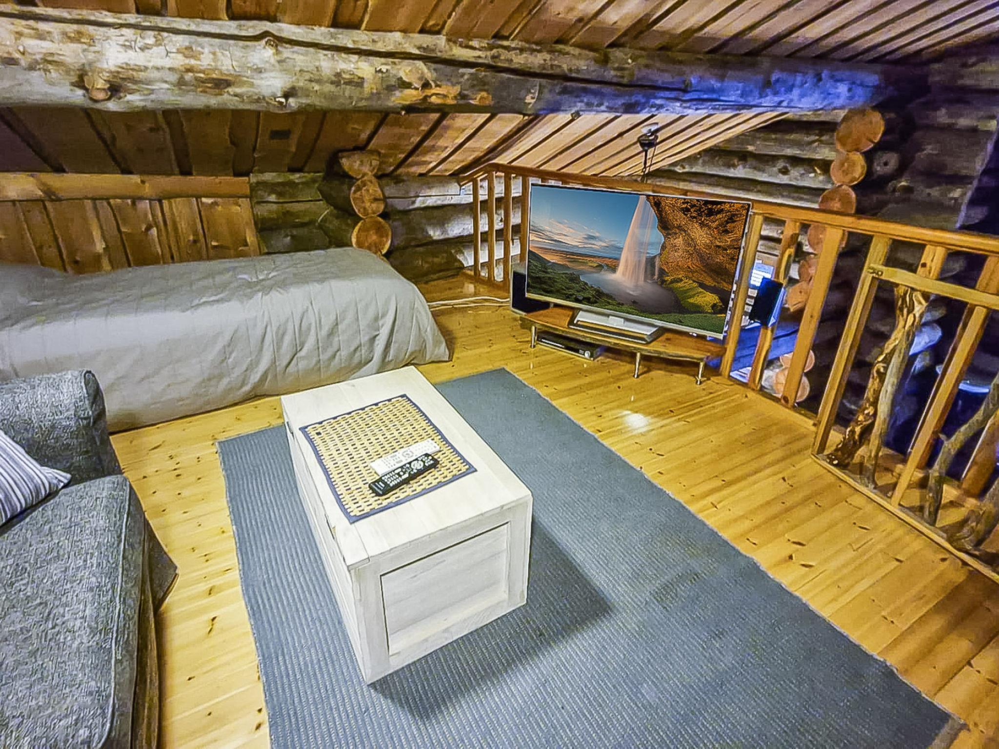 27 km to the north from Kuusamo, Vuosseli (East-Ruka) 500 m. Semidetached log house built in 2000, Kitchen / livingroom. Bedroom 1: double bed (140 cm), large loft: 1 bed and frame mattress for two. The smaller loft can be used as a living area. Kitchen, electric sauna, shower/toilet.
