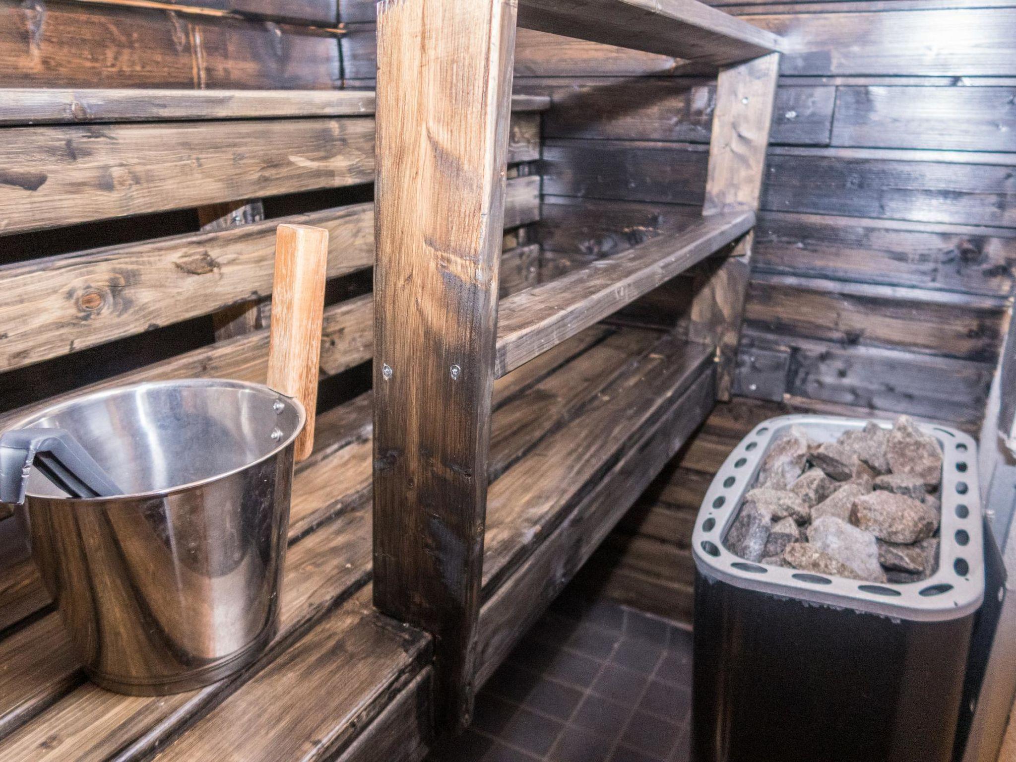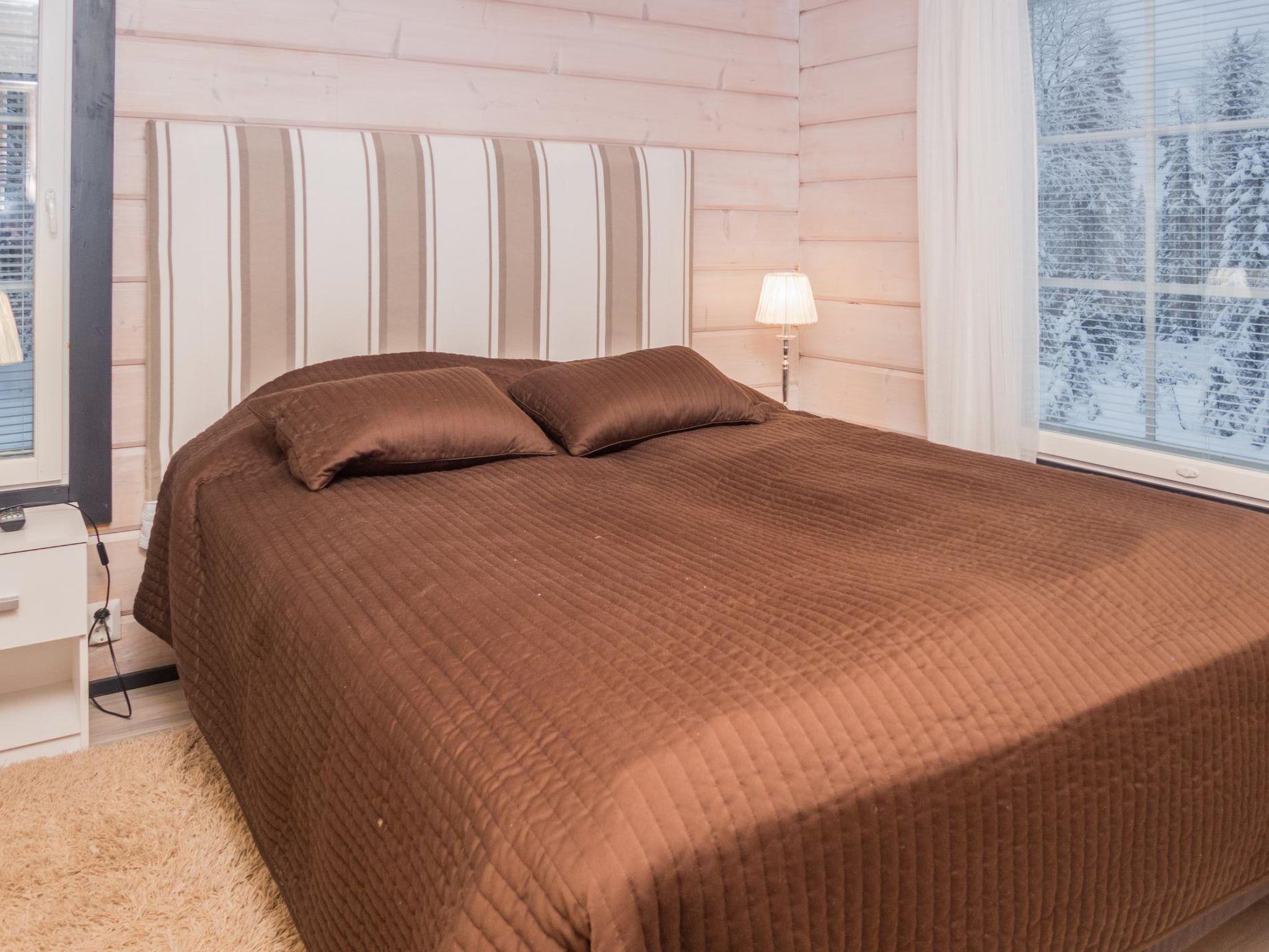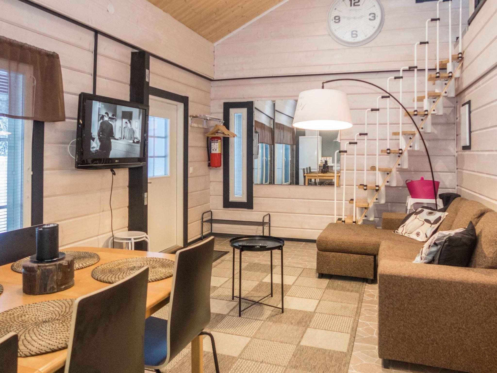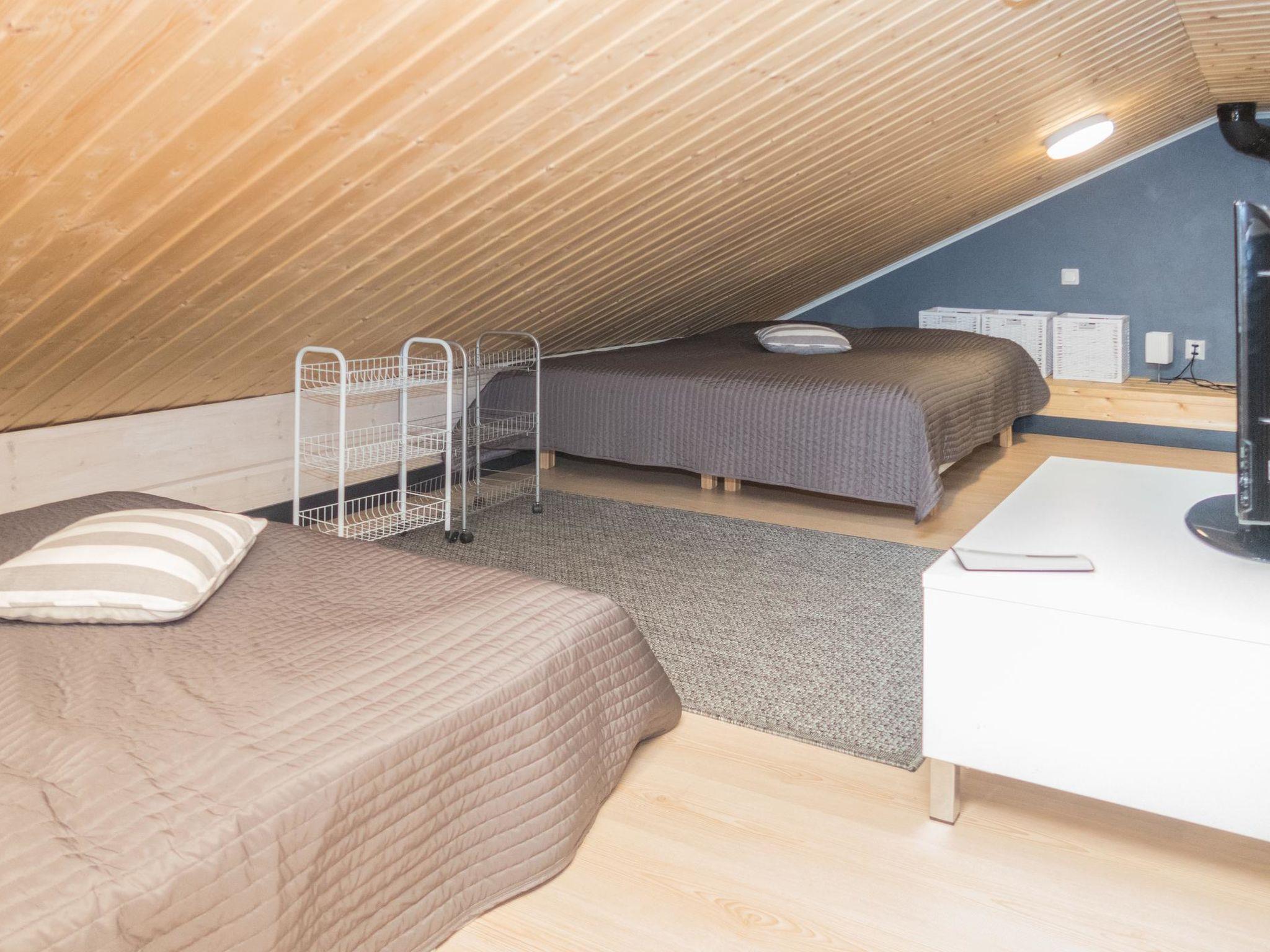 Log semi-detached house, built in 2014. Bedroom: double bed, loft: 2 beds + 2 mattresses, steep stairs to the loft. Living area, living room/kitchen, electric sauna.