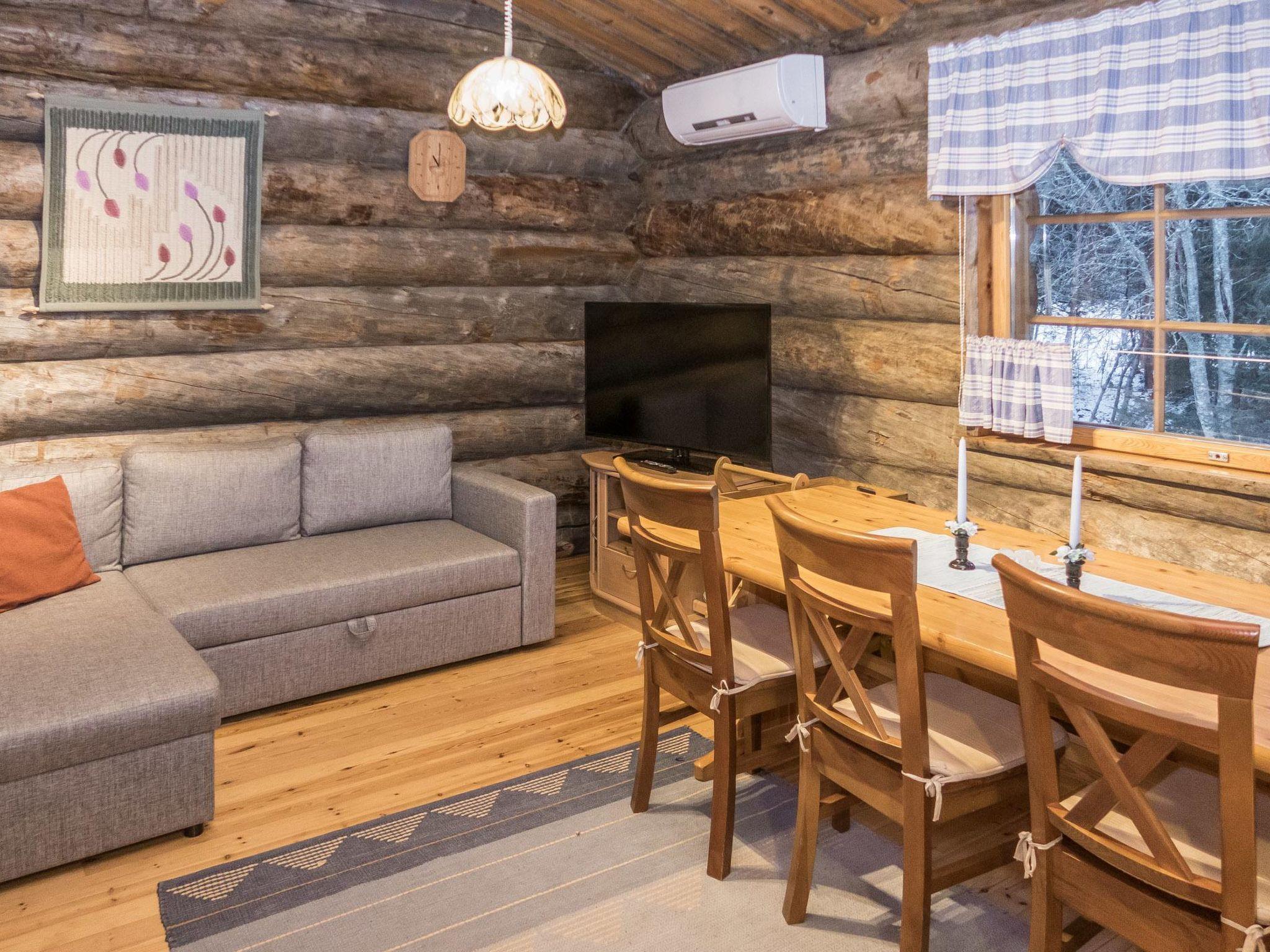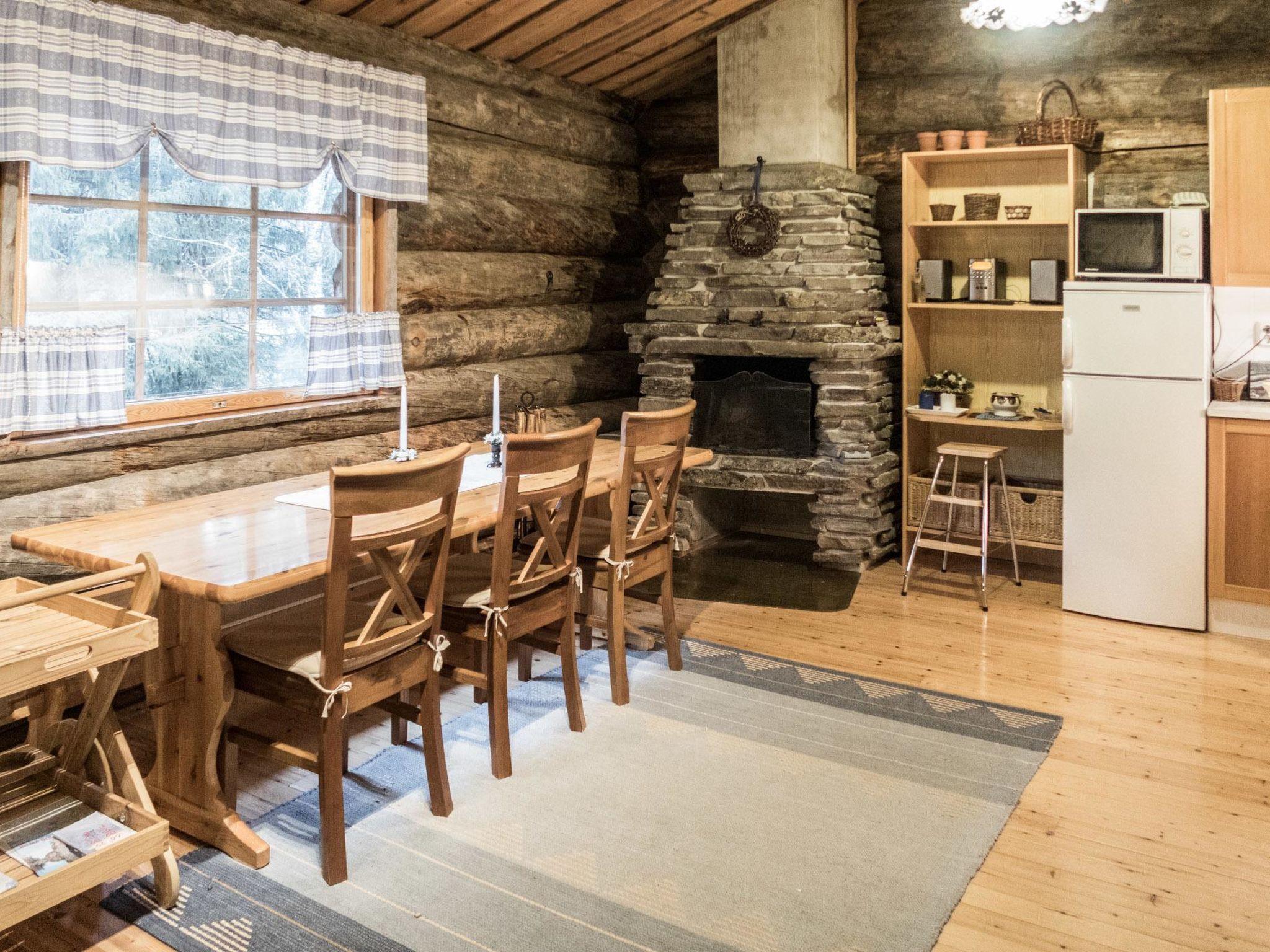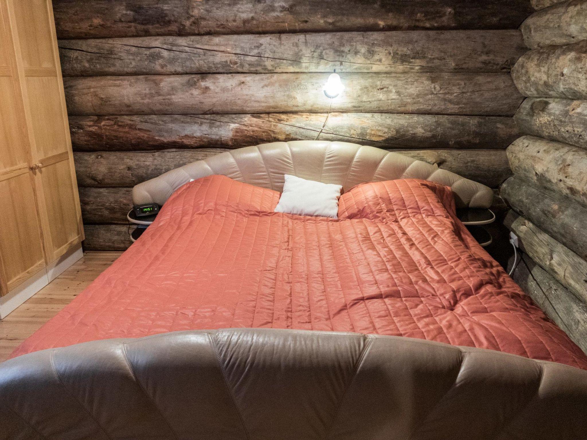 23 km north of Kuusamo, Ruka village (Western Ruka) 3,7 km, Rukajärvi lake 100 m (length 4 km, width 1.5 km). Apartment in a kelo-log row house (in the middle). Bedroom: double bed, sleeping loft (20 m², low room height, steep stairs) 4 mattresses, electric sauna, washroom (shower cabin).
