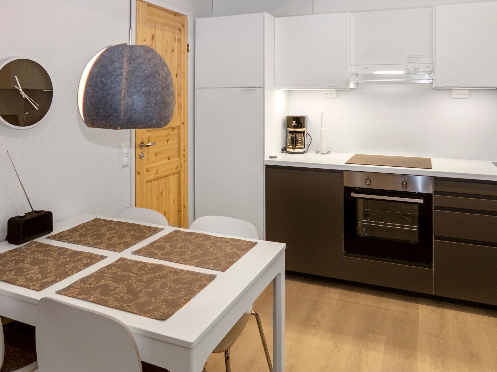 Apartment in a row house area, on a hillside location. Good connections to the Ruka central square e.g. by foot or SkiBus (distance to the bus stop is about 350 m). The nearest ski lift is Kelo E, the distance is about 1,5 km. Ski trail 300 m. The nearest restaurant is Royal Ruka.