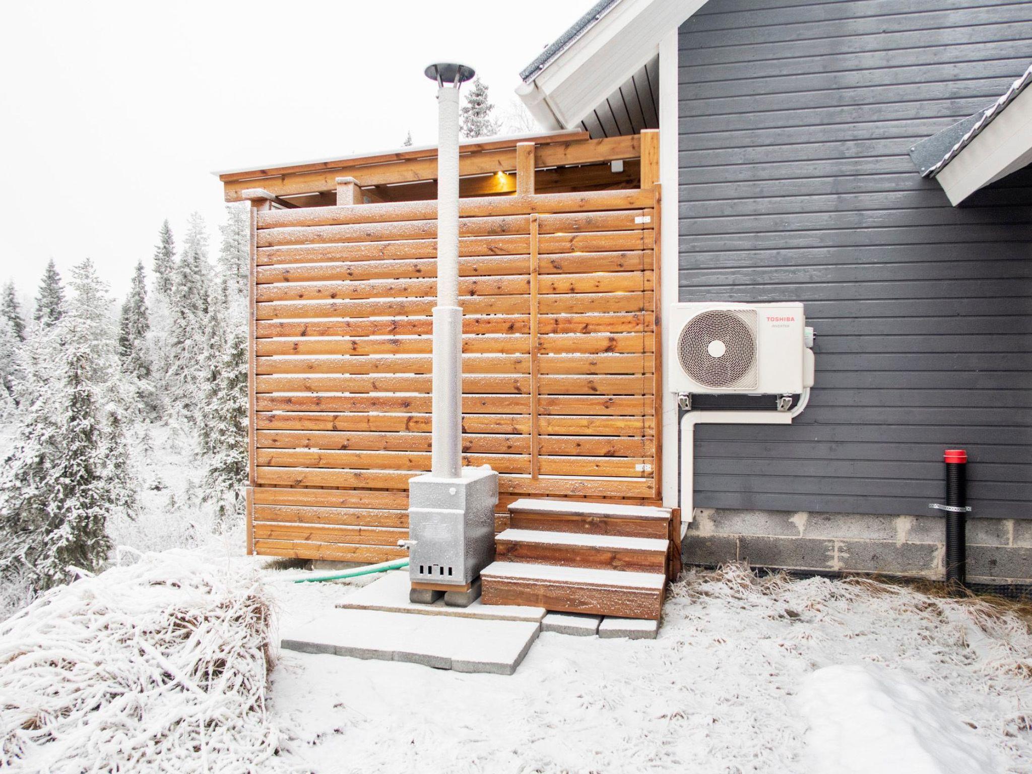 20 km to the north from Kuusamo, Ruka 7 km, lake Pyhäjärvi 700 m. Apartment in the semi-detached house, built in 2020. Spacious living room/kitchen, bedroom 1: 2 beds and bunk bed, bedroom 2: double bed, washroom, WC, electric sauna, glazed terrace, car shelter.