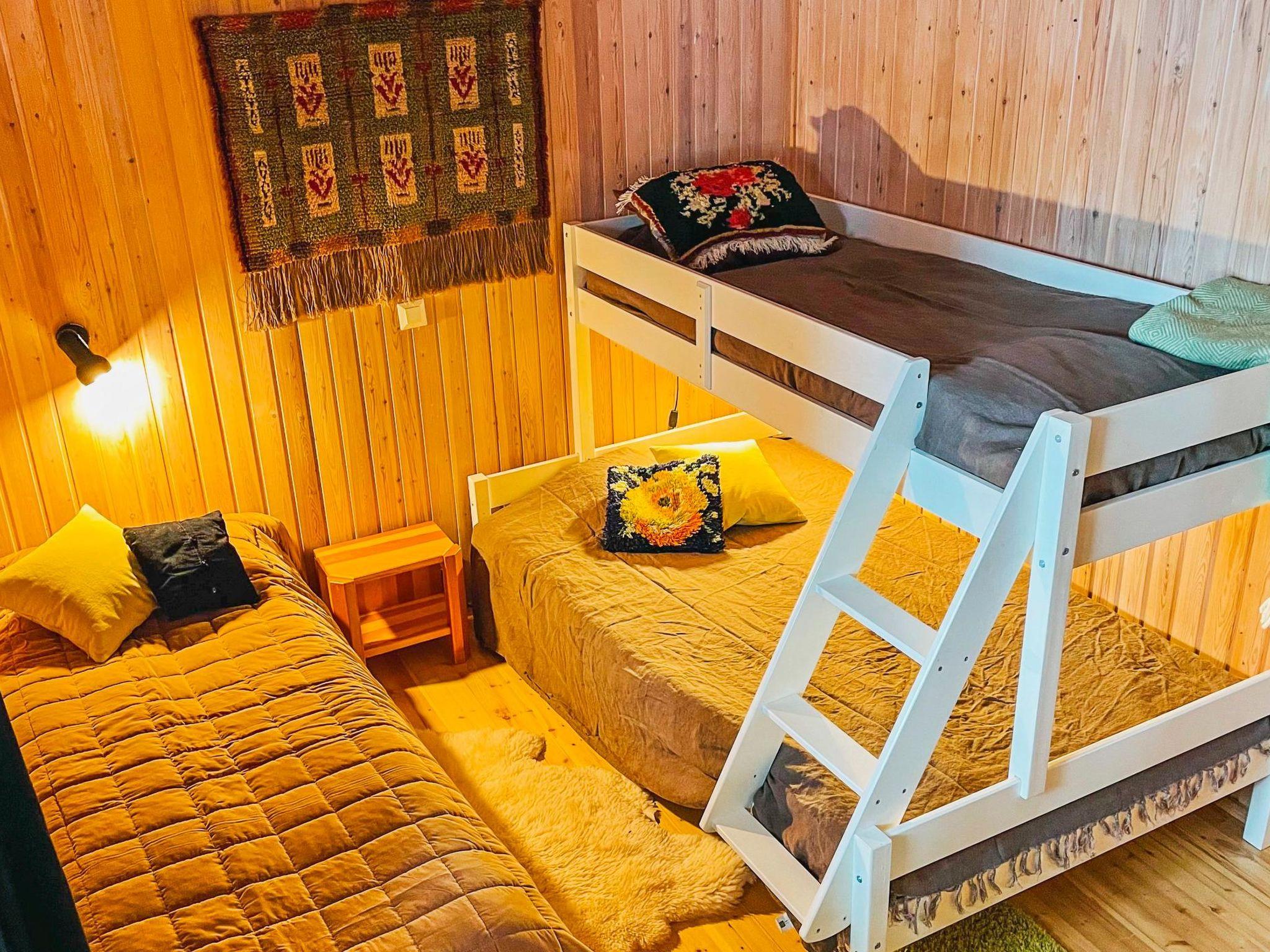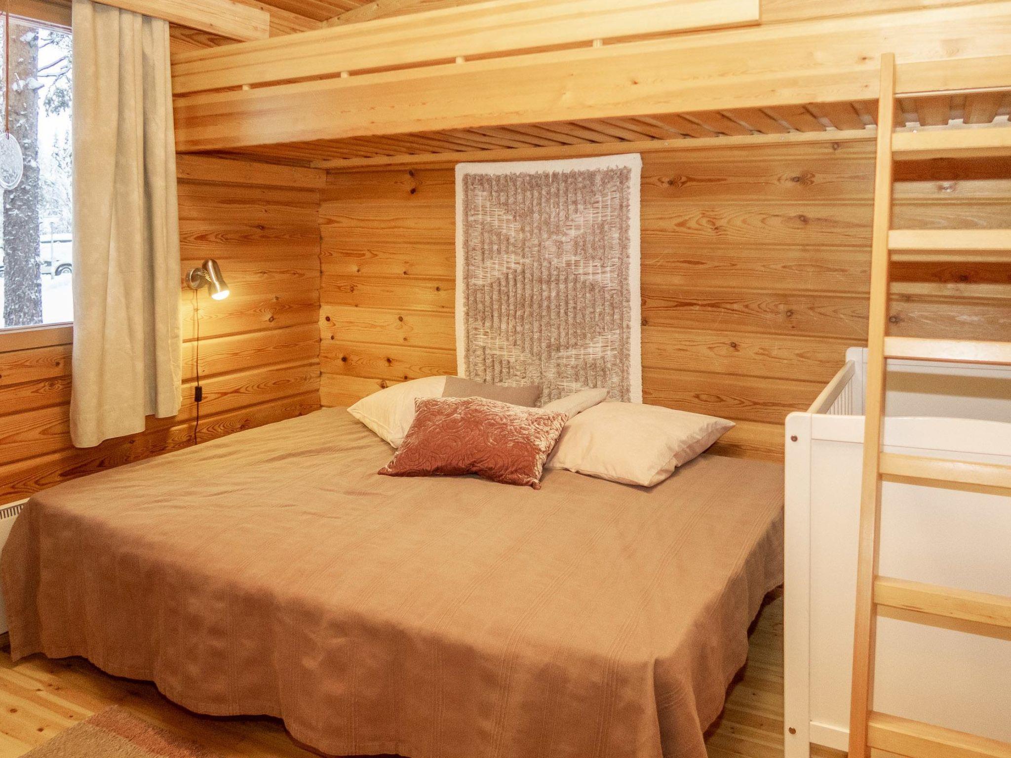 27 km to the north from Kuusamo, Ruka village (West-Ruka) 700 m. Log cabin, built in 1976 and extended in 2000. Bedroom 1: double bed + loft bed, bedroom 2: 1 bed + bunk bed (lower bed 120 cm), bedroom 3: double bed + 1 bed. Living room, kitchen, electric sauna.