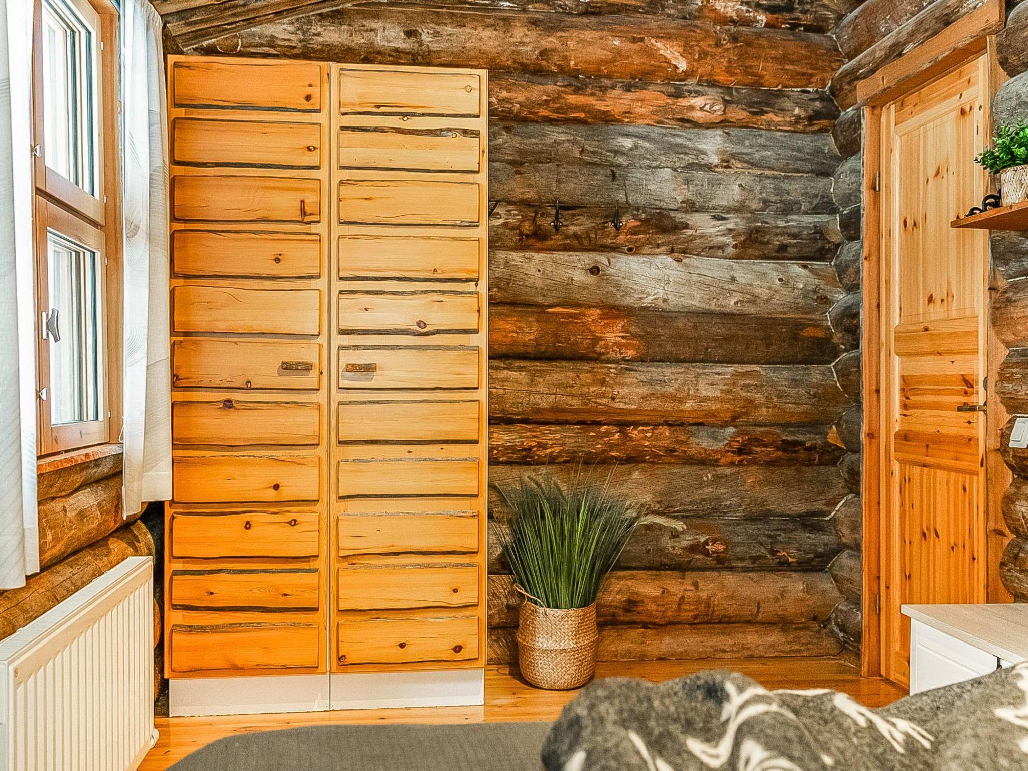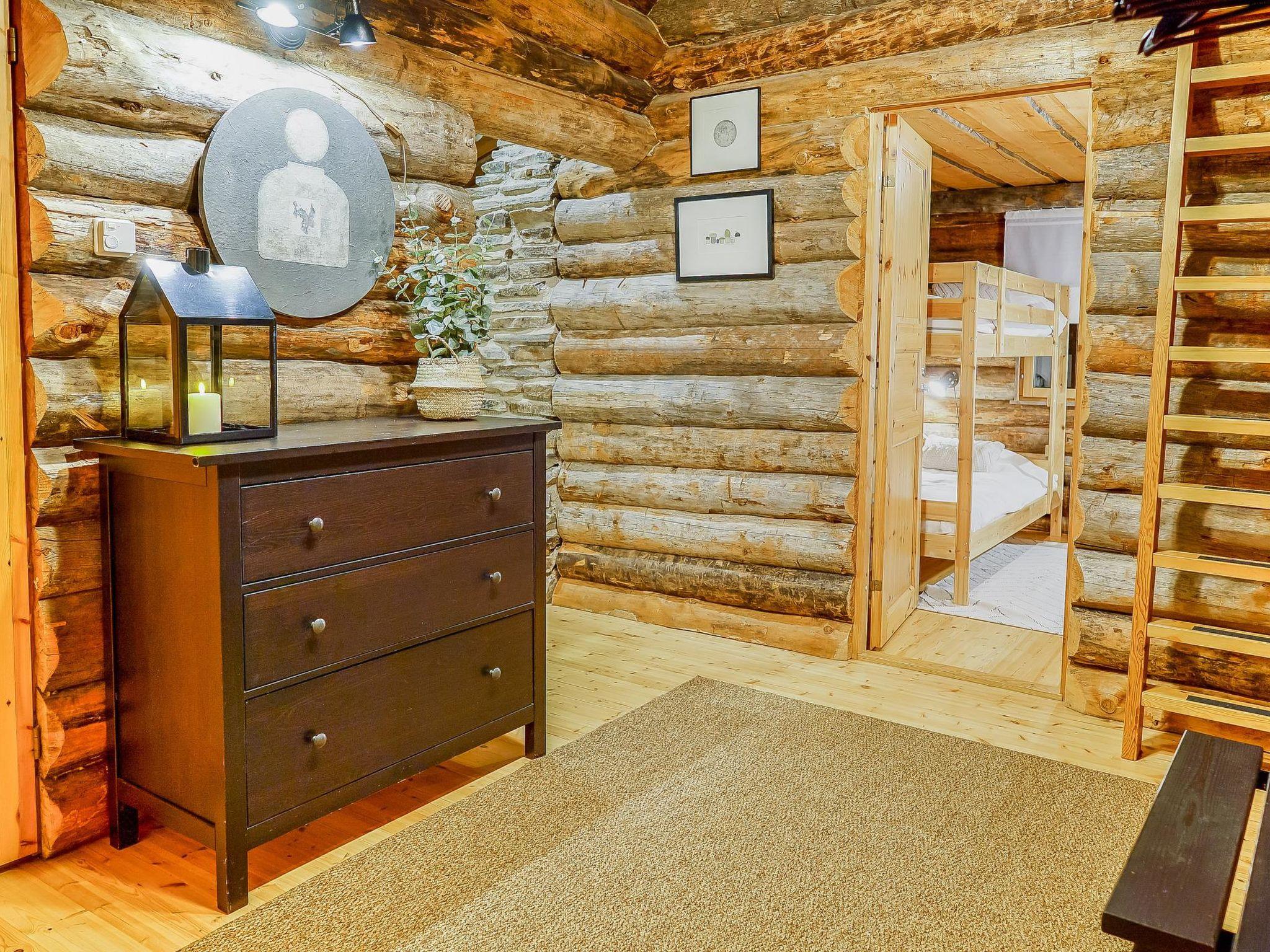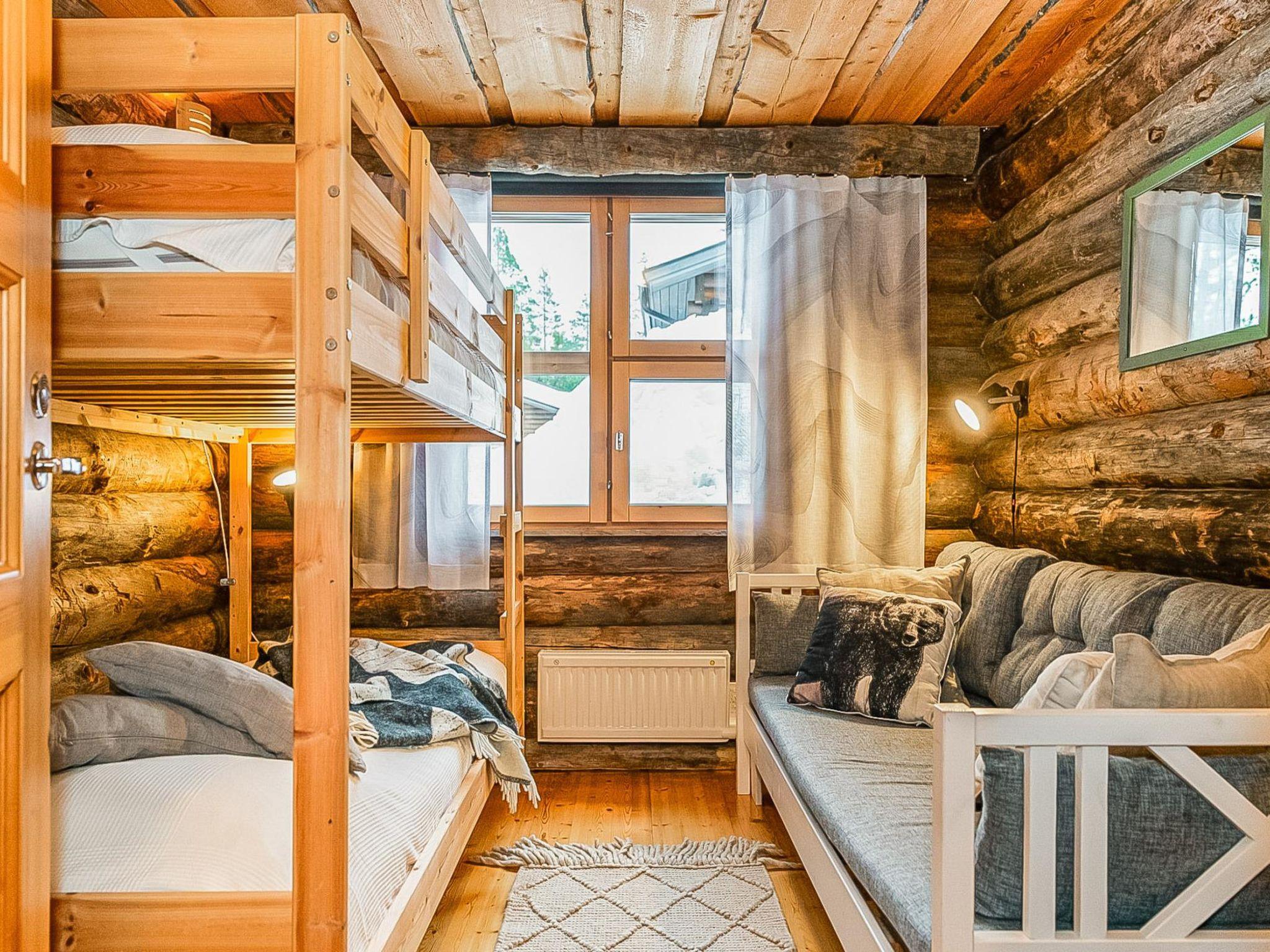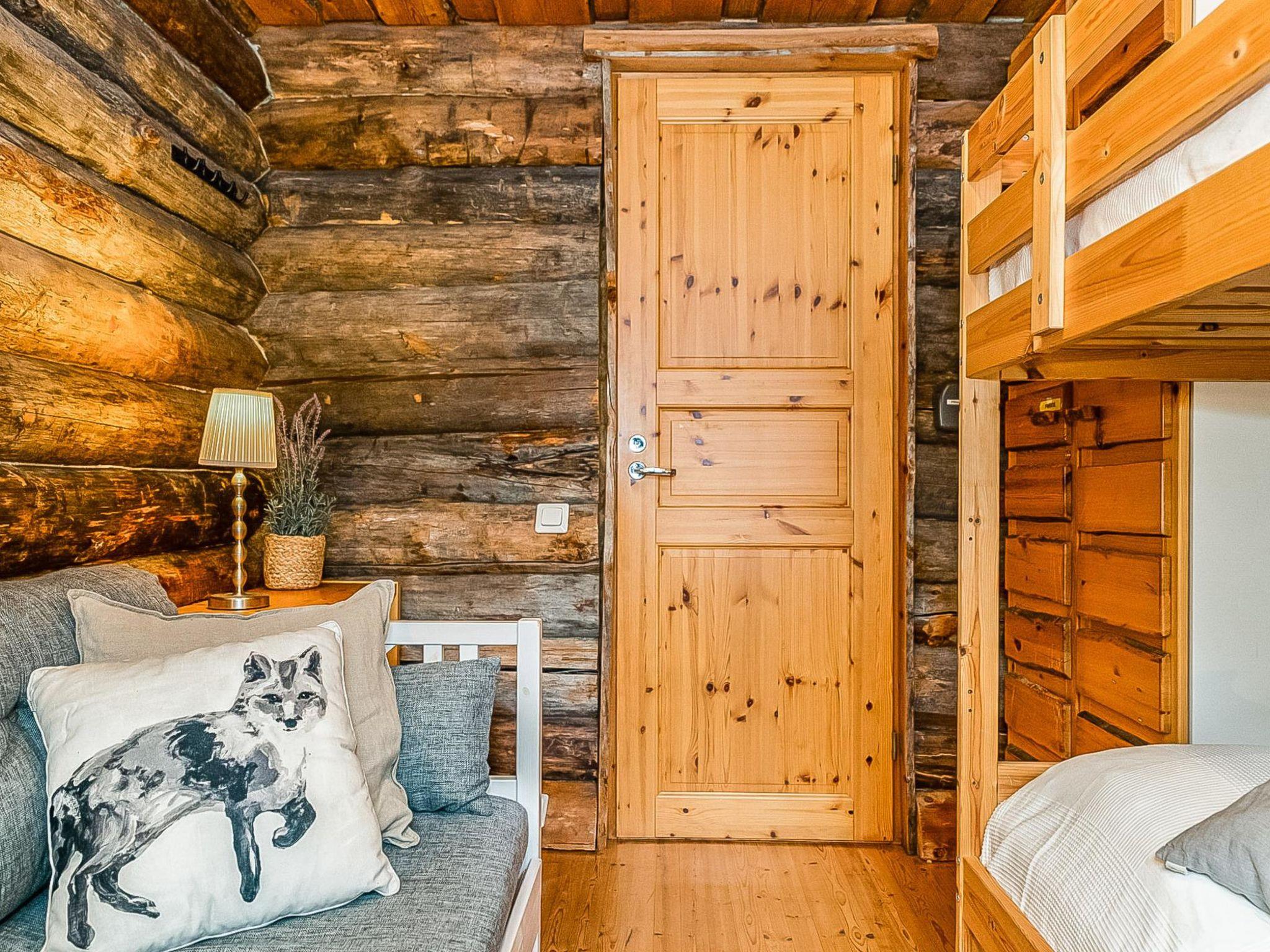 25 km to the north from Kuusamo, Ruka village 3 km. Lake Kesäjärvi 20 m. Apartment in semidetached kelo log house, built in 1991. Bedroom 1: 2 beds, bedroom 2: spreadable sofa bed (140 cm) and bunk bed, living room: spreadable sofa bed, shallow loft (7 m², steep stairs to the loft): 4 mattresses with topper of double bed, living room/kitchen, electric sauna.