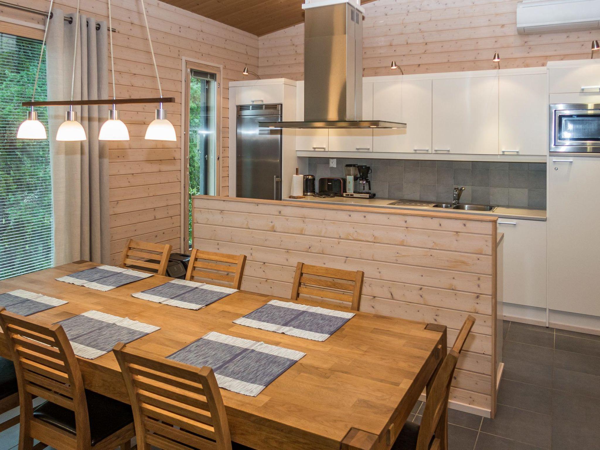 A spacious and cozy other half of a semi-detached house, built in 2009, located in a peaceful area by Lake Salmilampi. The total floor area of the apartment is 116 m² (ground floor 99 m² and upper floor 17.5 m²). The apartment is very clean and modern, with large windows in the living area, dining area, and kitchen offering views of Lake Salmilampi and Salmilammenvaara Hill. There are plenty of birds on the lake, including a family of swans. An otter has also been spotted on the lake. The landscape changes according to the seasons, from summer green to autumn colors, and not forgetting the snow white in winter.