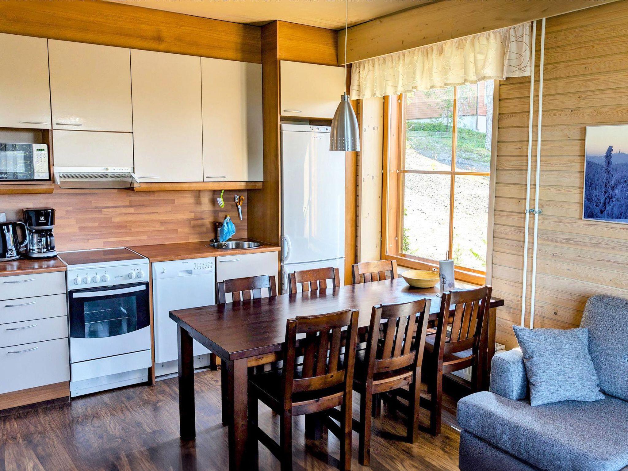 Spacious apartment near Ruka ski stadium and lake Talvijärvi. There are three bedrooms, two with 2 beds and one with bunk bed. Living room/kitchen and electric sauna.