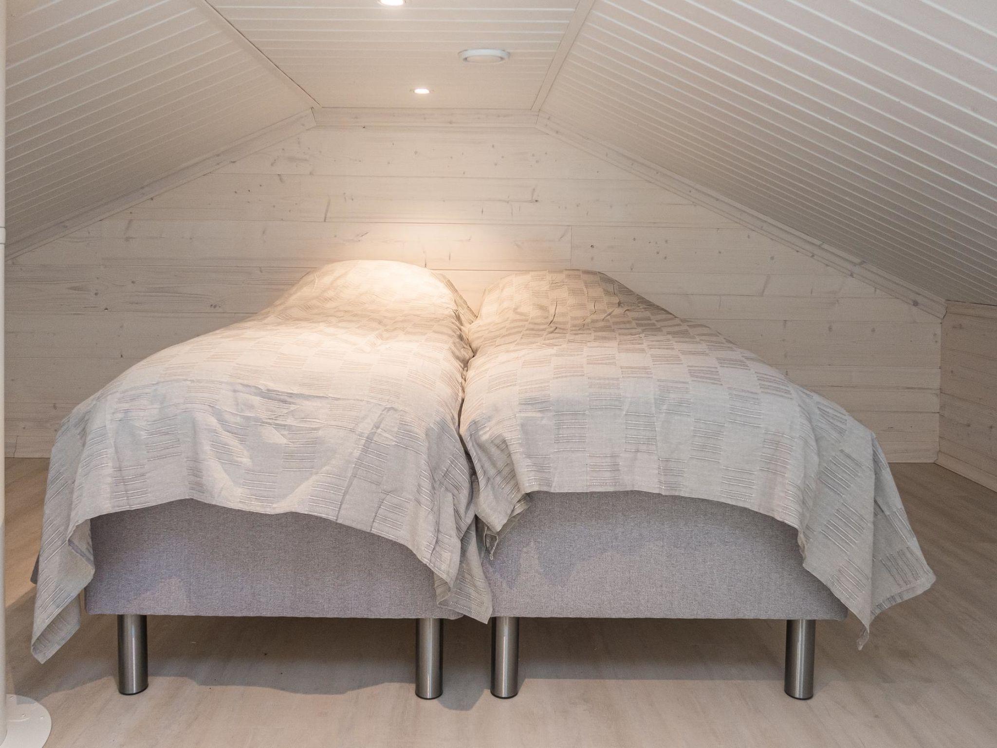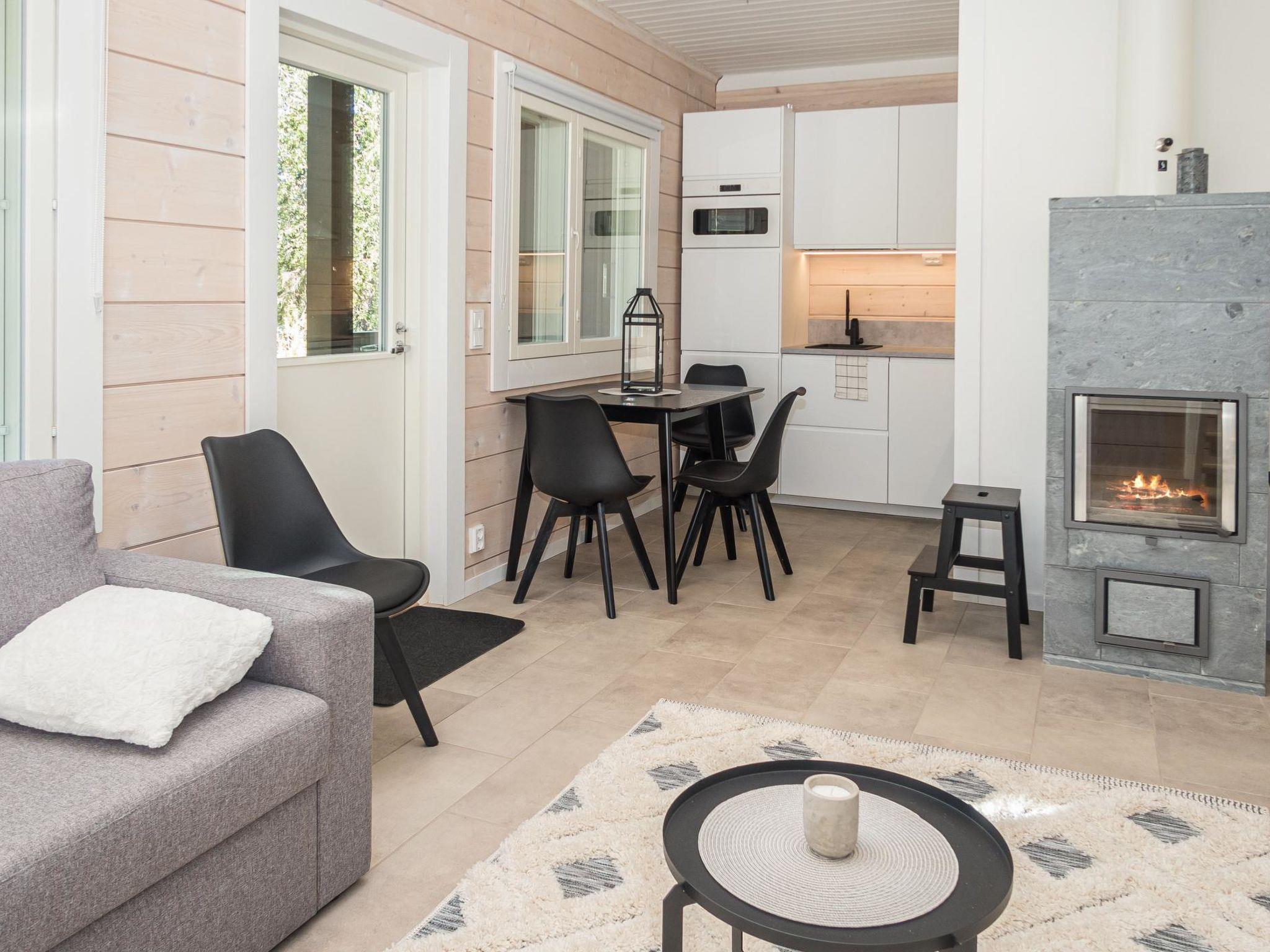 Stylish apartment in semi-detached house by the river Kitkajoki (30 m). Ground floor bedroom and loft, both have 2 beds. In addition, spreadable sofa bed for two in the living room. The destination can therefore accommodate 6 people, and by booking the entire semi-detached house (KitkanVee 1 and 2), a larger group can also be accommodated easily.