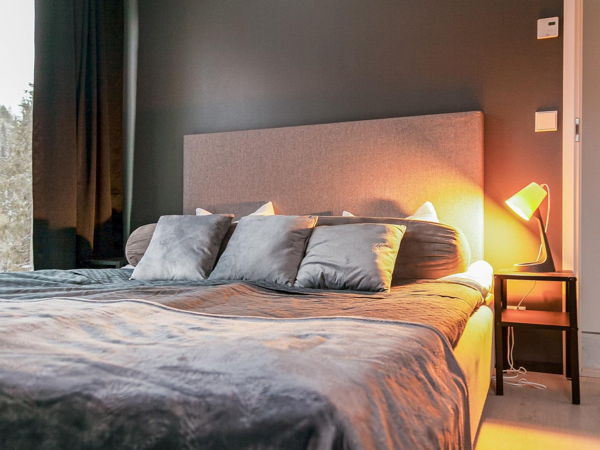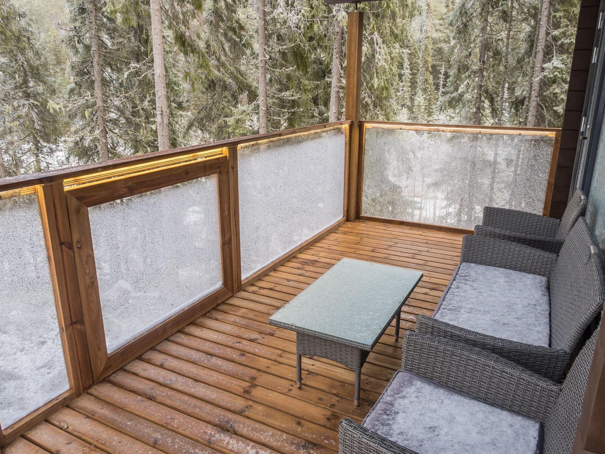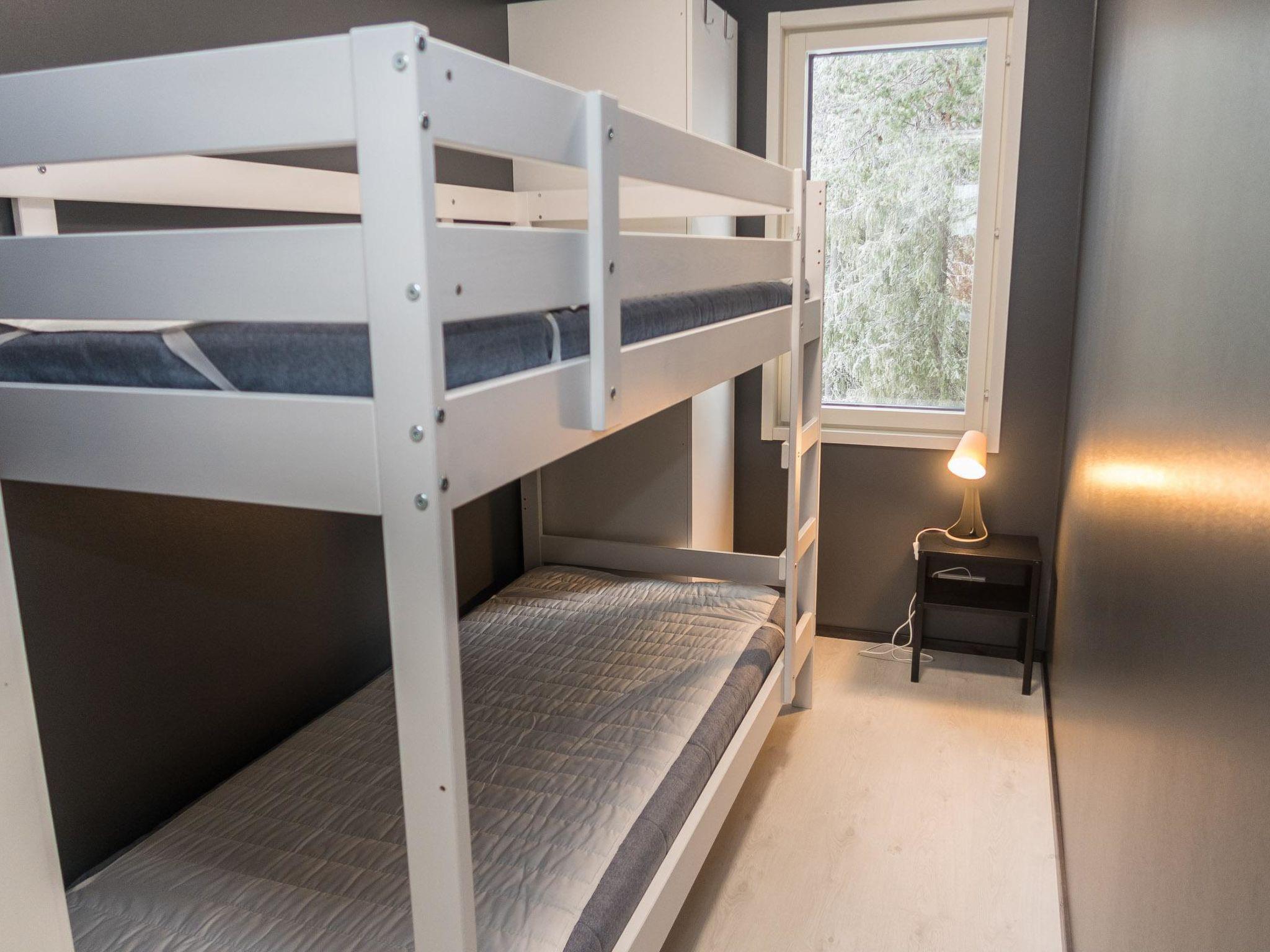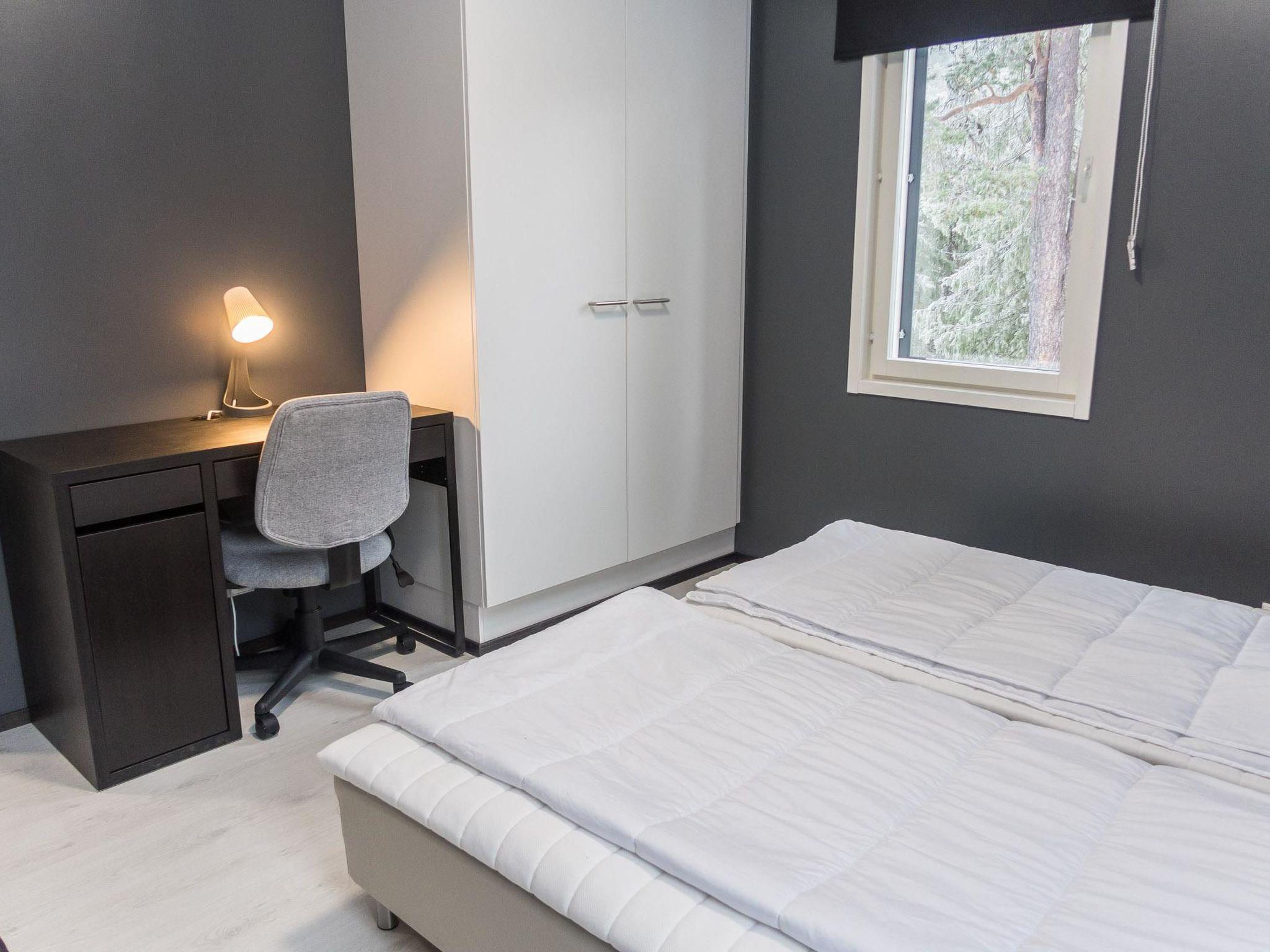 Stylish and spacious cabin by the pond Salmilampi, close to services of Ruka. All 5 bedrooms of the cabin are located upstairs. Three bedrooms have 2 separate beds and two have bunk beds. There is an electric sauna in the cabin. Wood-heated lakeside sauna with facilities for resting can be rented at additional cost. A glazed cooking hut is available for customers. Hydromassage bath outdoors on the cottage terrace for additional fee.