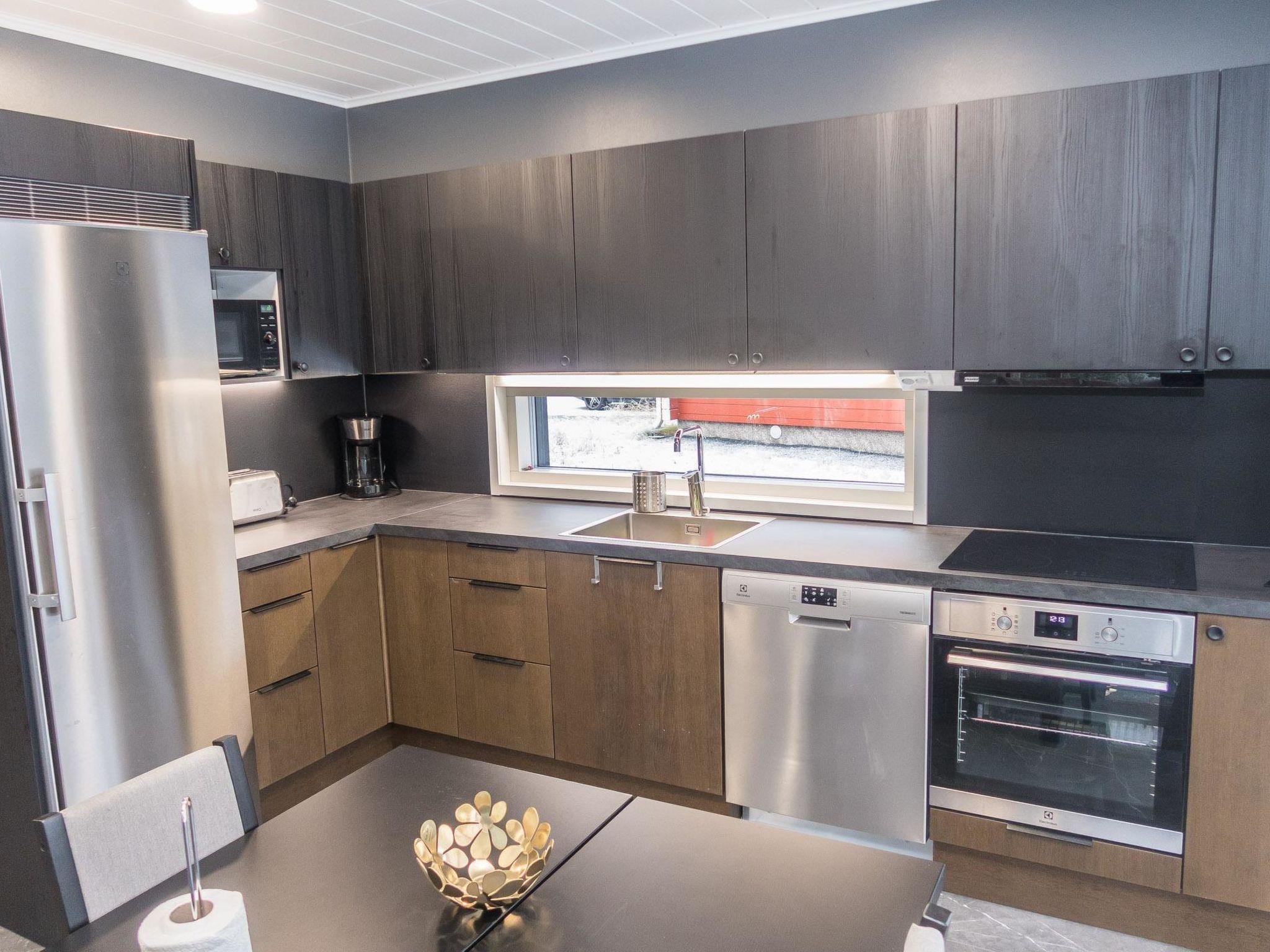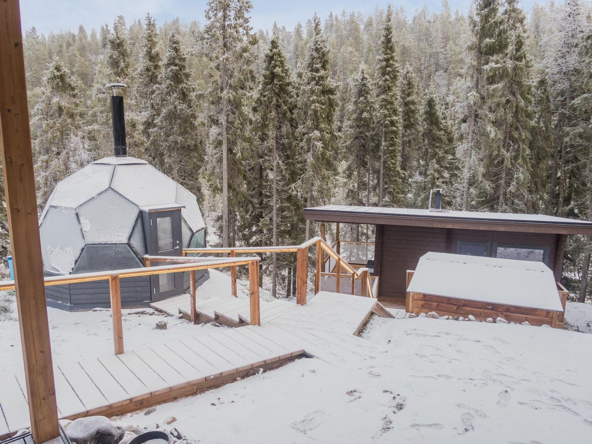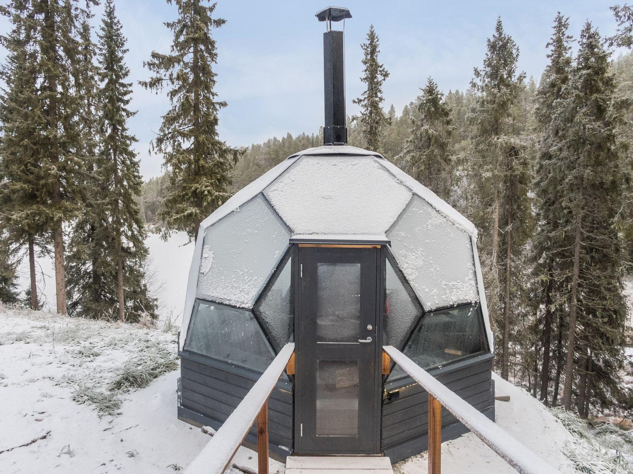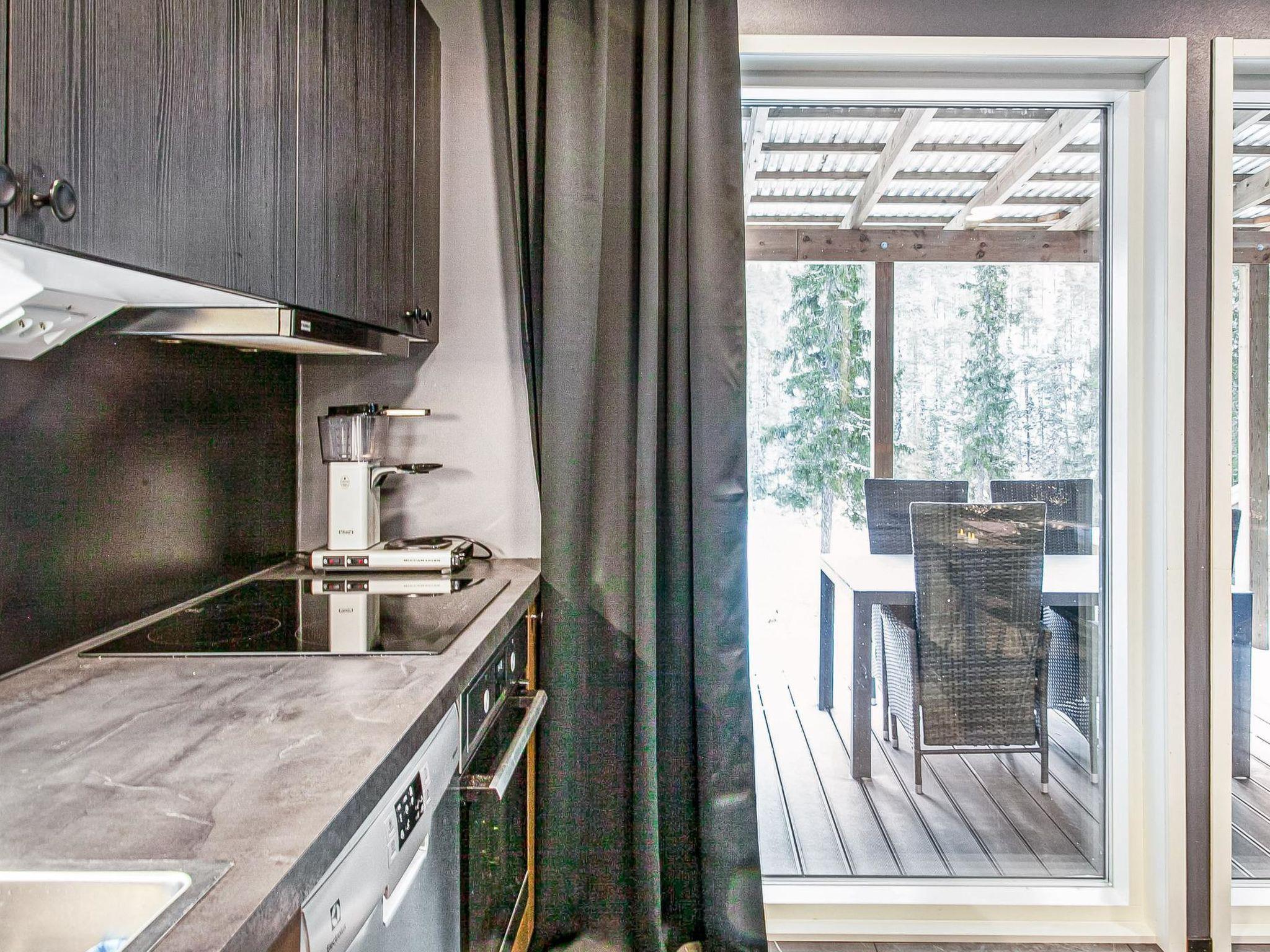 Stylish and spacious cabin by the pond Salmilampi, close to services of Ruka. All 5 bedrooms of the cabin are located upstairs. Three bedrooms have 2 separate beds and two have bunk beds. There is an electric sauna in the cabin. Wood-heated lakeside sauna with facilities for resting can be rented at additional cost. A glazed cooking hut is available for customers. Hydromassage bath outdoors on the cottage terrace for additional fee.