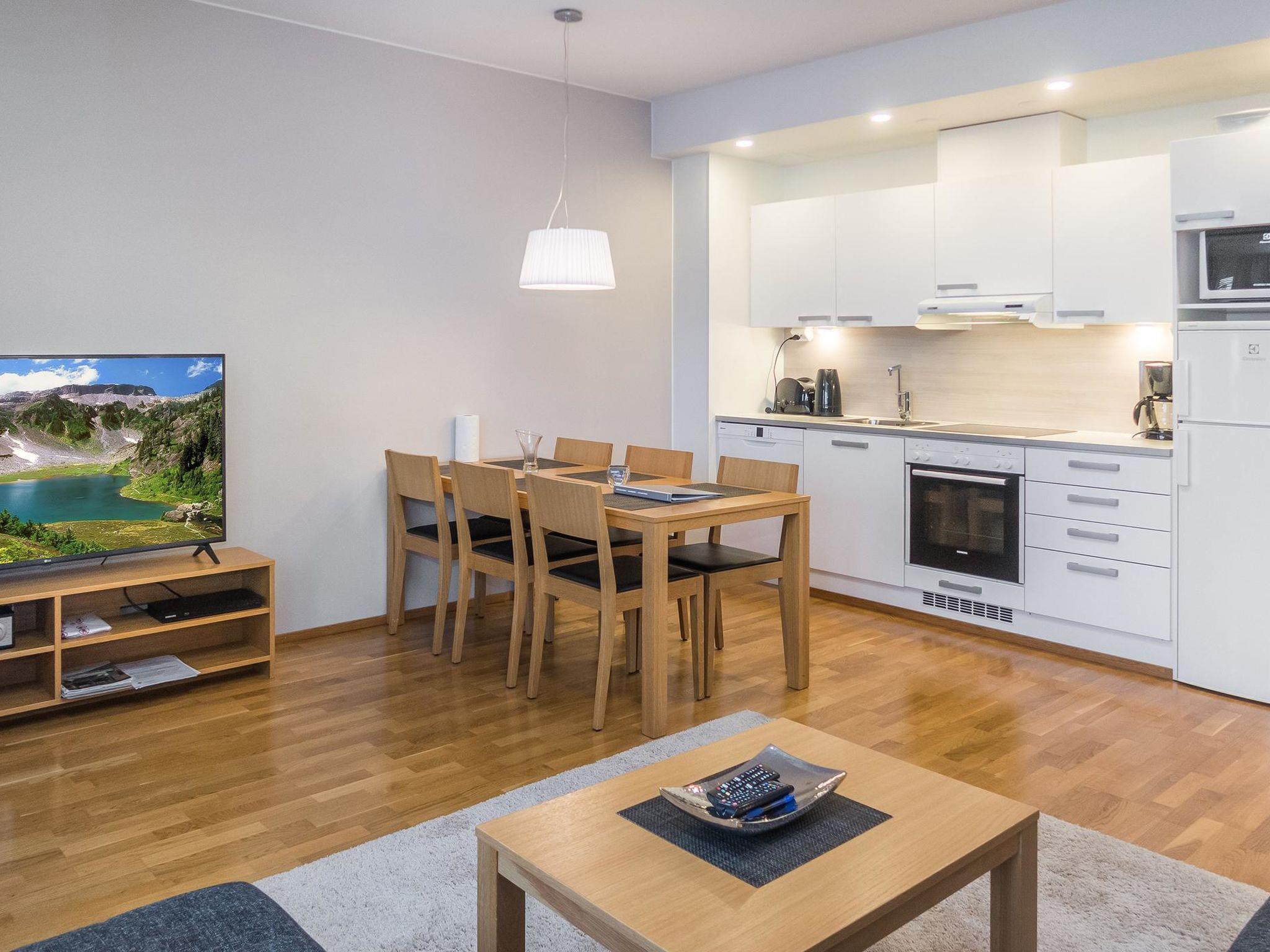 Cozy apartment for 6 people located in the middle of Ruka village. All services in the area are within walking distance. The apartment has two bedrooms, with 2 single beds in each. In addition, there is a spreadable sofa bed for two in the living room.