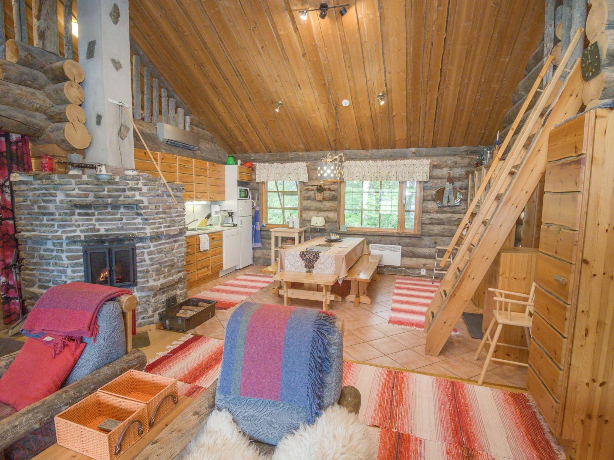 Atmospheric kelo-log cabin built in 2000, located in Ruka's Saarua-aho, a popular kelo-log cabin area.