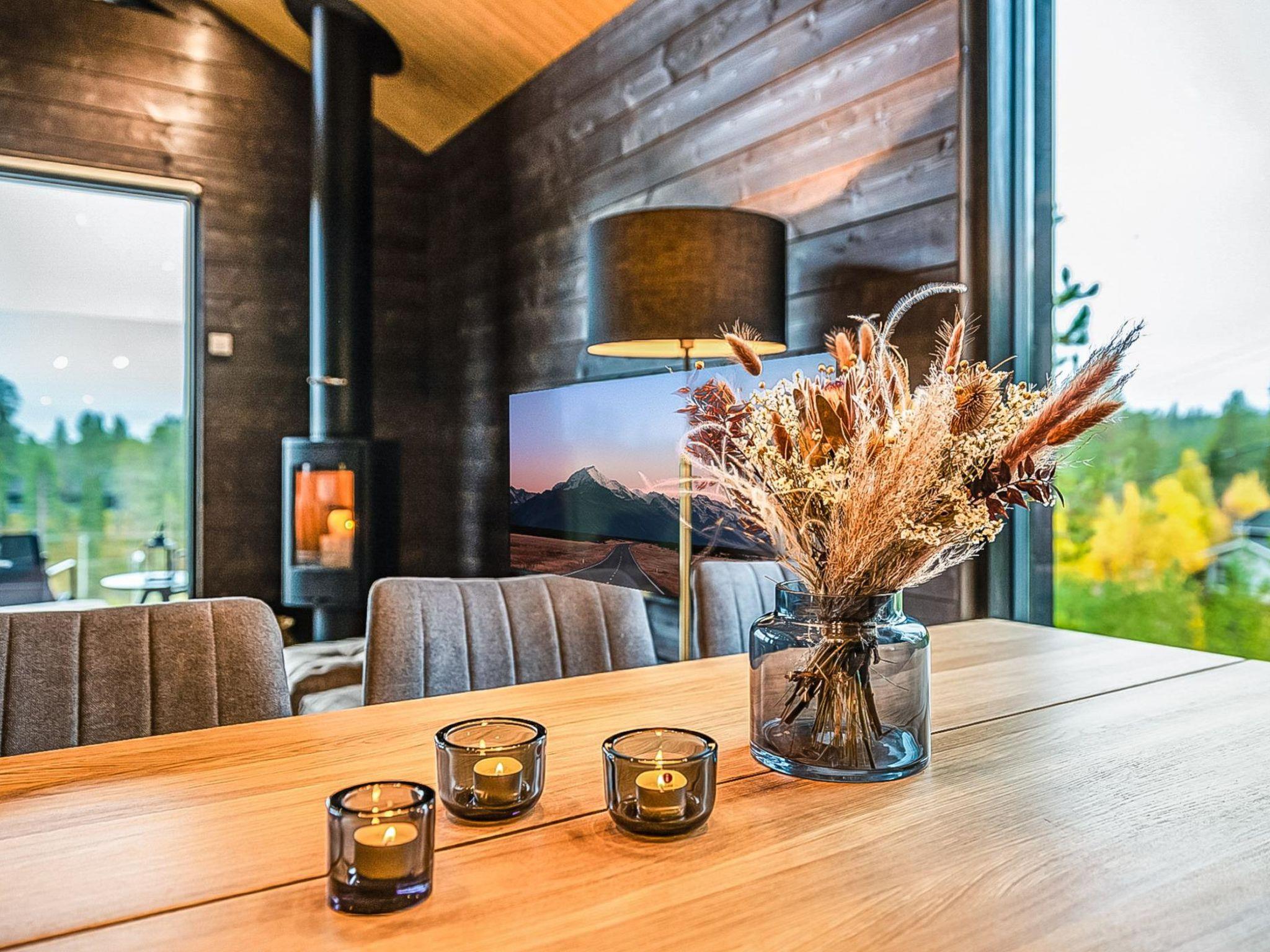 The cabin's spacious living room/kitchen provides an excellent setting for quality time with family and friends. Delight in delicious meals and relax in the comfortable living area. Moreover, the cabin features its own electric sauna, offering relaxation and rejuvenation after a long day.