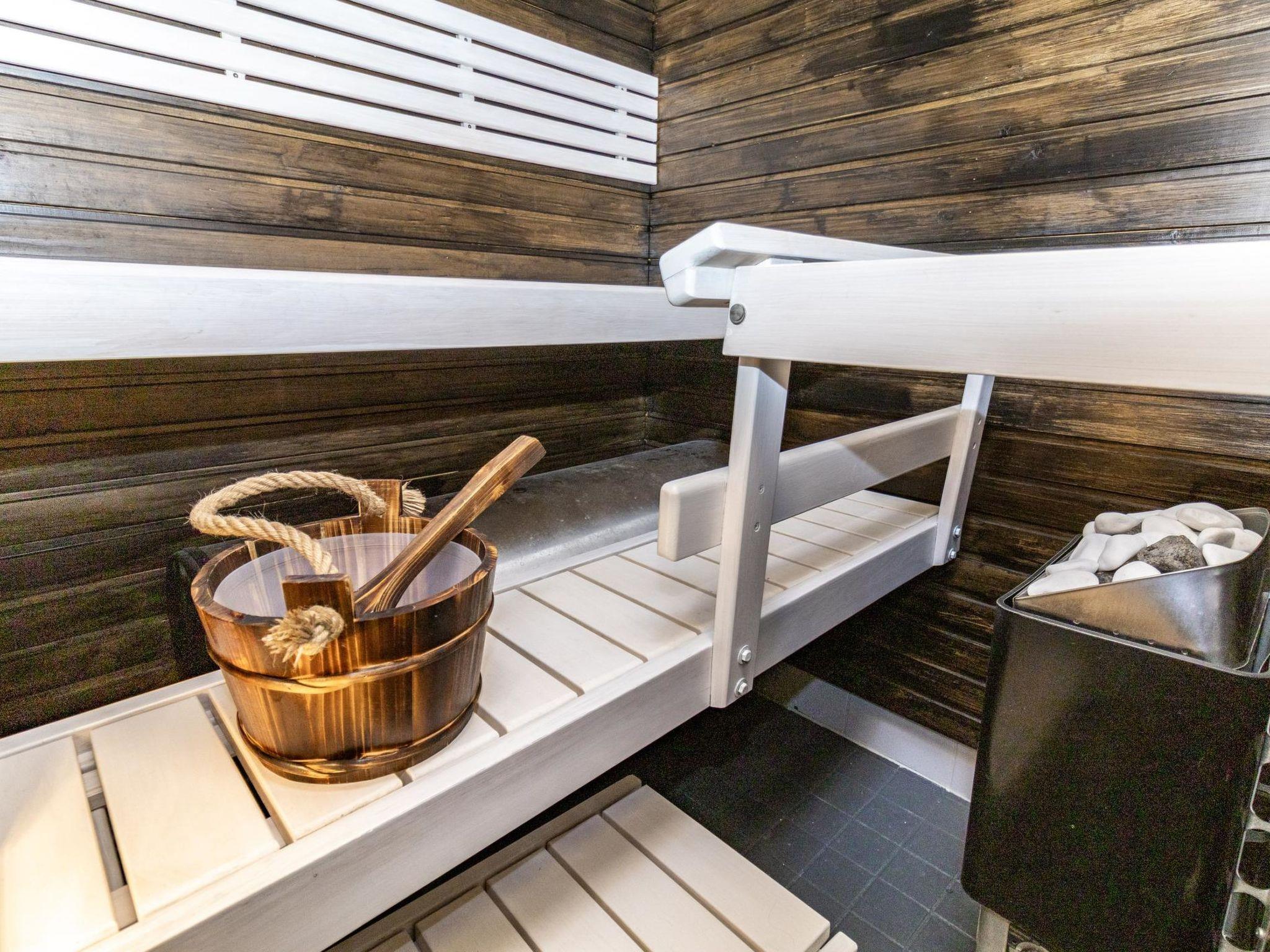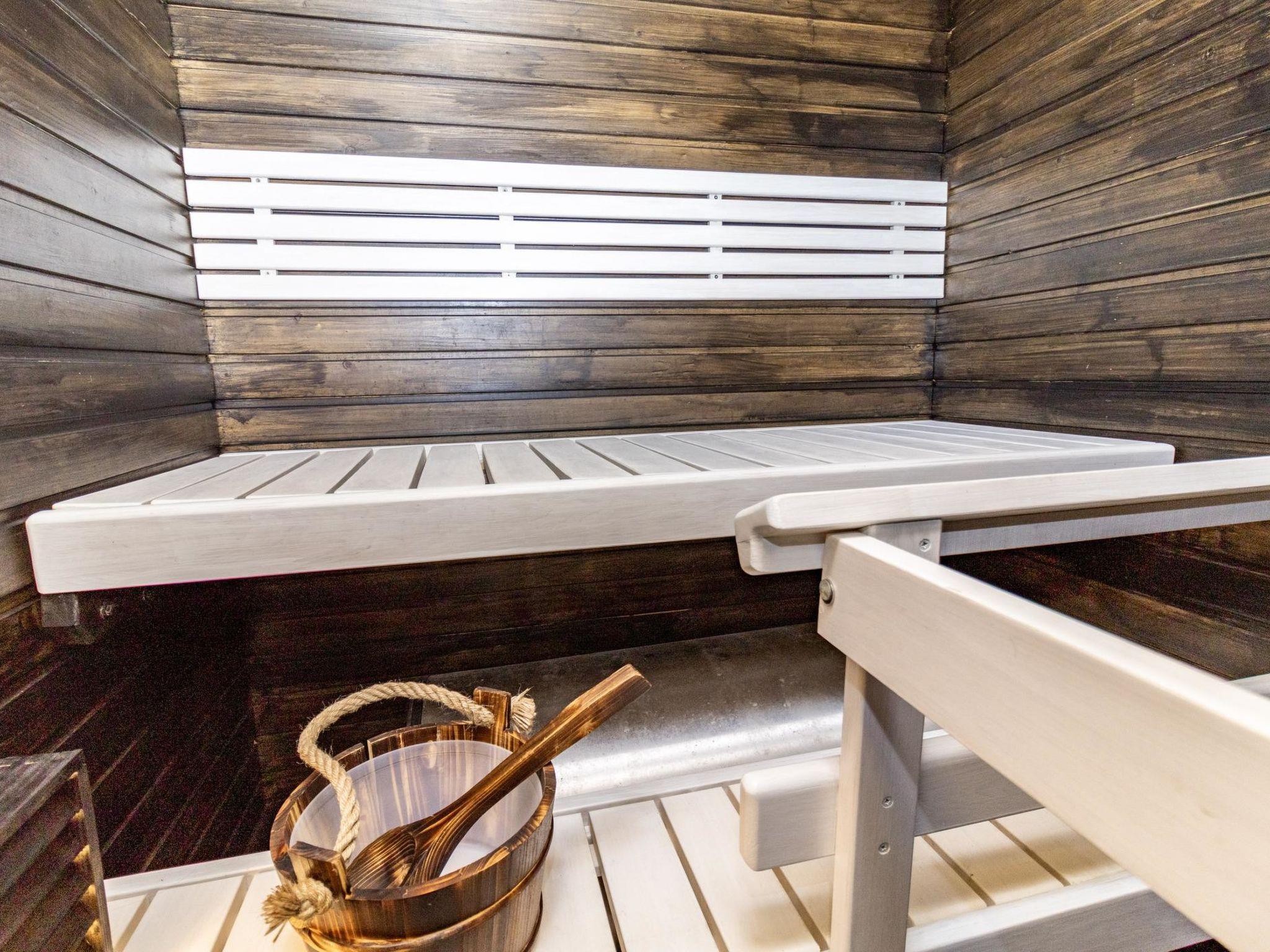 The apartment includes a well-equipped living room/kitchen and an electric sauna, complementing the holiday experience.