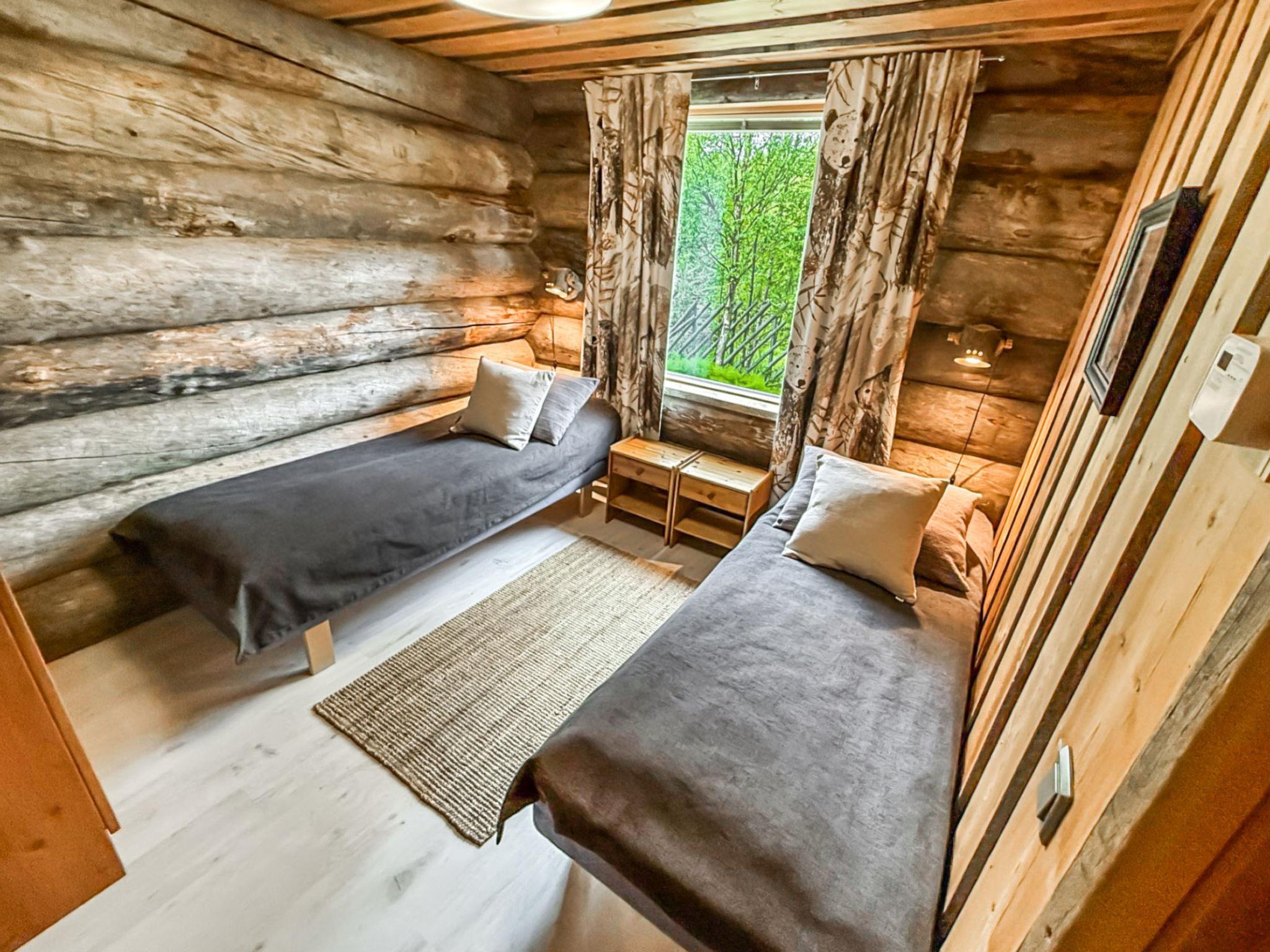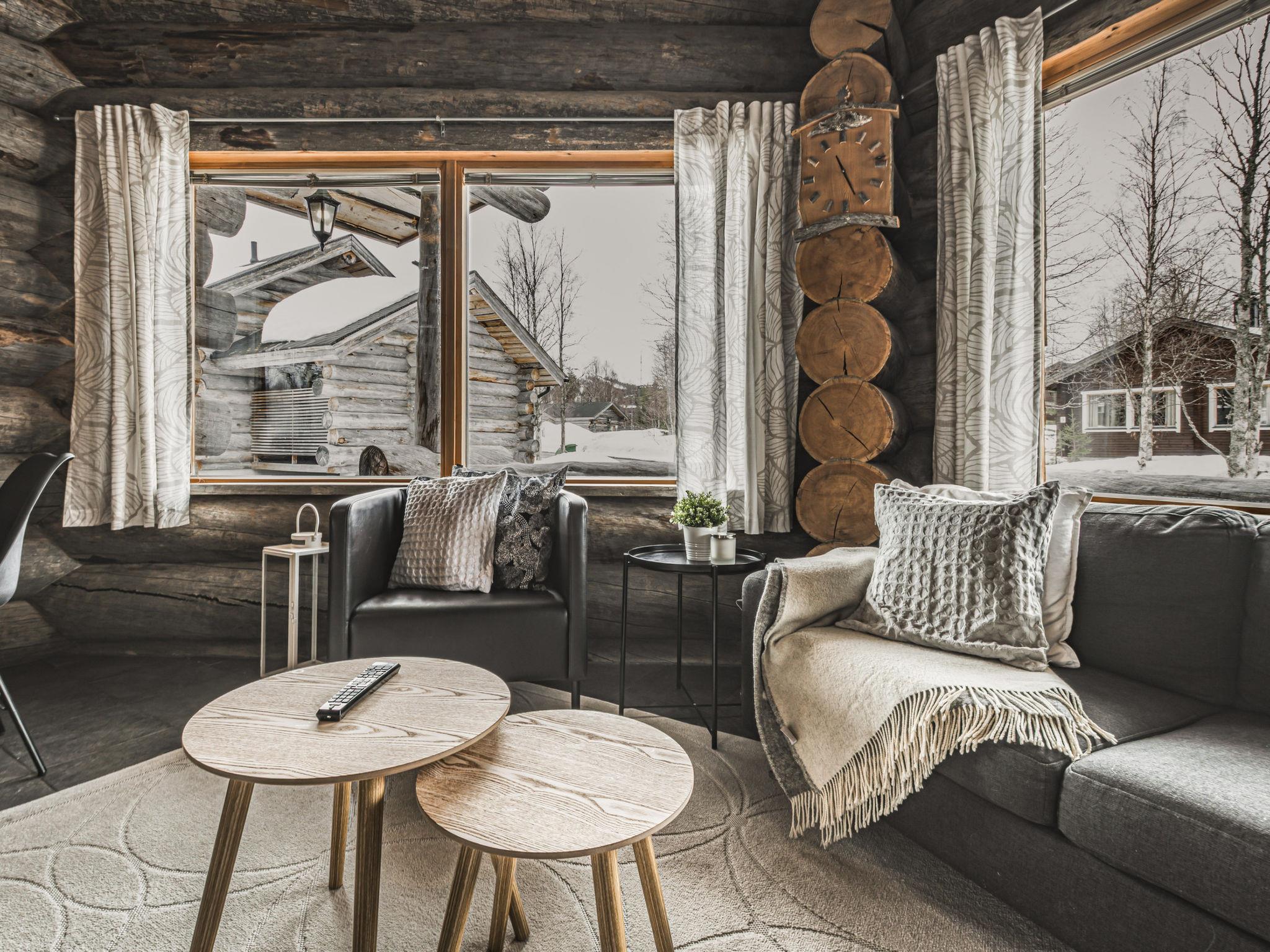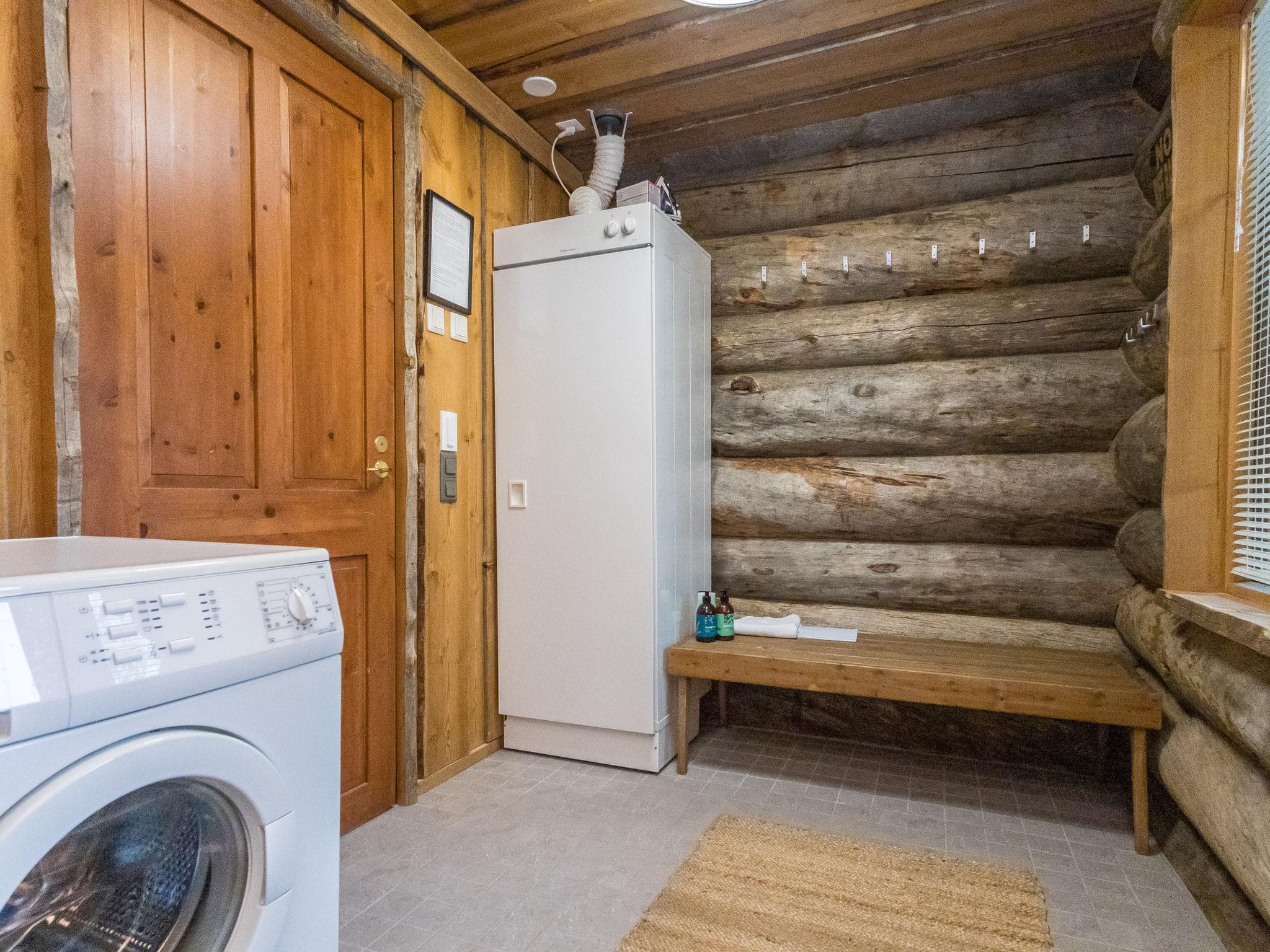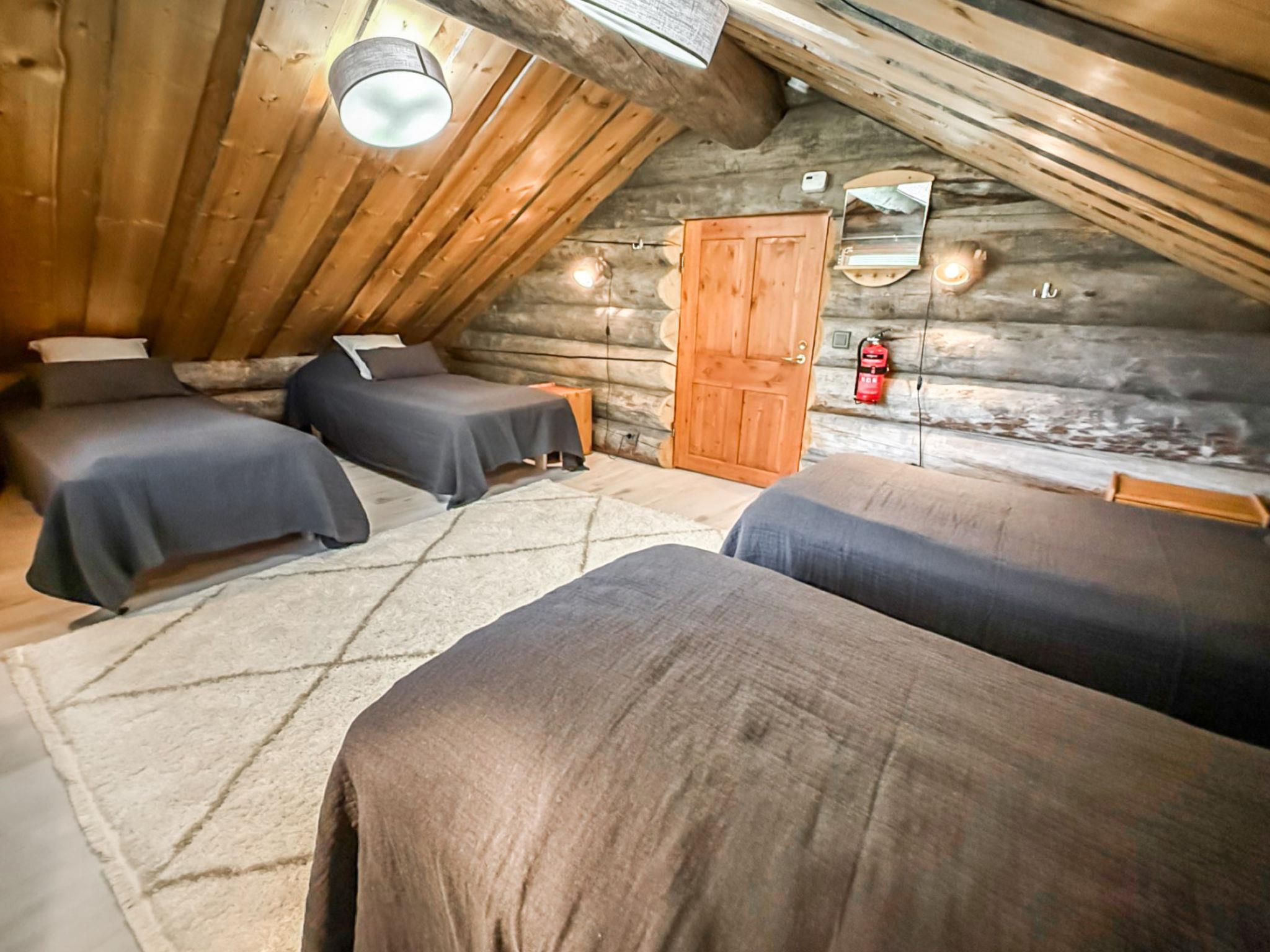 Cozy and spacious log cabin in Ruka. The property sleeps eight and was built in 2004. The property has three bedrooms, two of which are downstairs. One bedroom has a double bed 160cm, the other bedroom has two 80 cm wide beds. Downstairs there is a well-equipped kitchen and a cozy living area. Spacious washroom and sauna area. The cottage has two toilets, one of which is in the washroom and the other is separate. The washroom and sauna were renovated in 2024. Upstairs there is a bedroom as well as a small living area with a work station. The bedroom has four 80 cm wide beds.