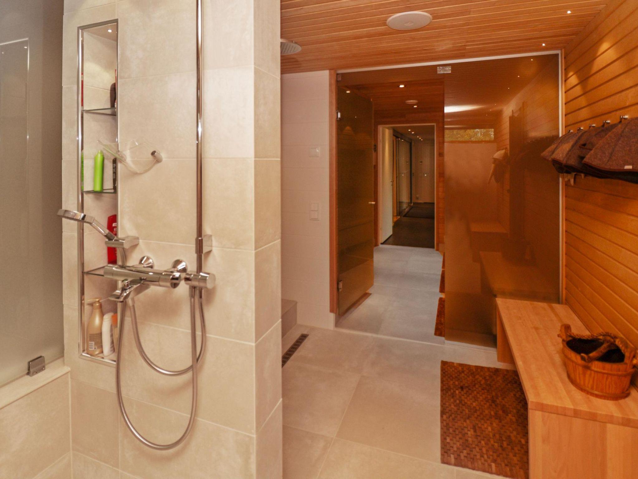 Apartment in a luxus semi-detached house in a fantastic location by the Lake Pyhäjärvi, built in 2014. Upstairs: Bedroom 1(master bedroom): double bed, toilet, shower/bathtub. Bedroom 2: two beds + sofa bed for 2, toilet, shower. Bedroom 3 (downstairs): double bed (can be converted into separate beds if necessary). Office room: sofa bed for two. Combined living room/kitchen, electric sauna. Totally 4 toilets and 4 showers.