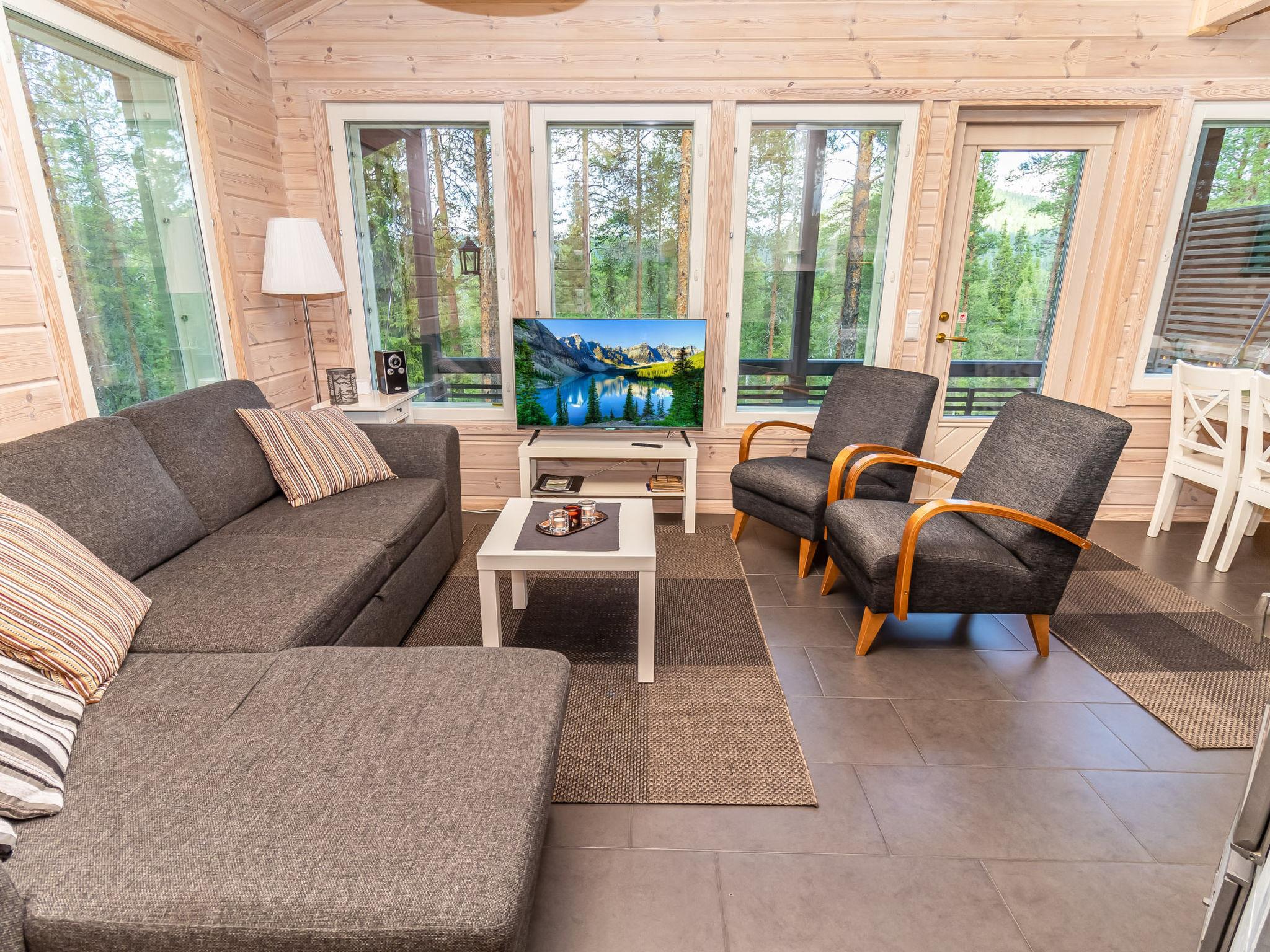 The cozy log semi-detached house, completed in 2015, is located north of Ruka in a peaceful and beautiful forest landscape.