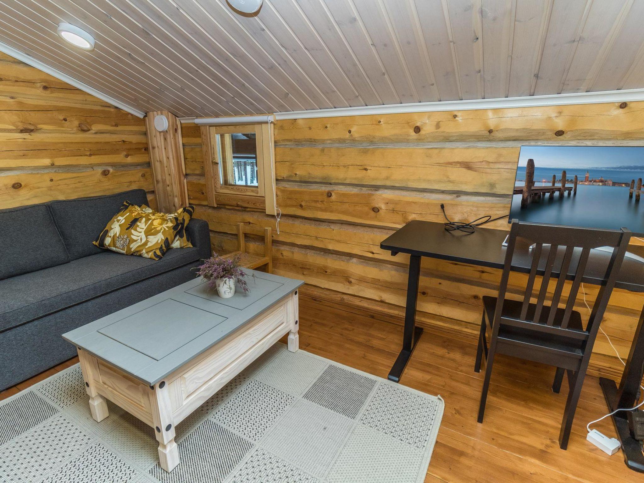 The spacious cabin features three bedrooms: two with comfortable double beds and one with two separate beds. Living room/kitchen creates a cozy space for gathering, while the electric sauna provides relaxing moments at the end of the day.
