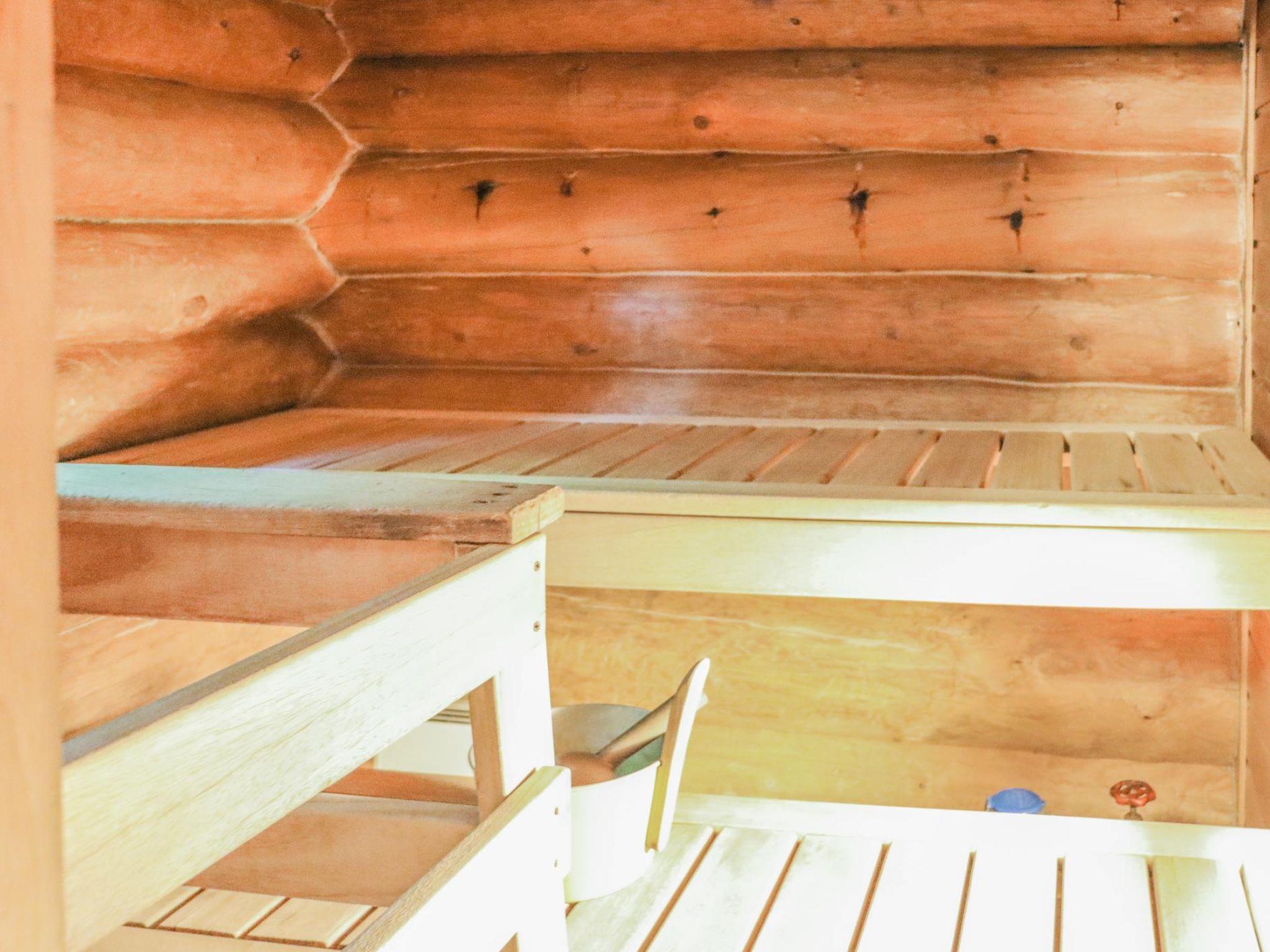 Log cottage, built in 1990, bedroom with double bed (width 140 cm), 2 alcoves with curtains: one with two beds and the other with double bed (width 180 cm), living room: convertible bed, combined kitchen/living room, electric sauna.