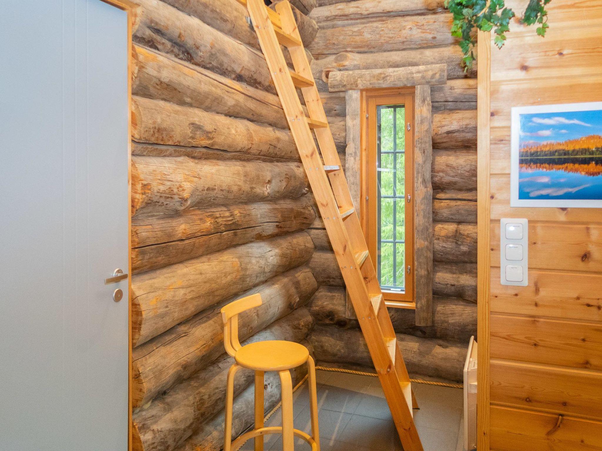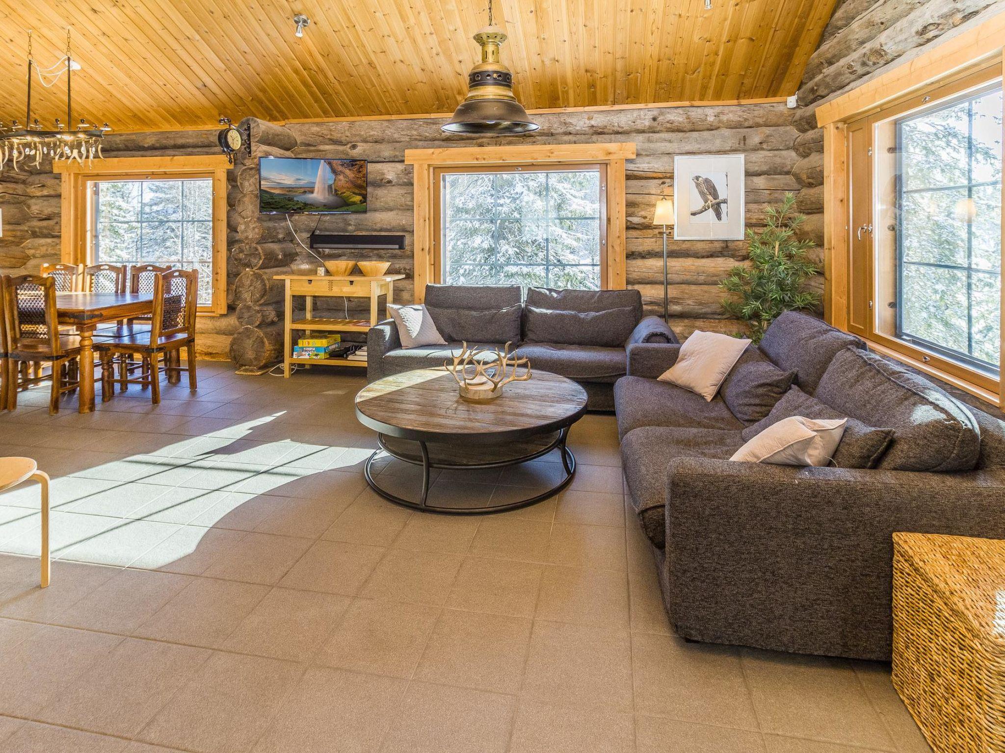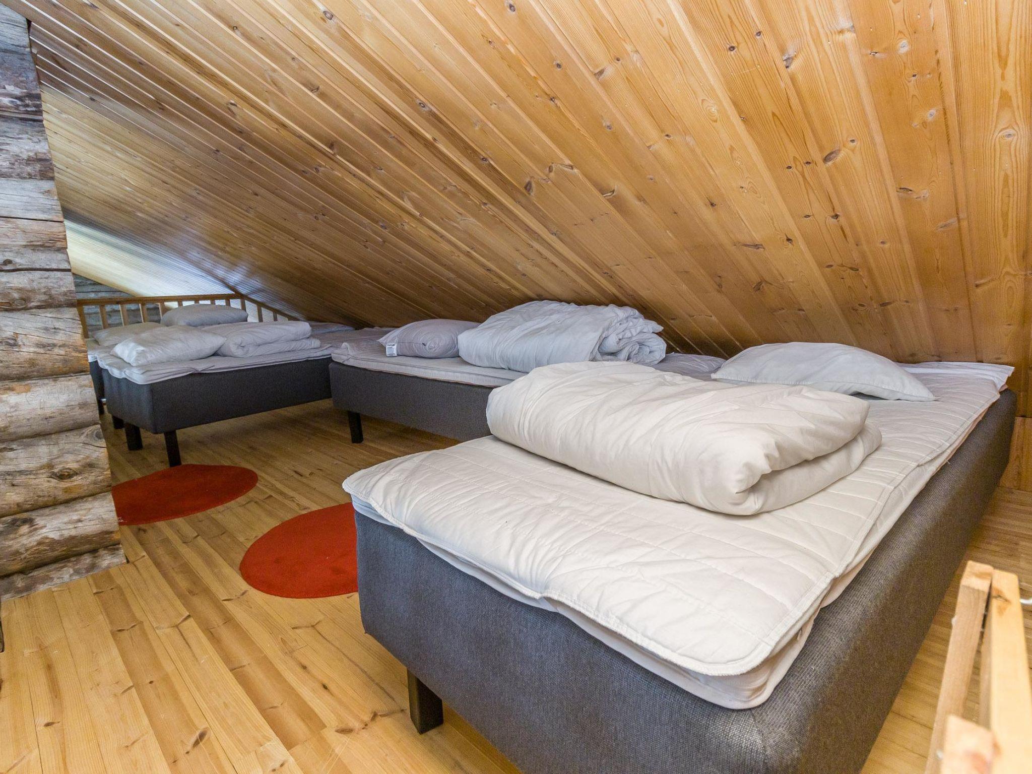 From Kuusamo 20 km to north, Ruka 8 km, Lake Ihtinkijärvi 25 m. Built in year 2009, Kelo-log cottage. Area of a room 194 m² of which a loft 14 m². 2 bedrooms, both with a with double bed. One bedroom with two beds. Loft (14 m²): futon mattress for 2 persons and 2 mattresses. Combined kitchen/living room. Television room and electric sauna downstairs.