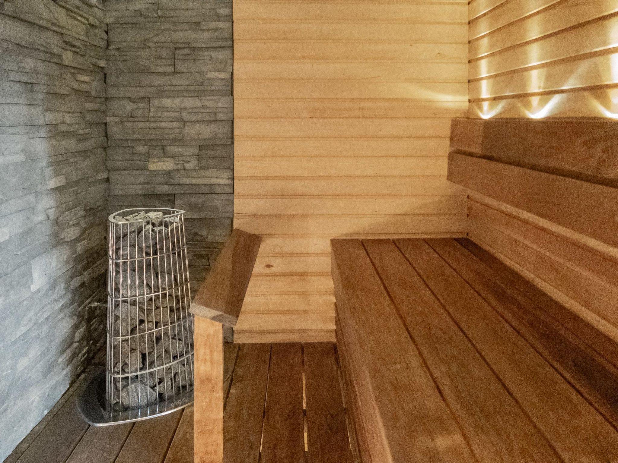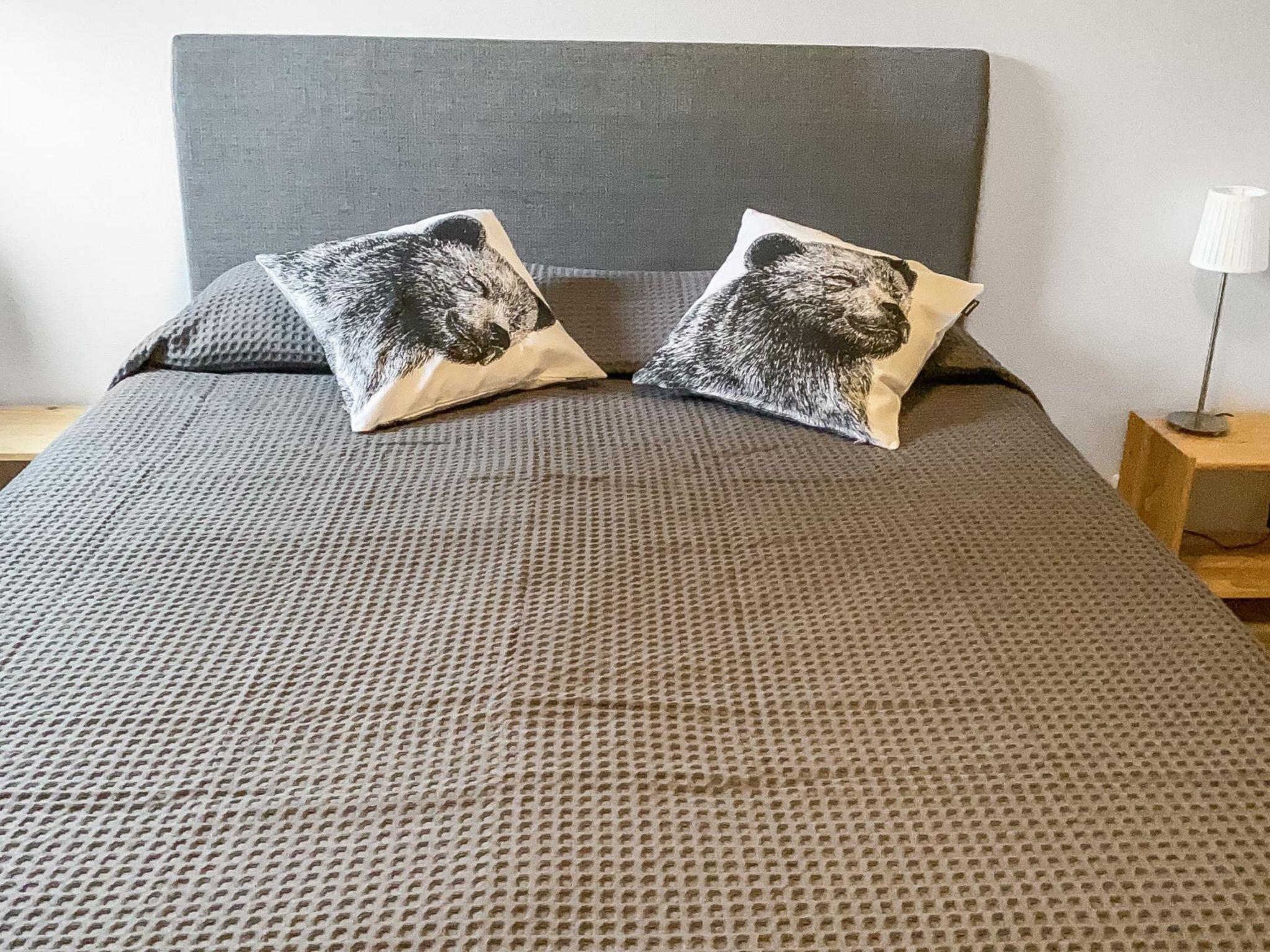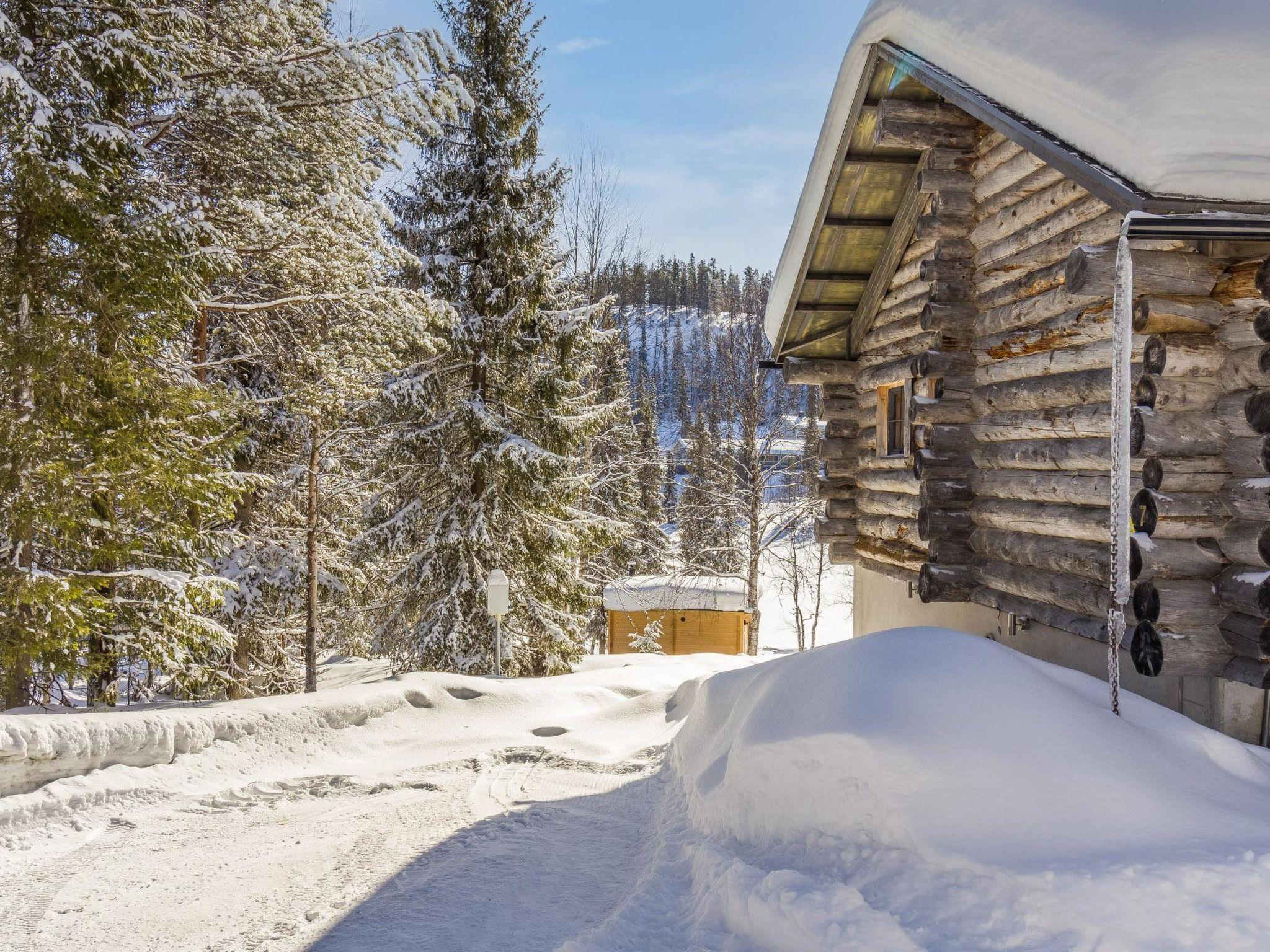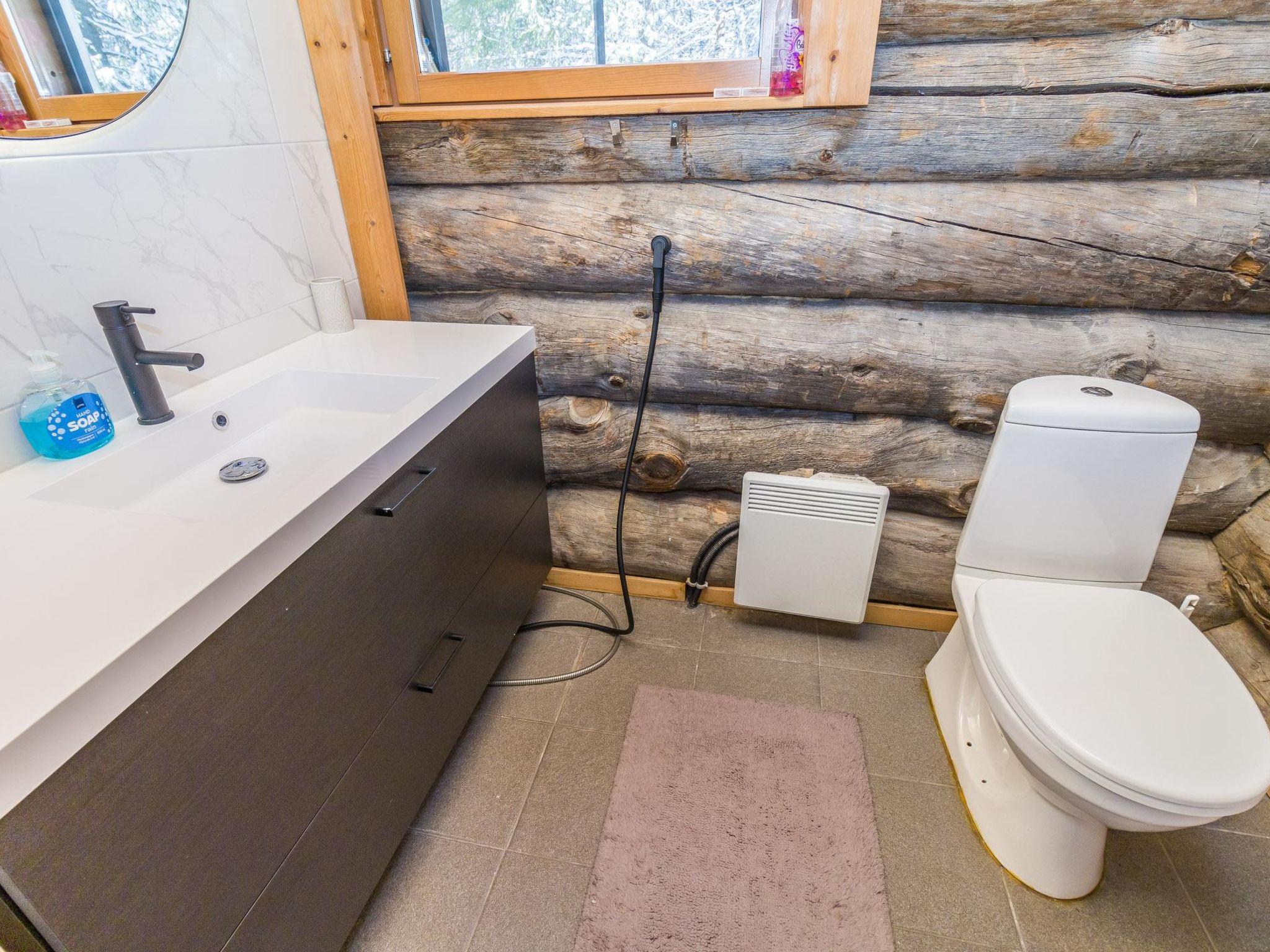 From Kuusamo 20 km to north, Ruka 8 km, Lake Ihtinkijärvi 25 m. Built in year 2009, Kelo-log cottage. Area of a room 194 m² of which a loft 14 m². 2 bedrooms, both with a with double bed. One bedroom with two beds. Loft (14 m²): futon mattress for 2 persons and 2 mattresses. Combined kitchen/living room. Television room and electric sauna downstairs.