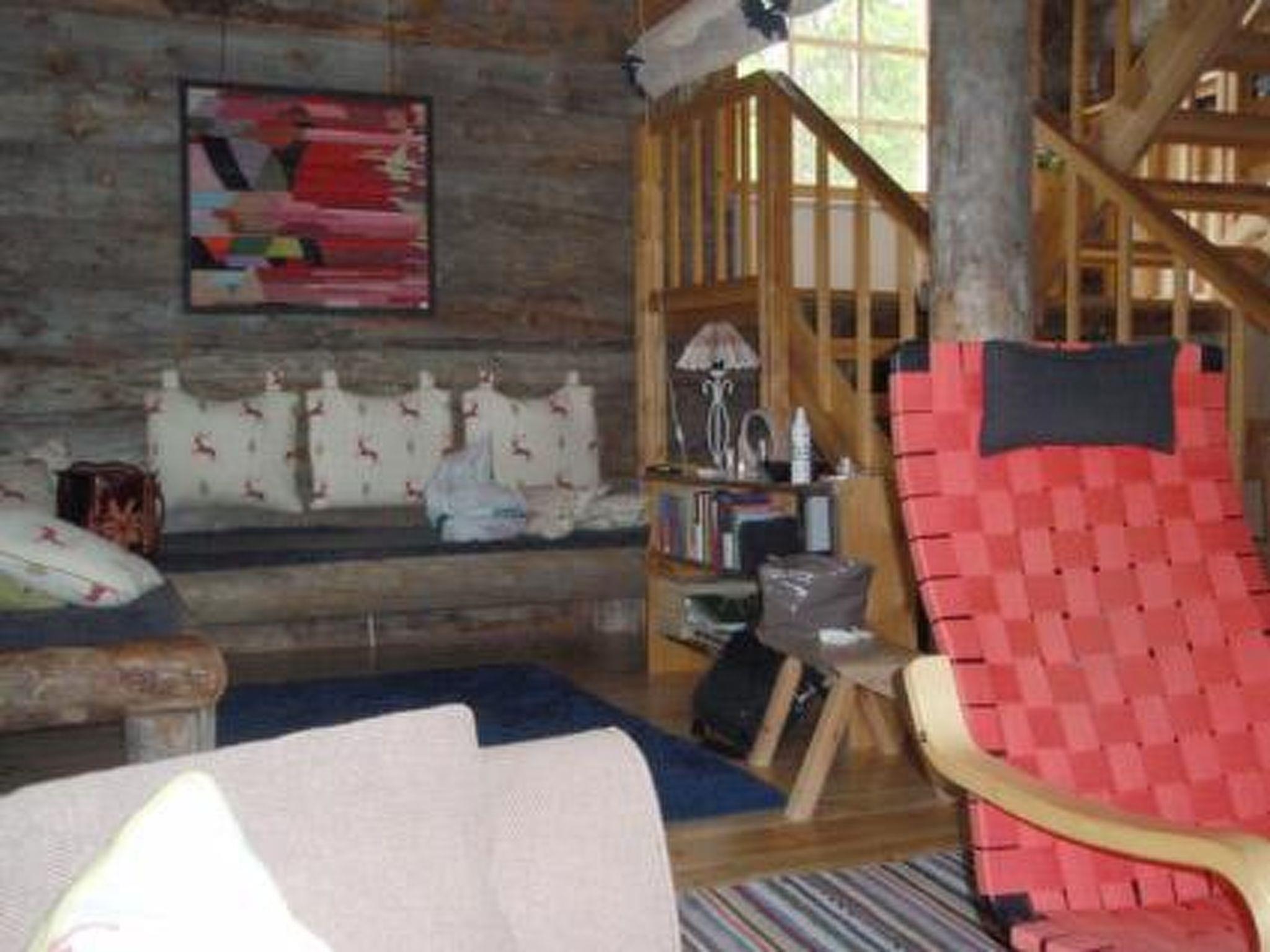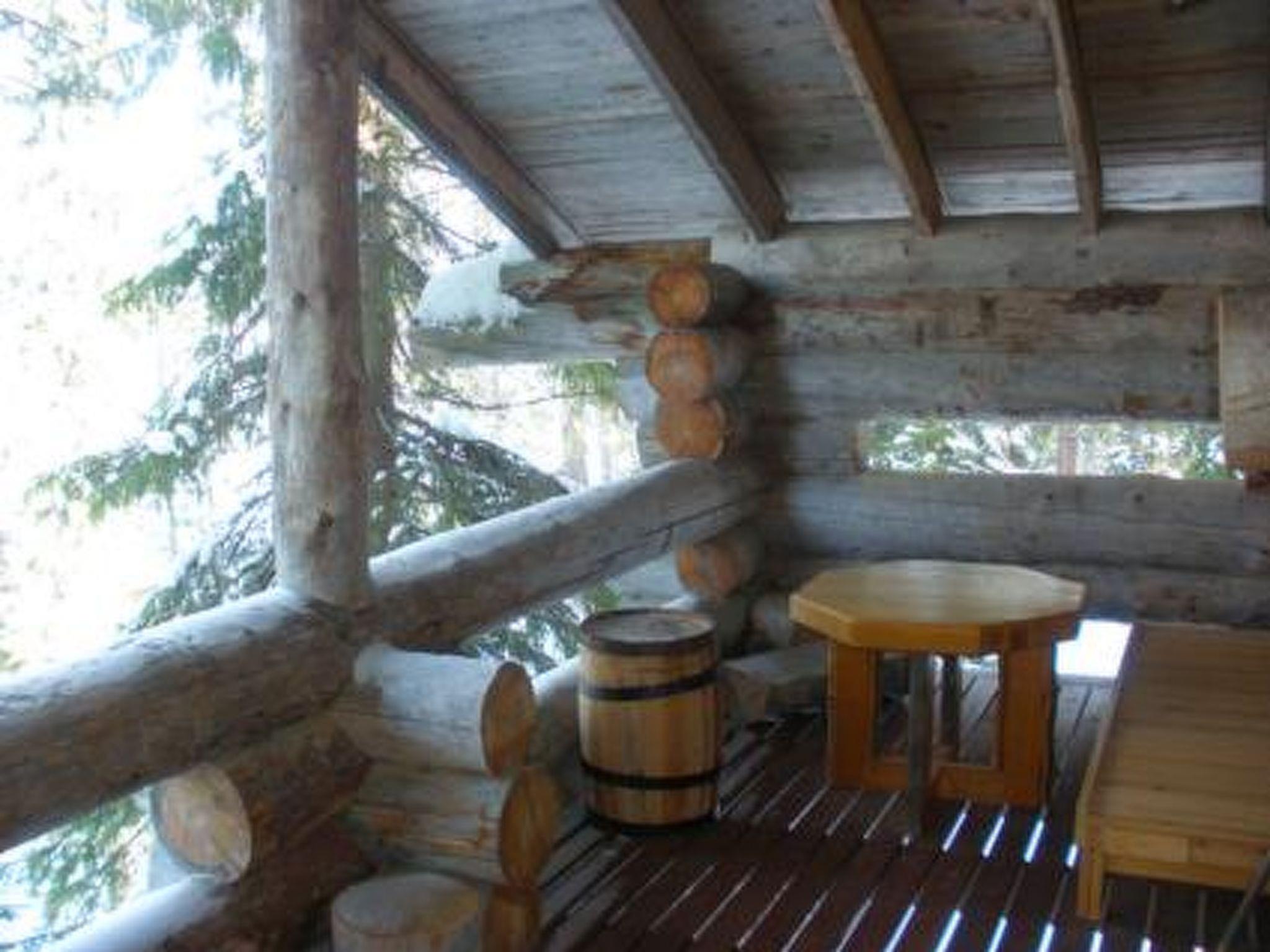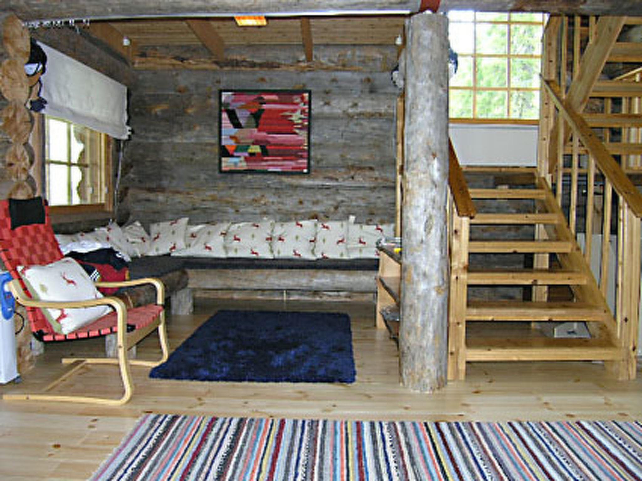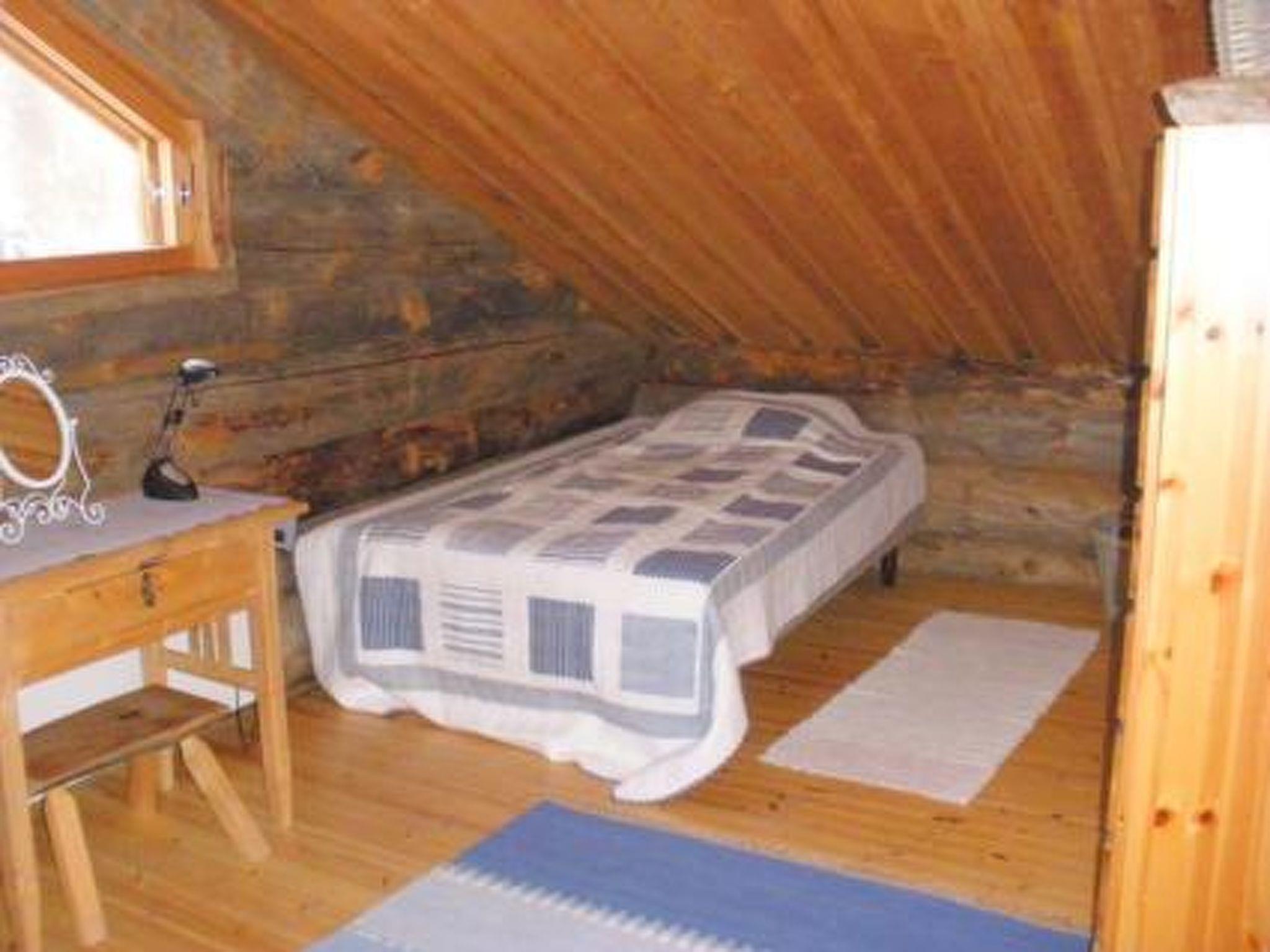 25 km south of Kuusamo, Lake Iijärvi 25 m (length 17 km, width 2 km), shallow, hard sand bottom, own boat. Two-storey silver log chalet 1988, renovated 2007, living room/kitchen 1 extra bed, washroom, wood-heated sauna, open porch. Upstairs bedroom with double bed (width 160 cm) and one bed (width 120 cm), sleeping loft with double bed (width 140 cm), balcony.