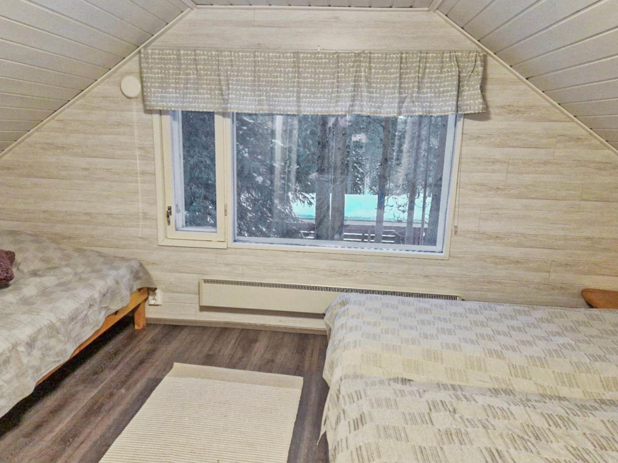 A log cottage situated in the middle of the forest on flat terrain. Downstairs 59 m², upstairs 30 m². Two-storey log cottage, built in 1999, renovated in 2022. Ground floor: bedroom: double bed, combined kitchen/living room, washroom/toilet and electric sauna. Upstairs: bedroom with 3 beds, upstairs lobby with 2 beds. There is also a toilet upstairs.