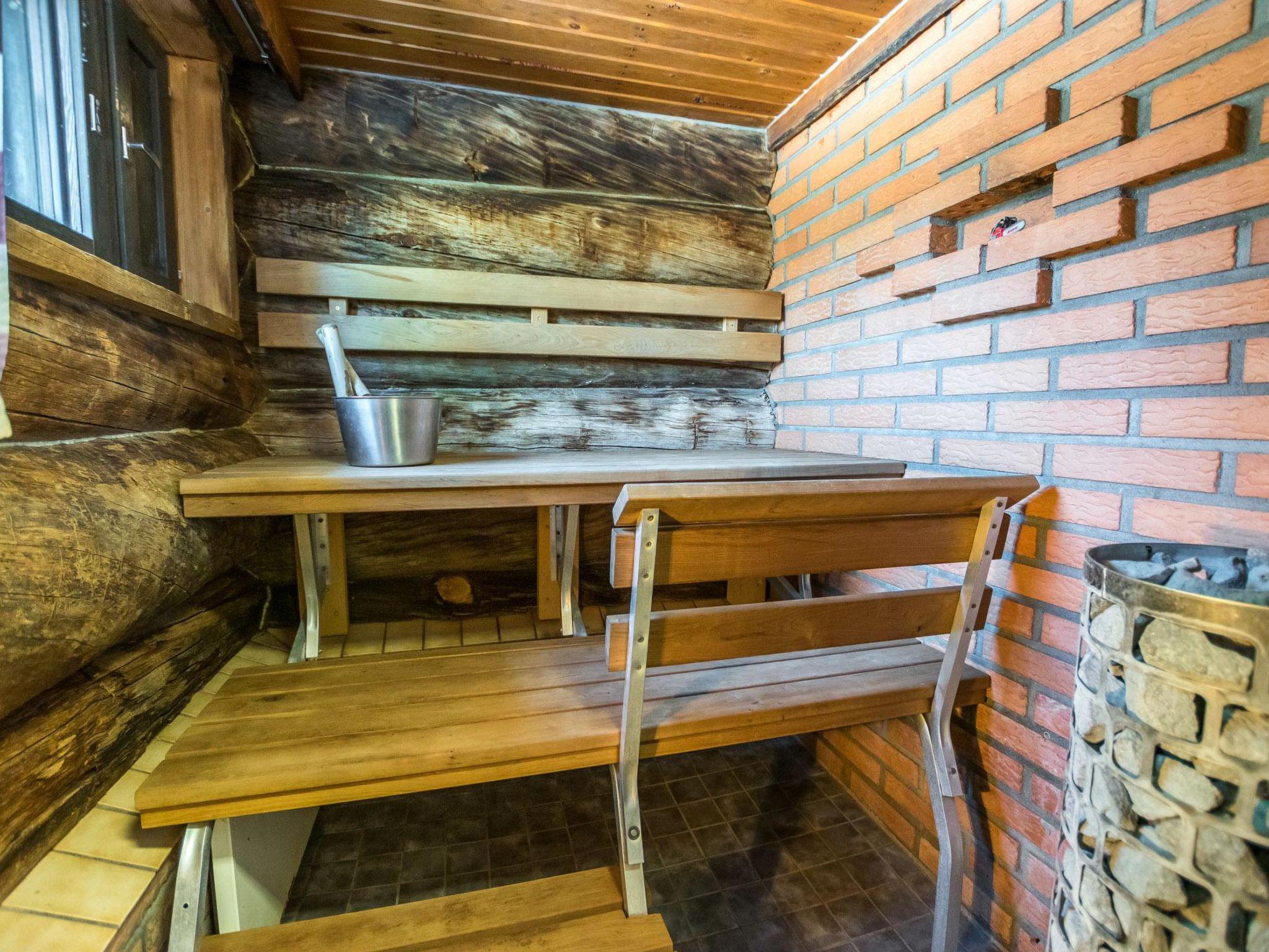 Log cottage, built in 1988. 2 bedrooms: one with double bed, another with 2 beds. Loft: 1 bed + 6 mattresses, combined kitchen/living room, electric sauna. Downstairs 96 m², loft 35 m².