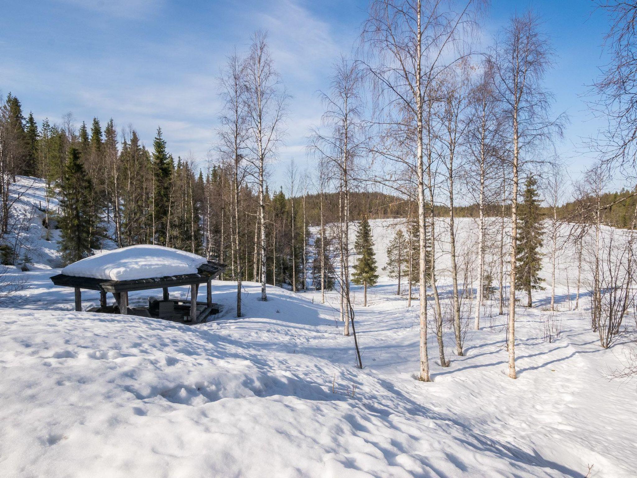 20 km north of Kuusamo, Ruka 7 km, Mustalampi pond 50 m, shallow sandy bottom beach, pier. Length of the beach is about 60 m and it's in shared use with 3 other cottages. Rowing boat, 2 canoes and pedal boat in shared use.