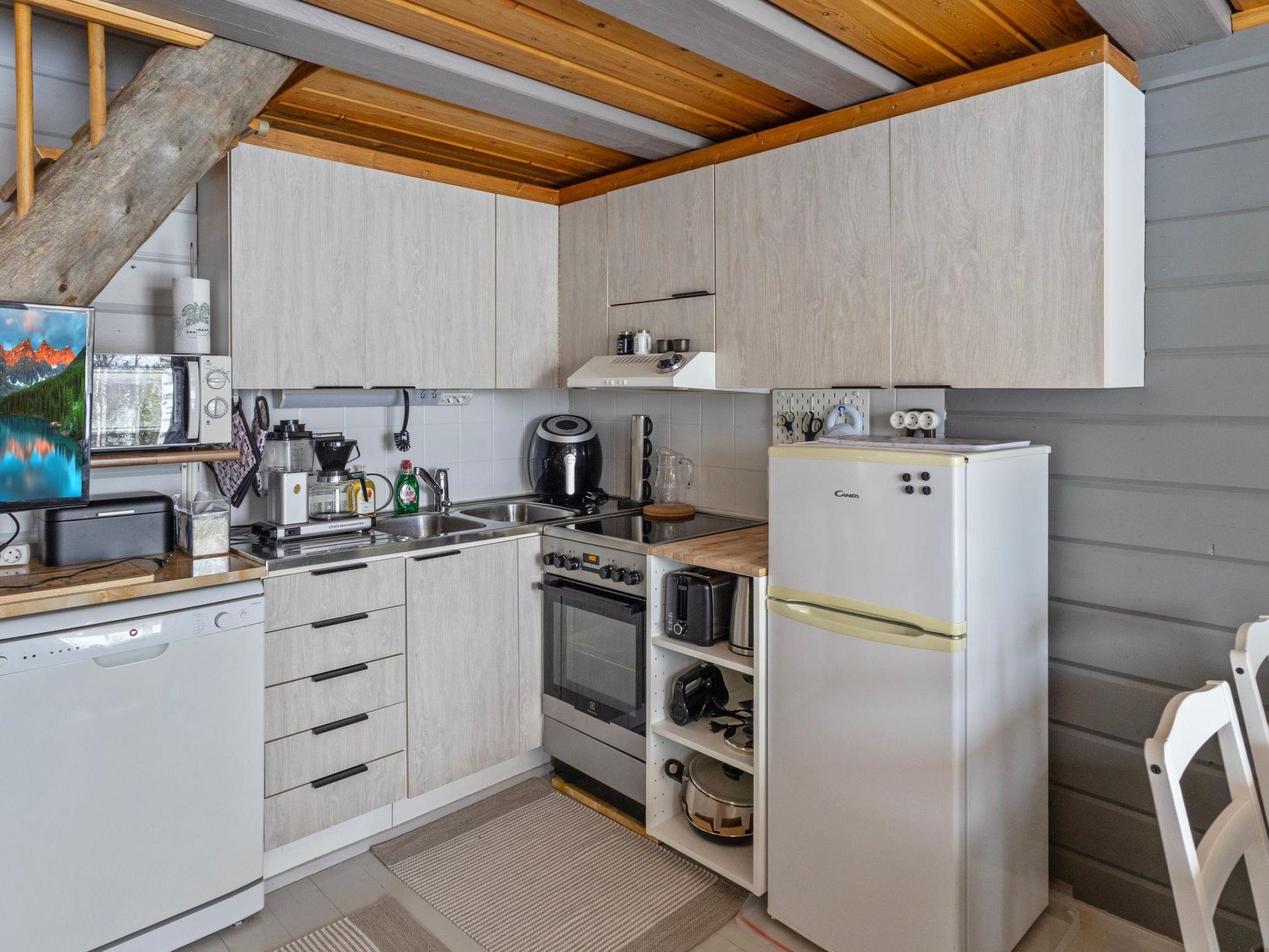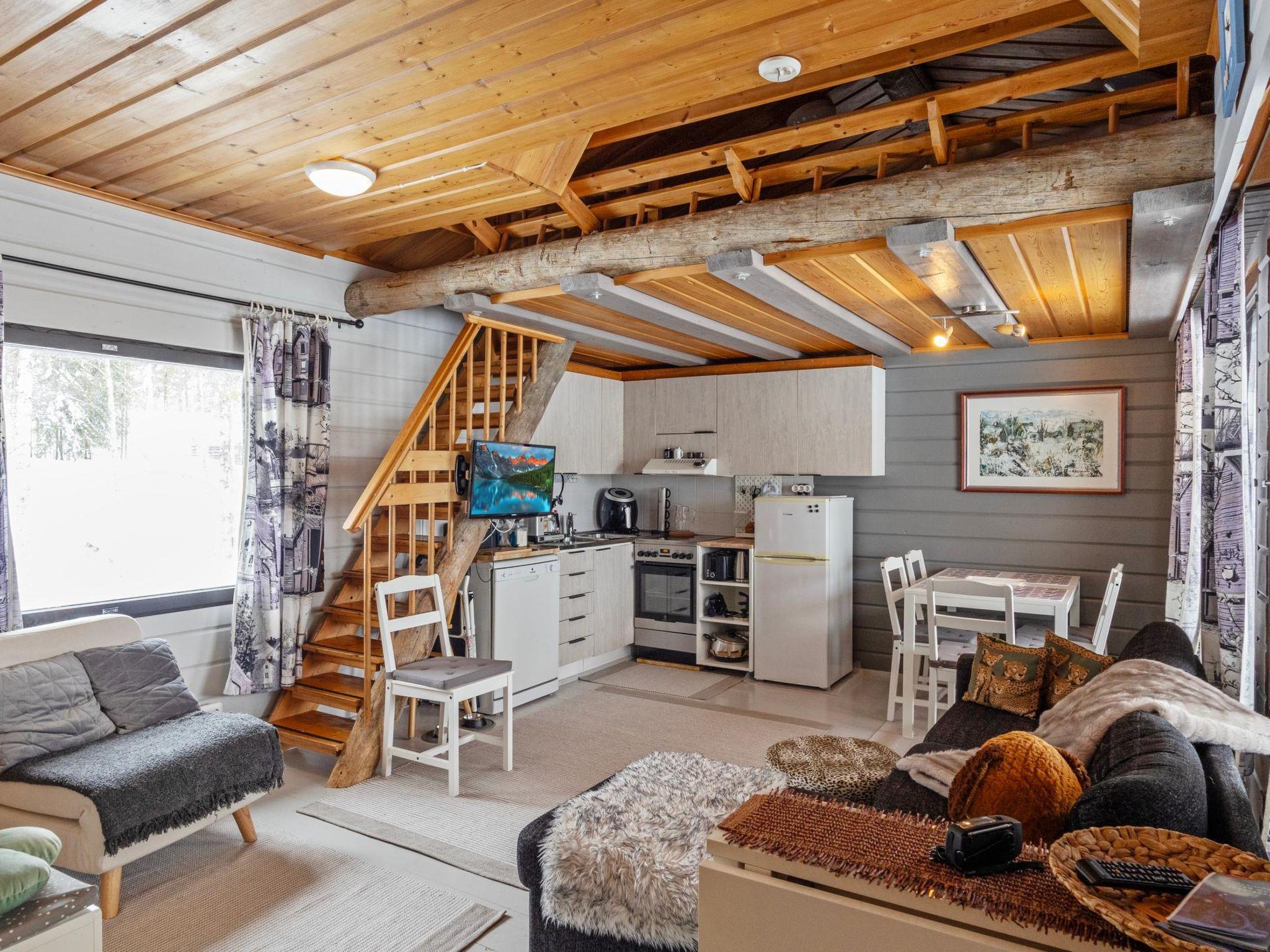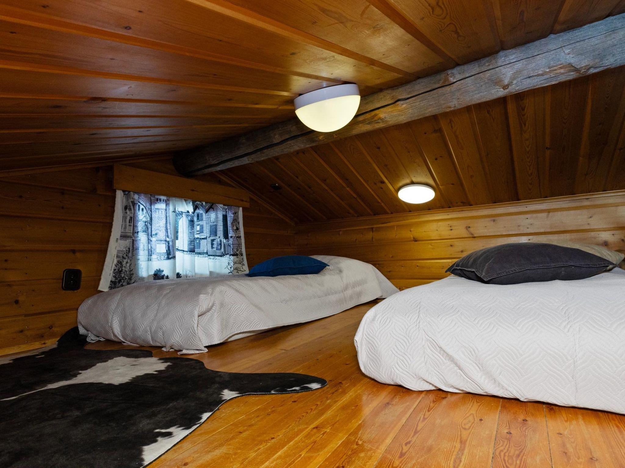 Log-panelled cottage, built in 1988, bedroom: double bed and extra bed, living room: convertible bed, sleeping loft (10 m², low room height): 3 mattresses, combined kitchen/living room, electric sauna. The fireplace shown in the picture will be replaced with a lightweight fireplace in early February 2025.