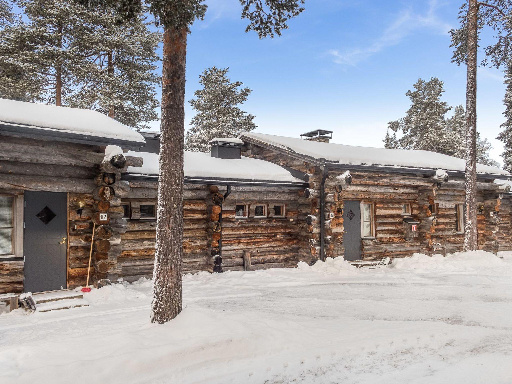 27 km north of Kuusamo, Ruka village (Western Ruka) 3.5 km, Salmilampi pond 500 m. Log-built apartment, built in 1989, bedroom: double bed (width 140 cm), loft (13 m², low room height): double bed and 2 mattresses + baby cot. Kitchen. Electric sauna. Apartment can be rented for maximum 4 adults; additionally 2 children are possible.