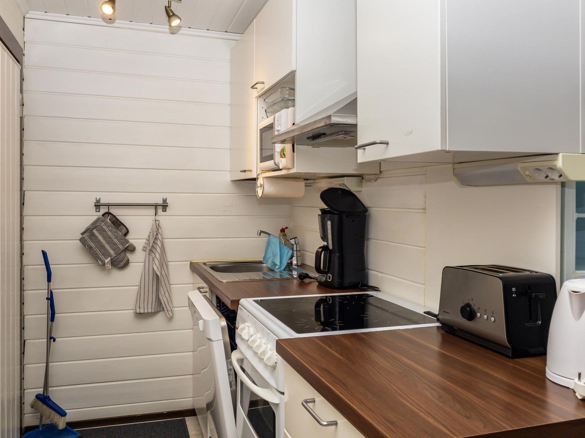25 km north of Kuusamo, Ruka 8 km, Lake Kuontijärvi 350 m. Log-built apartment in semi-detached house, built in 1991, bedroom 1: double bed, bedroom 2: bunk bed (lower bed 120 cm), living room: convertible sofa (for two), loft (8 m²): 2 matresses. Combined kitchen/living room. Electric sauna.