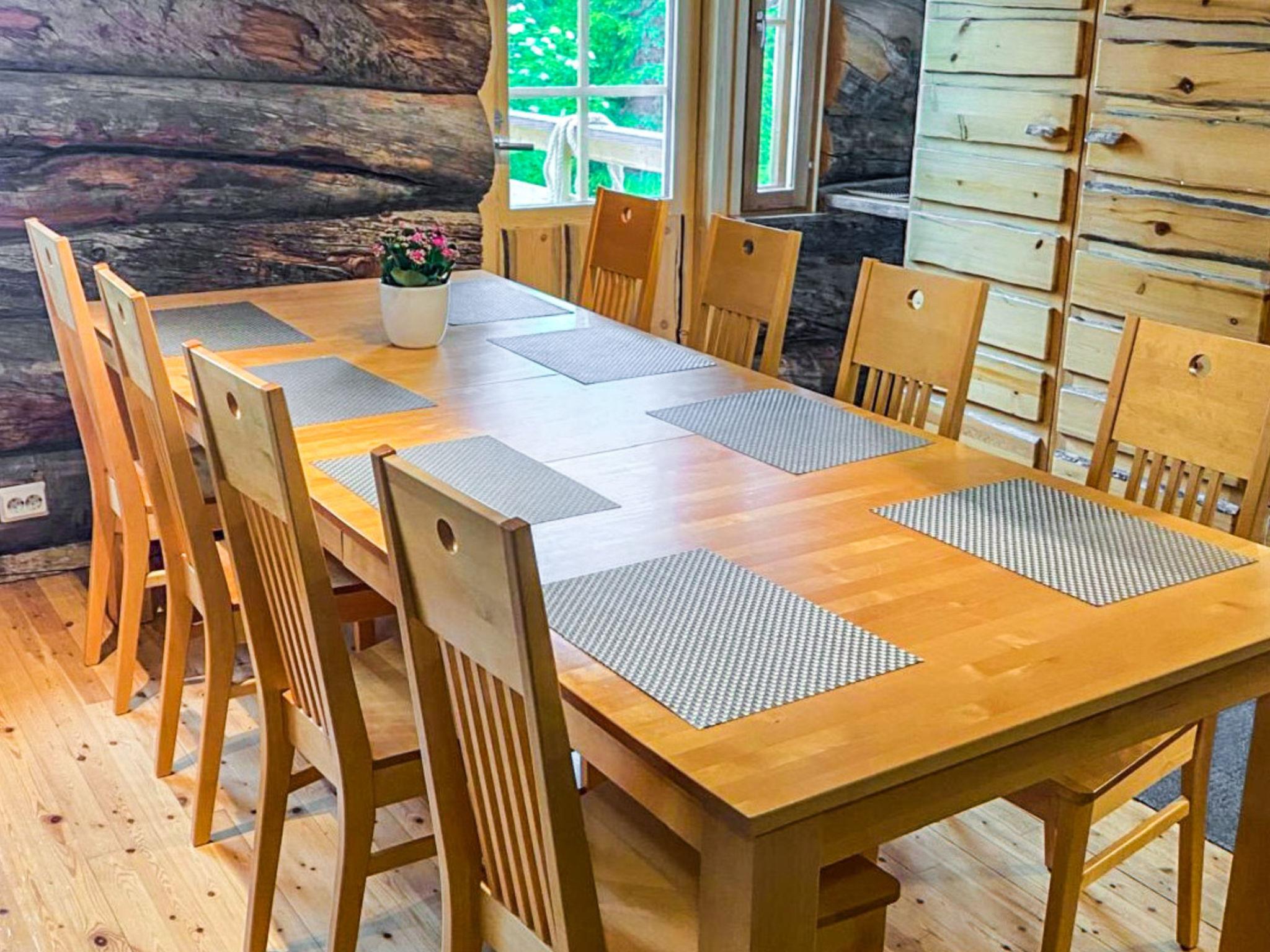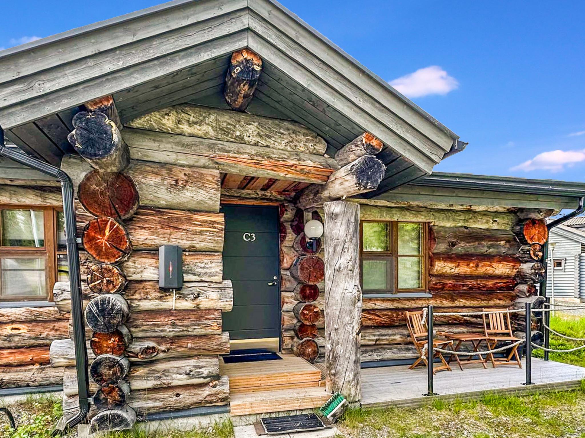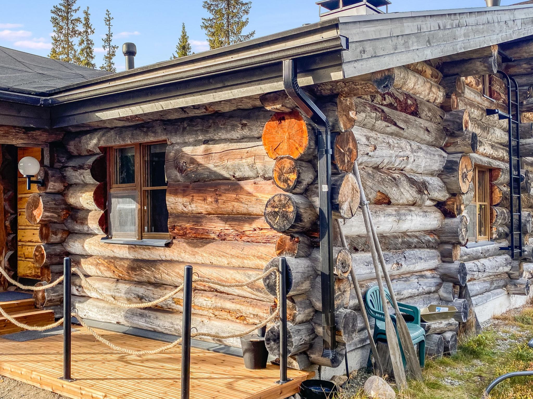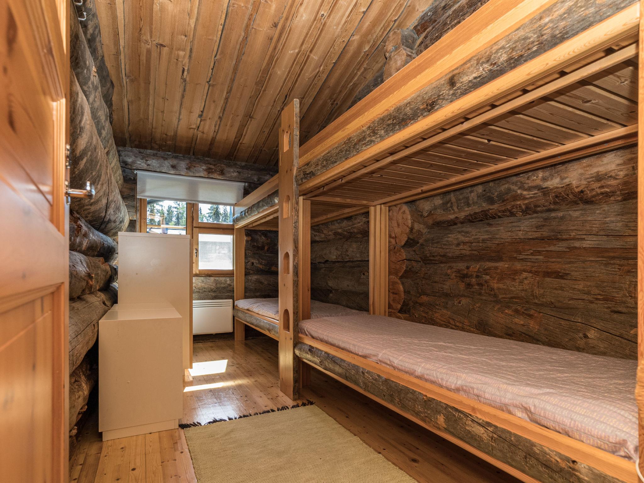 25 km north of Kuusamo, Ruka village 3 km. Apartment in log-built row house, built in 1989, Lake Kesäjärvi 50 m, rowing boat. Bedroom 1: double bed, bedrooms 2-3: both with 2 bunk beds, low loft (10 m²): 2 beds. Combined kitchen/living room, electric sauna. Stairs to loft are very steep.
