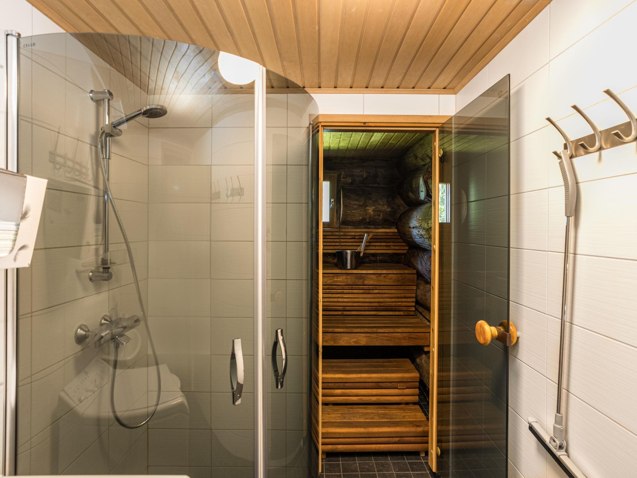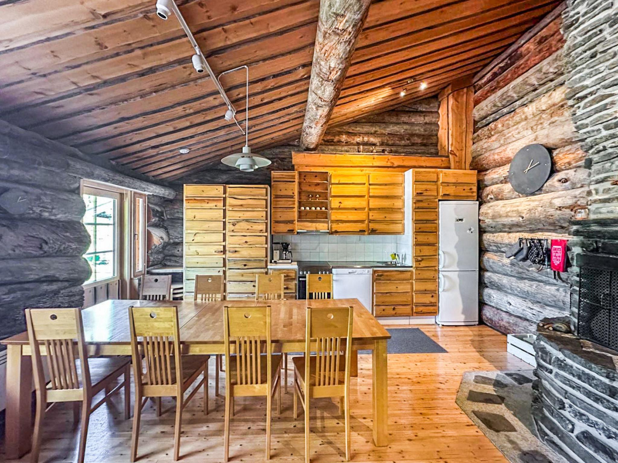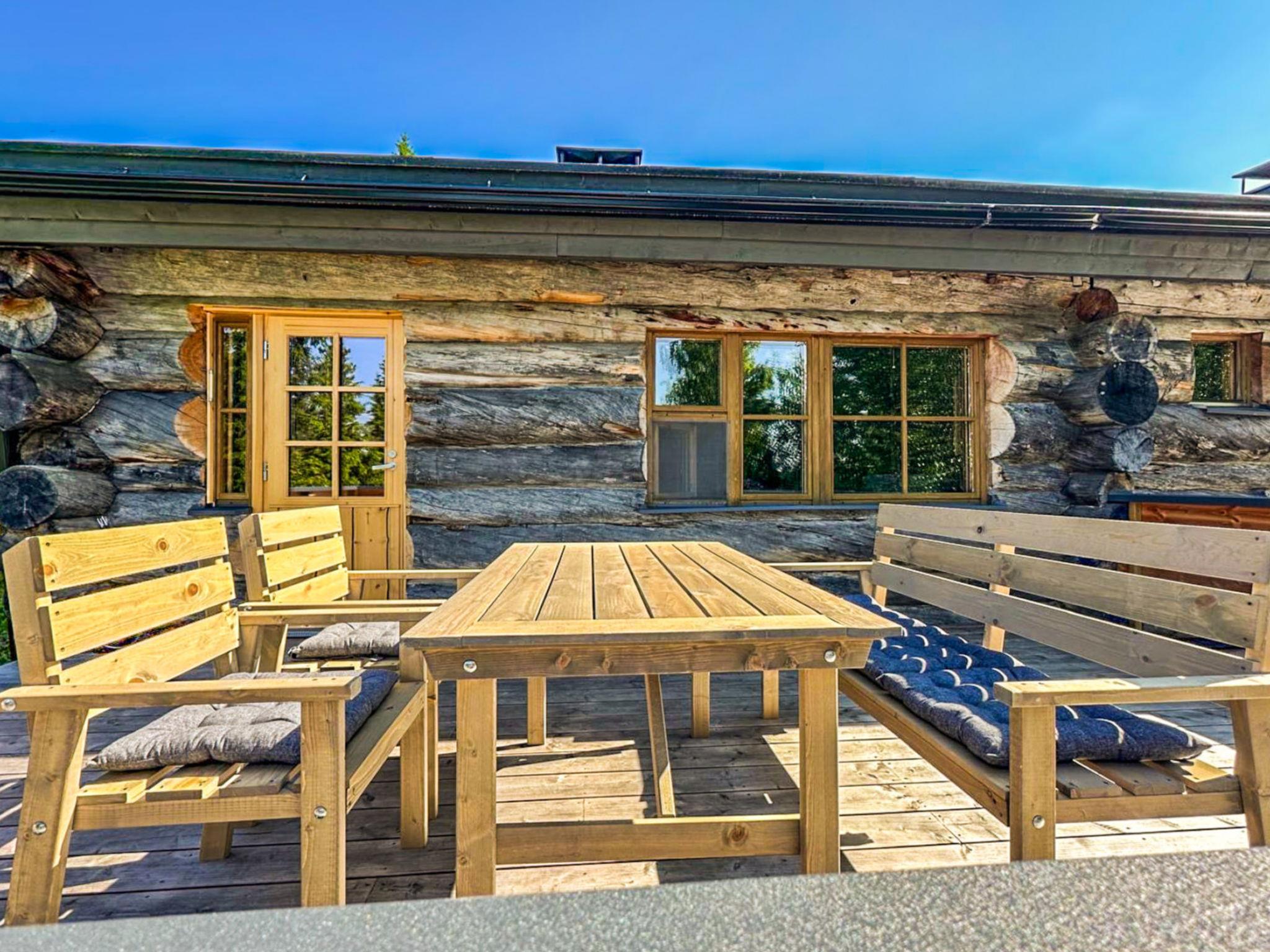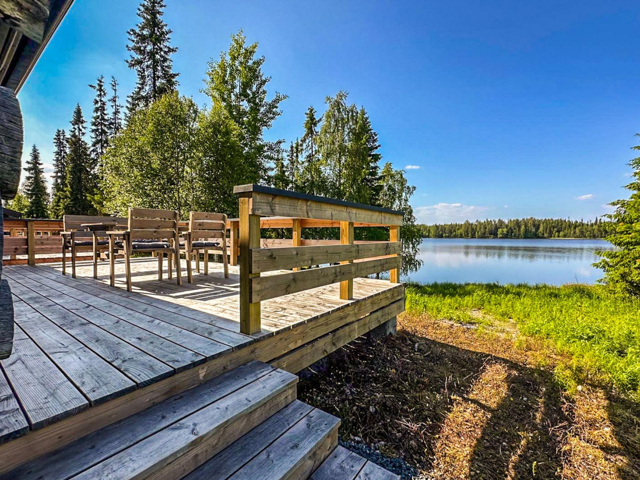 25 km north of Kuusamo, Ruka village 3 km. Apartment in log-built row house, built in 1989, Lake Kesäjärvi 50 m, rowing boat. Bedroom 1: double bed, bedrooms 2-3: both with 2 bunk beds, low loft (10 m²): 2 beds. Combined kitchen/living room, electric sauna. Stairs to loft are very steep.