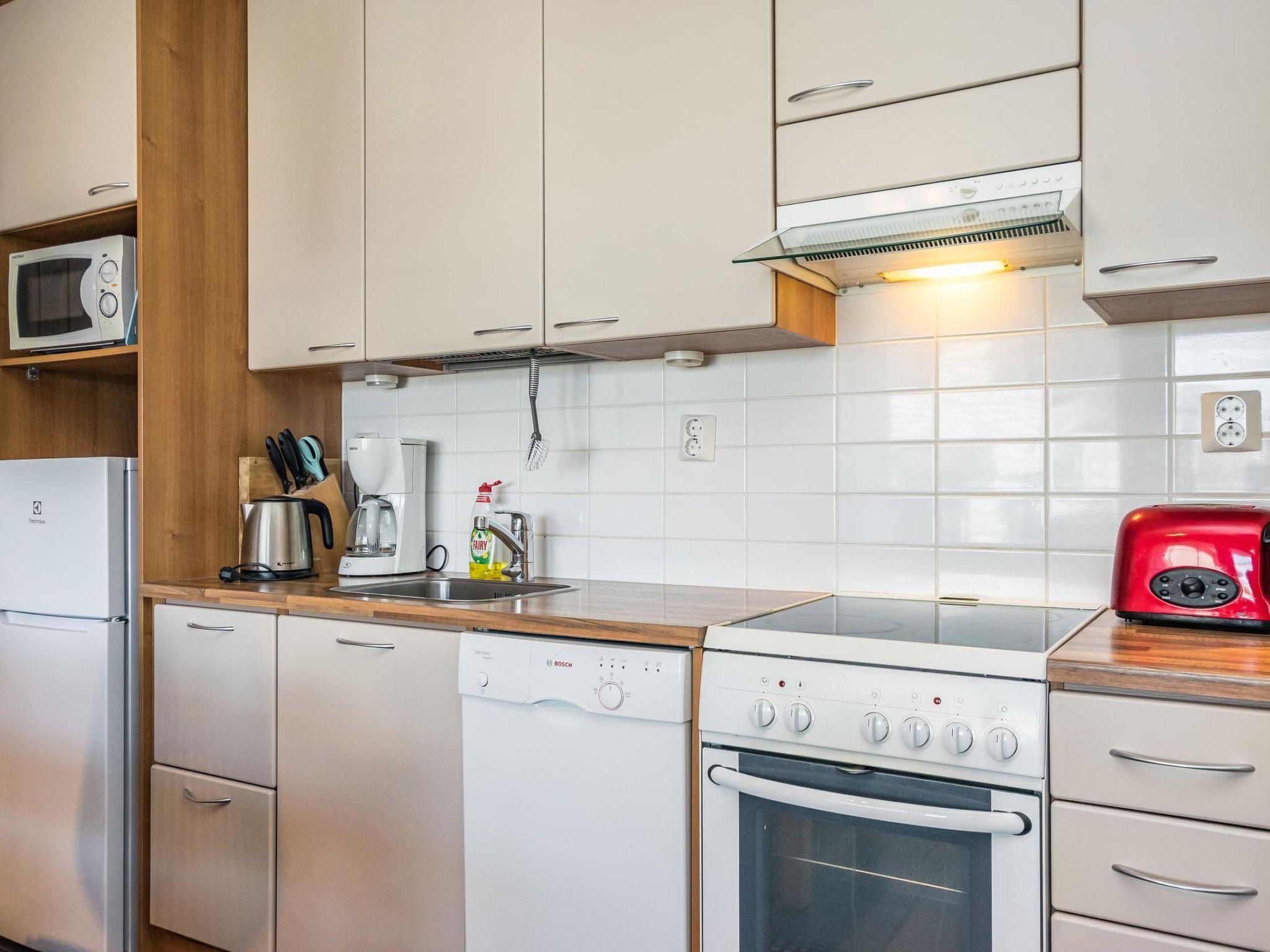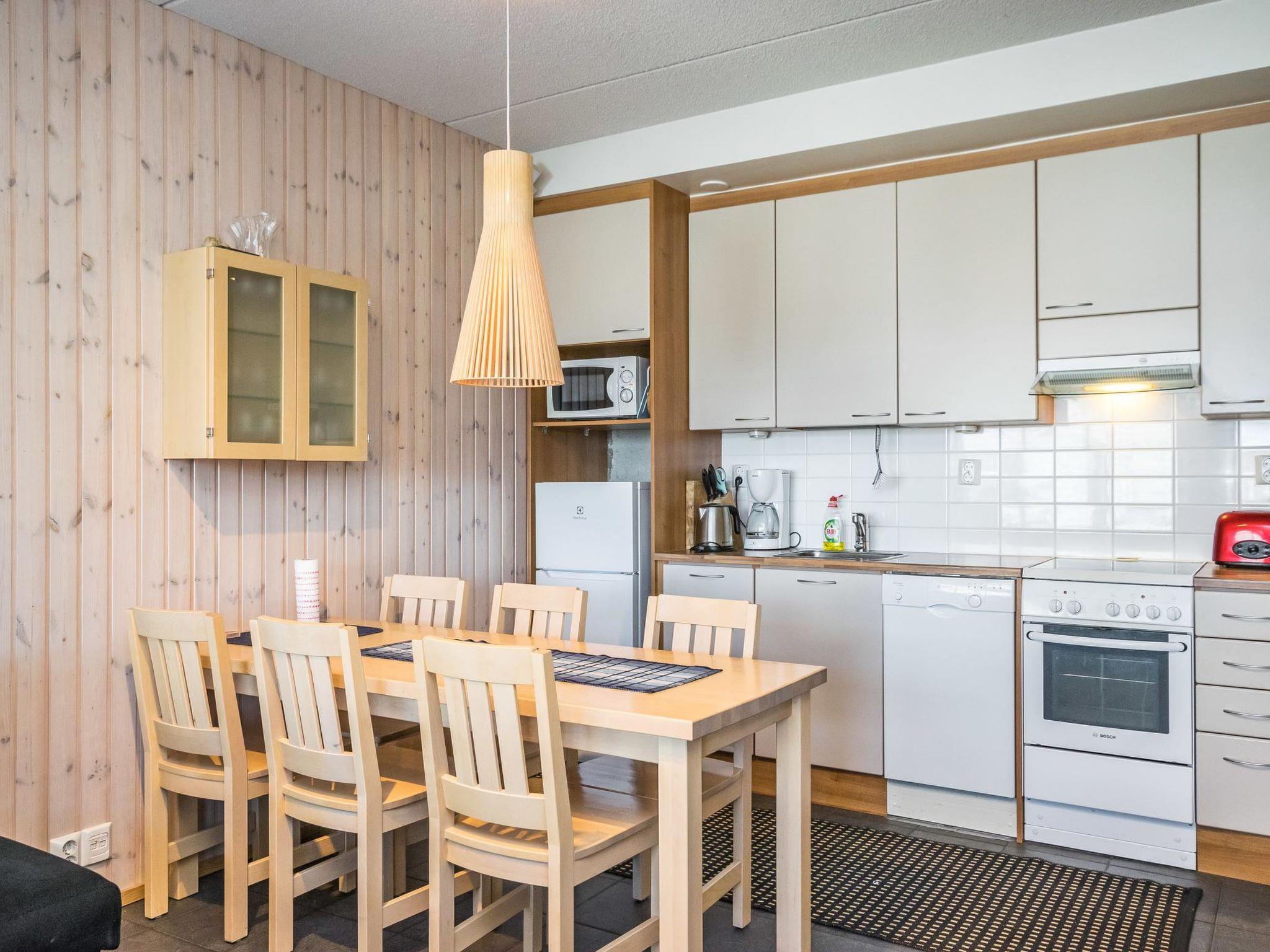 25 km north of Kuusamo, Ruka Village (Western Ruka) 2,3 km by car, 600 m by walk. Hioliday apartment upstairs in a 2-storey house by the lake Talvijärvi, 2 bedrooms: 2 beds in each, combined kitchen/living room with convertible sofa, electric sauna.